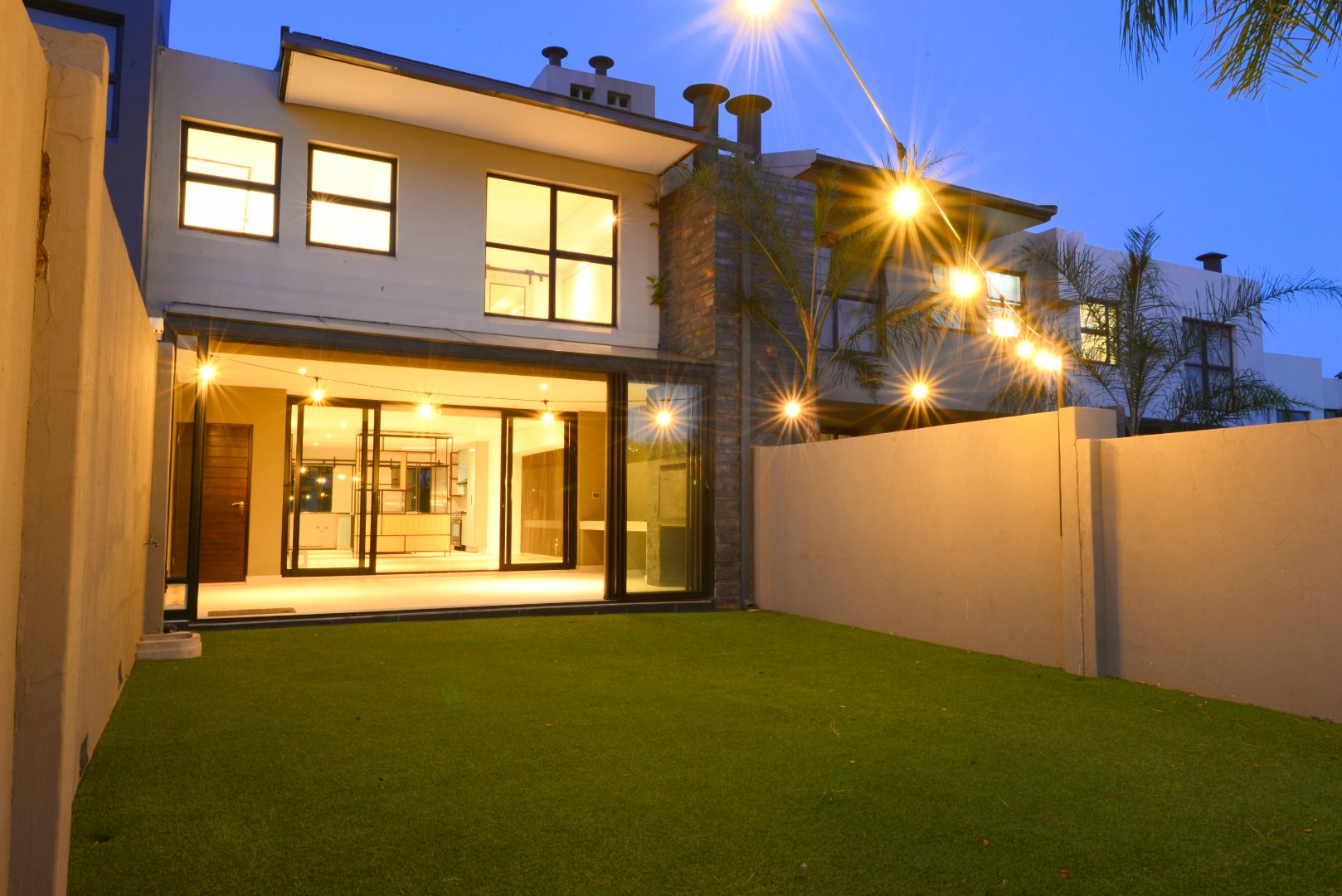 - Durable and quality artificial lawn installed at private garden with fairy lights to create festive atmosphere.