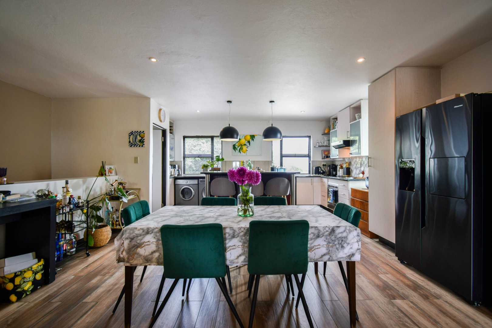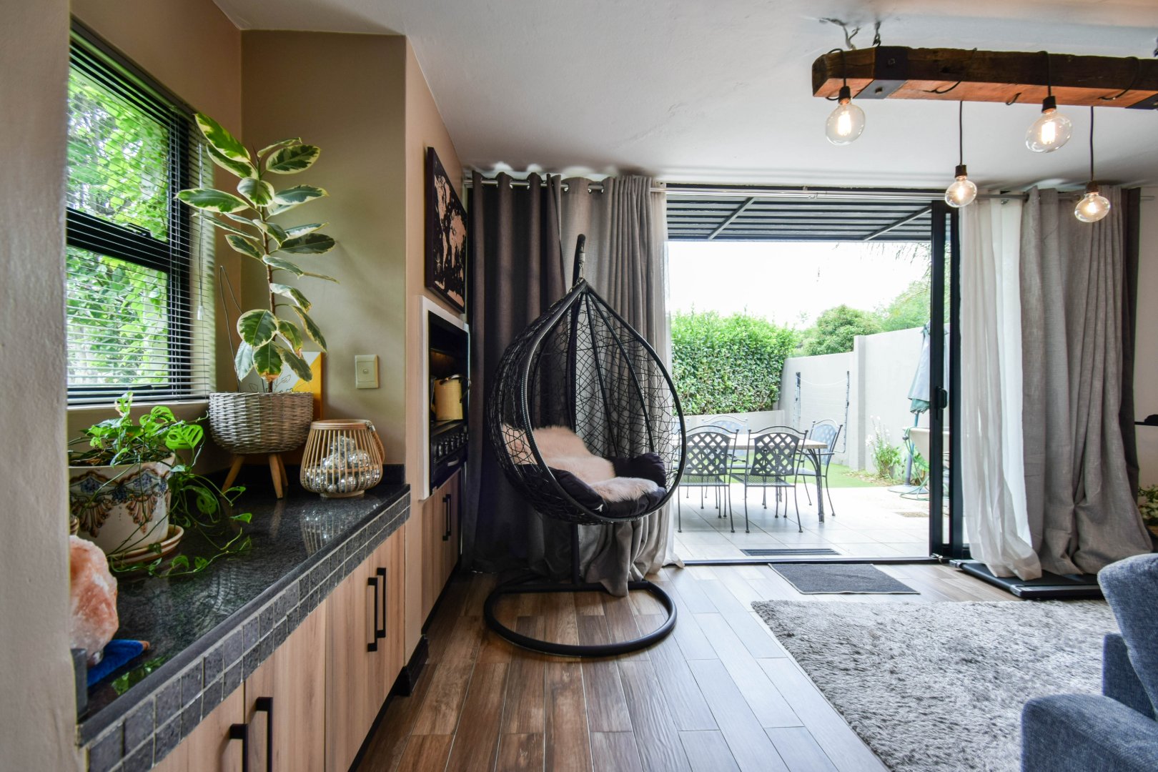 - Open-plan entertainment and patio, flowing into the kitchen.