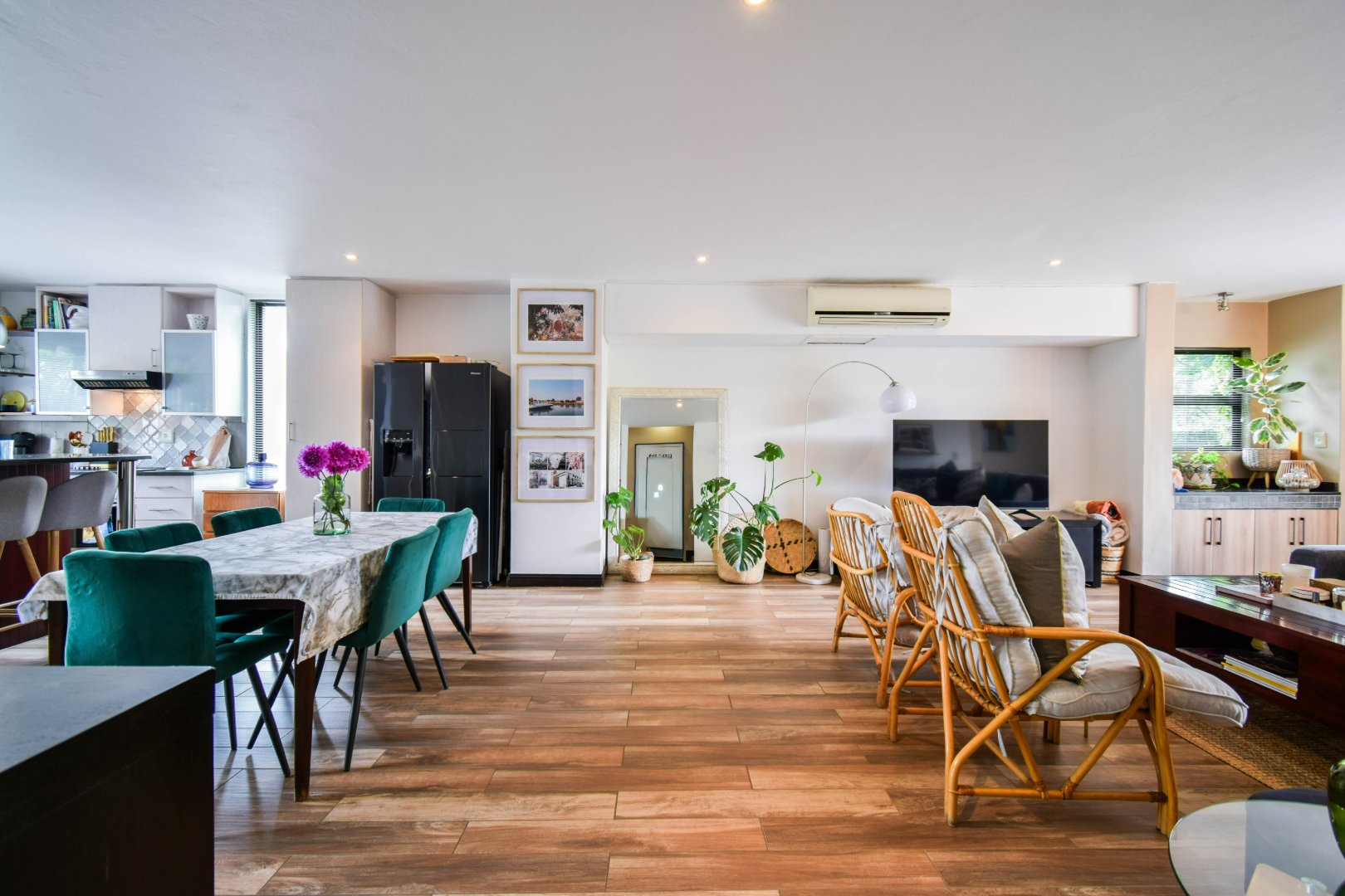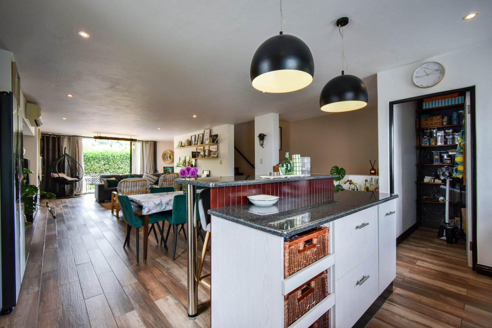 - Open plan dining area joining the large lounge, walking out on patio and private garden.