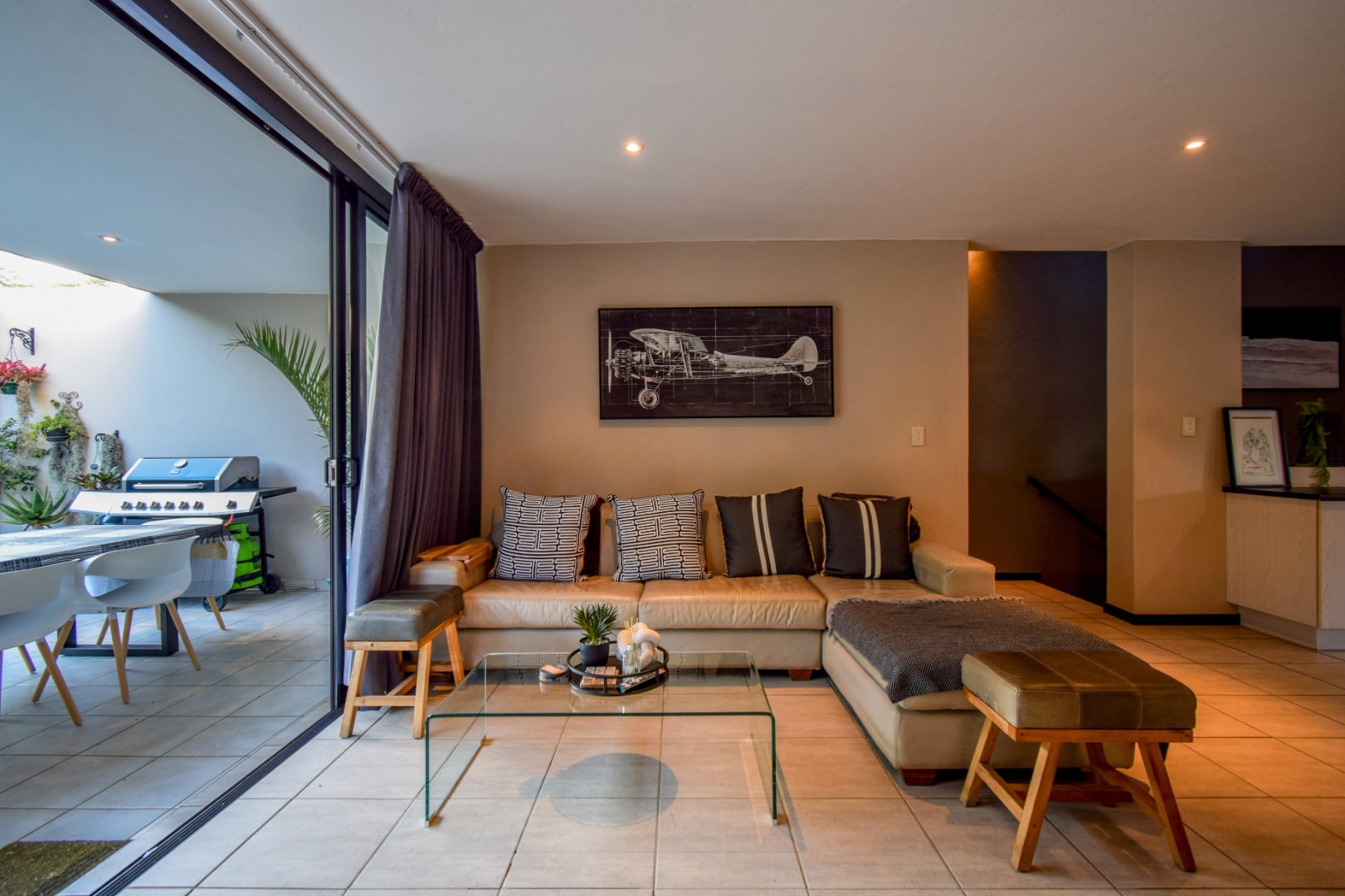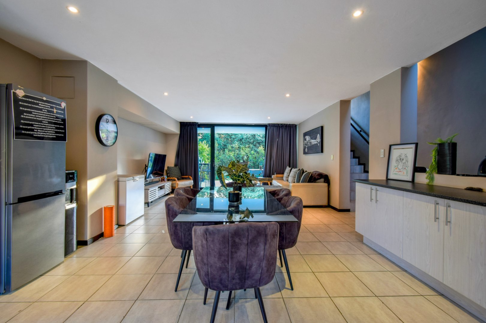 - Open-plan lounge, kitchen, dining and patio area with very private garden