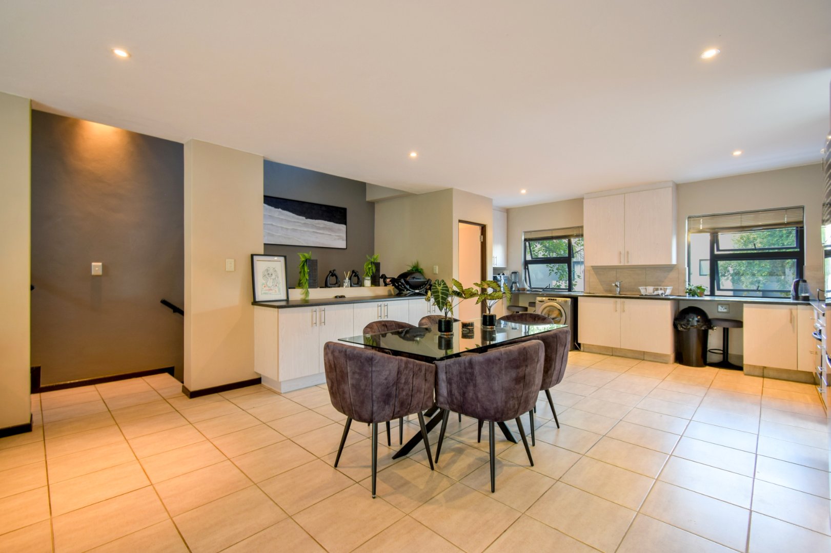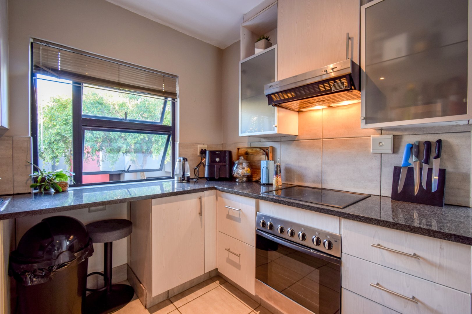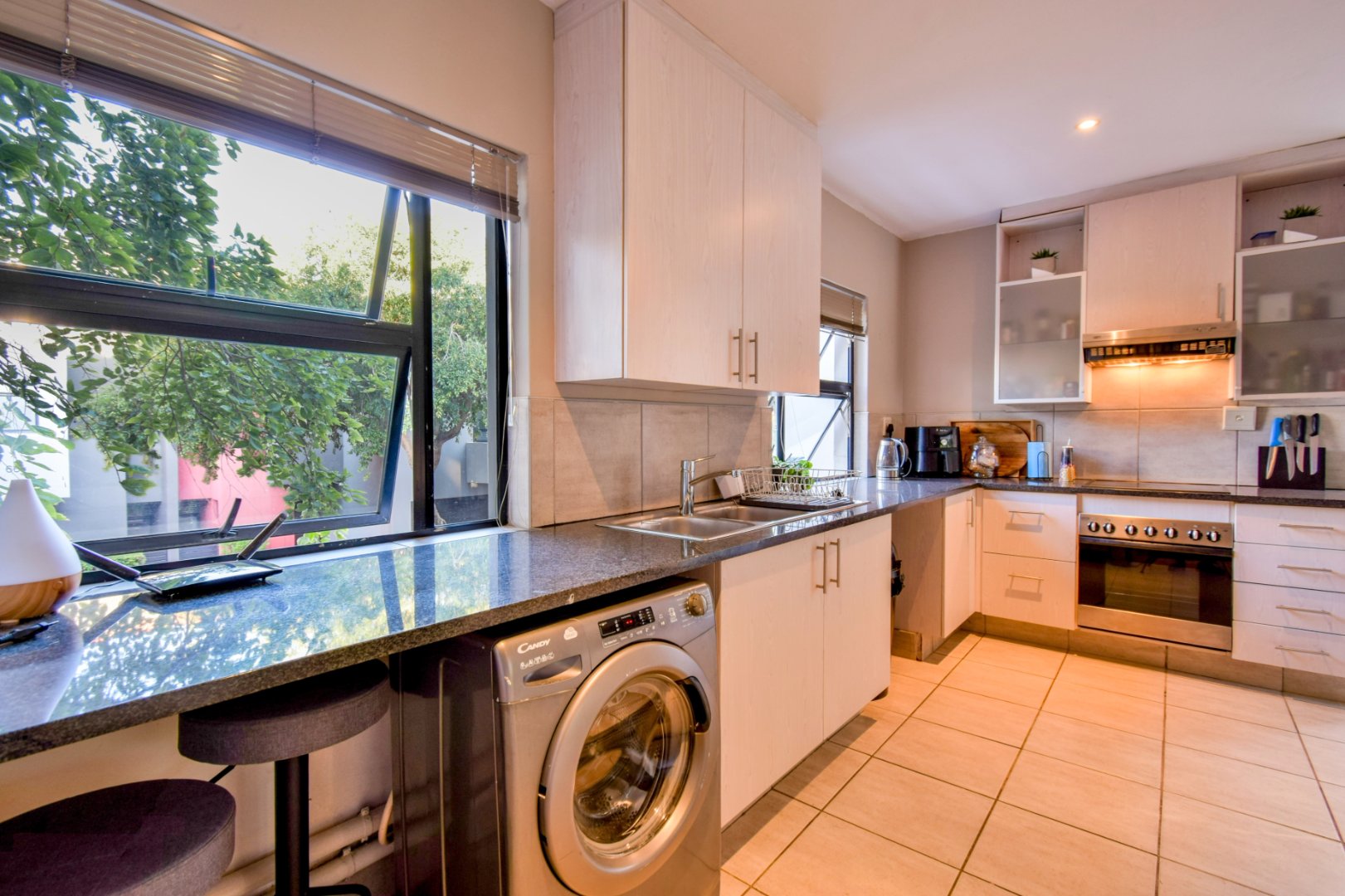 - Kitchen is modern with extra cupboards installed