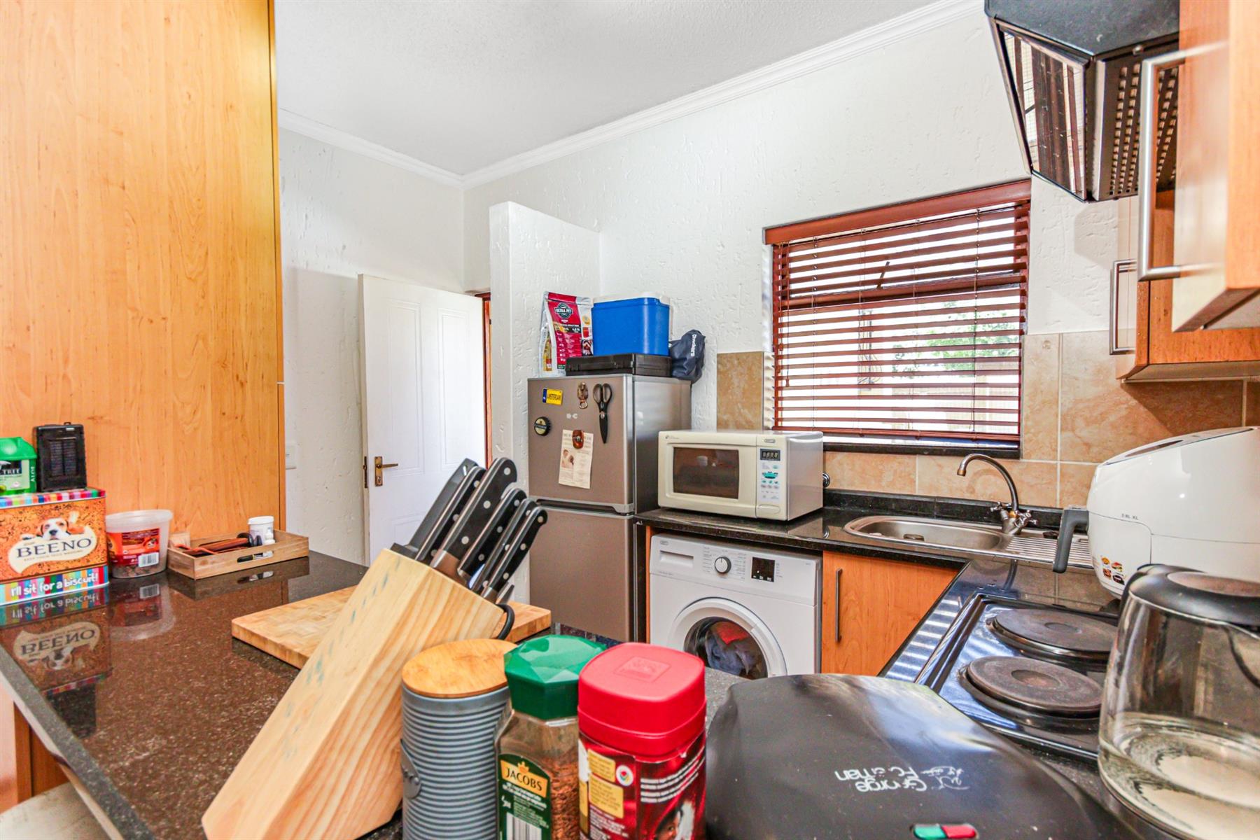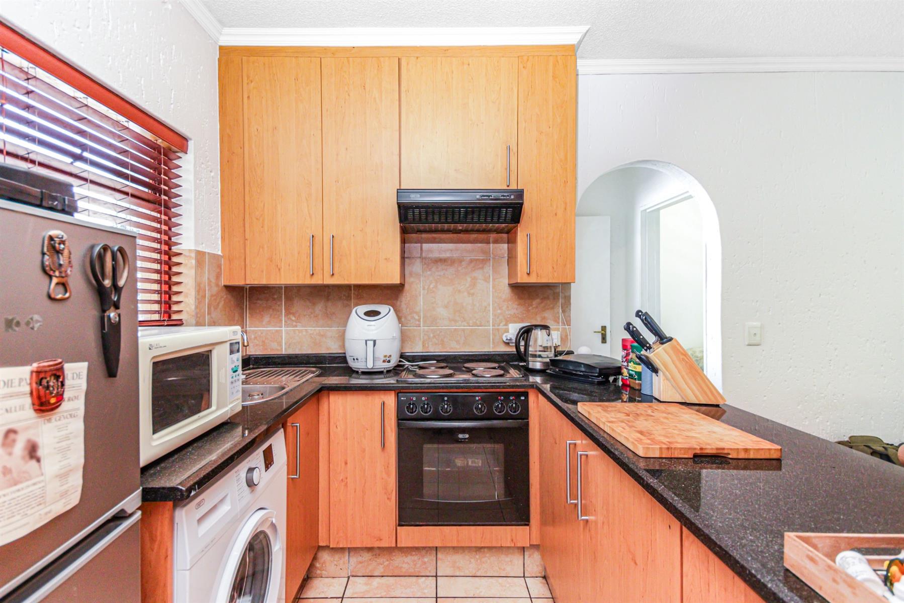 The home features a bathroom with a spacious double shower, a sleek granite-top kitchen with generous cupboard space, and a bright open-plan living area that flows seamlessly onto a covered patio and private garden. Best of all, this unit is privately positioned with no one in front of you – giving you extra peace and tranquility.