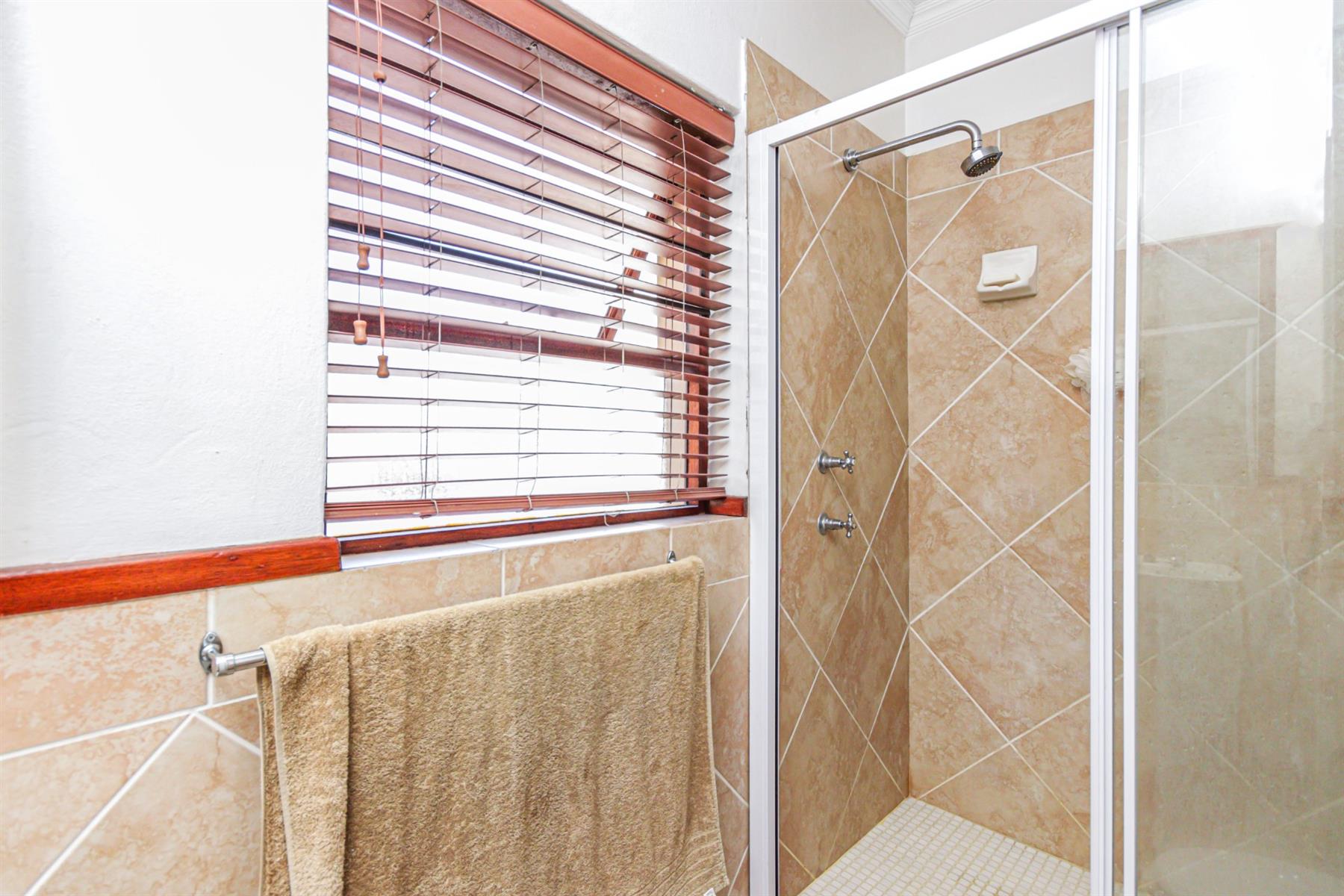 A bathroom with double shower