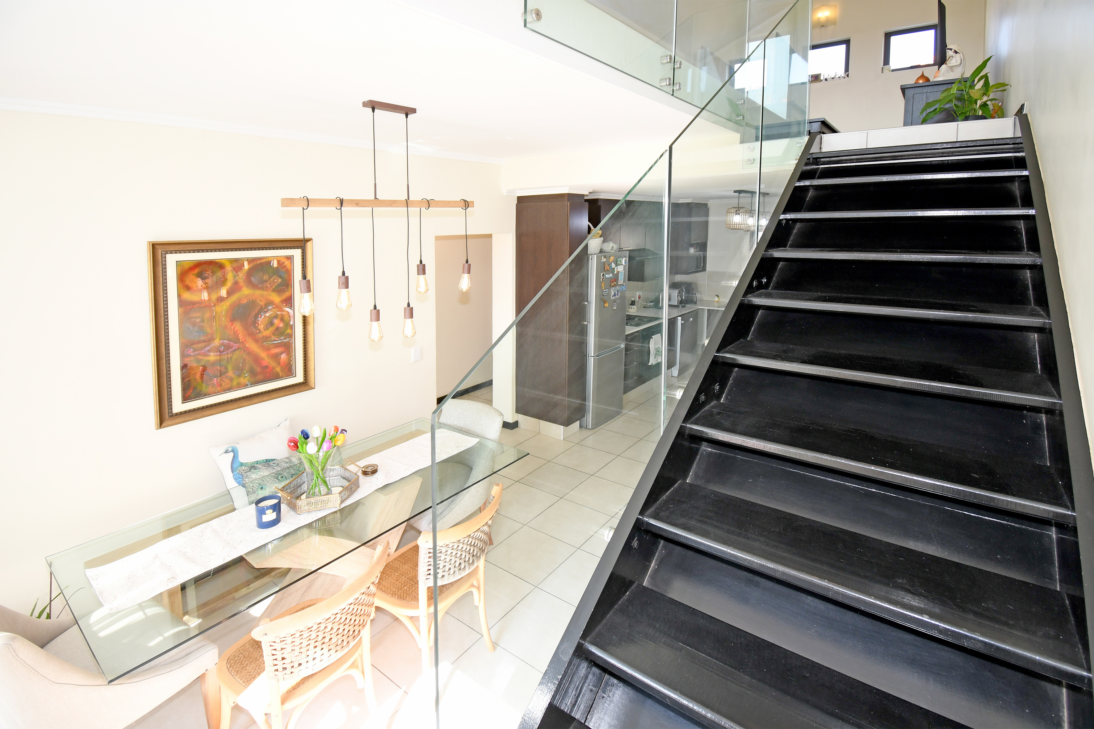 This home isn’t just beautiful — it’s practical, too. The staircase has been upgraded with a stunning glass balustrade, and every light fitting has been thoughtfully chosen to enhance the home’s modern appeal. To top it off, the apartment includes an inverter and battery system to keep your essentials running during load shedding.
