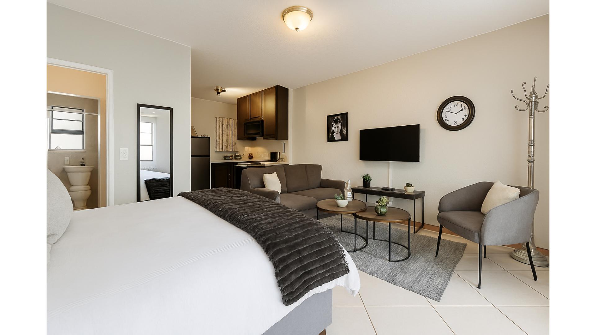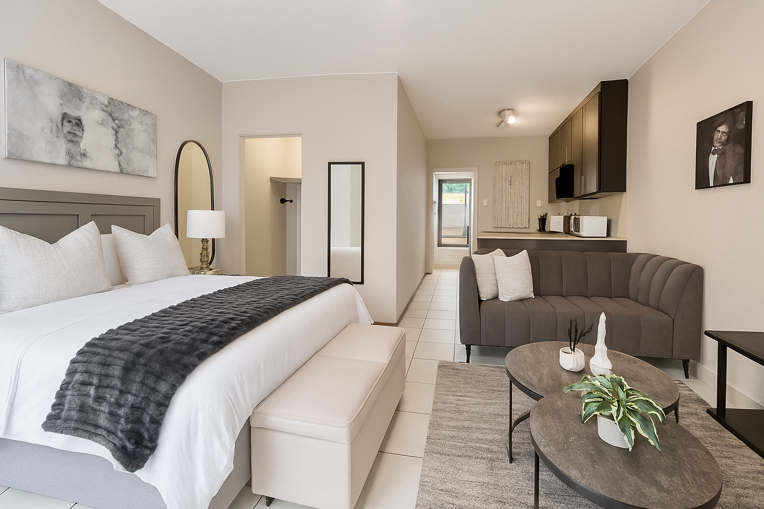 A standout feature is the private garden, a rare bonus in studio living, providing a peaceful outdoor space to relax or entertain.