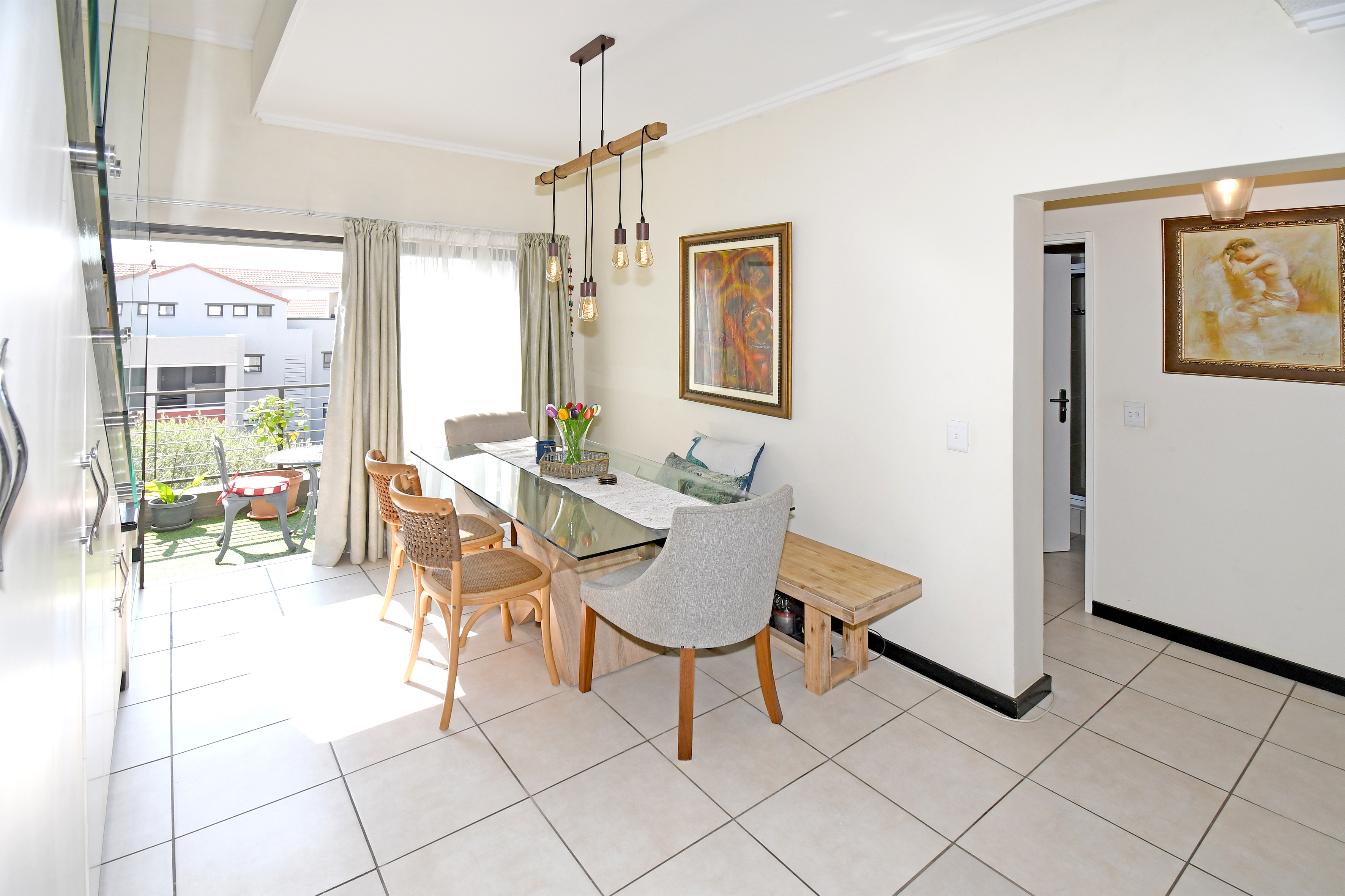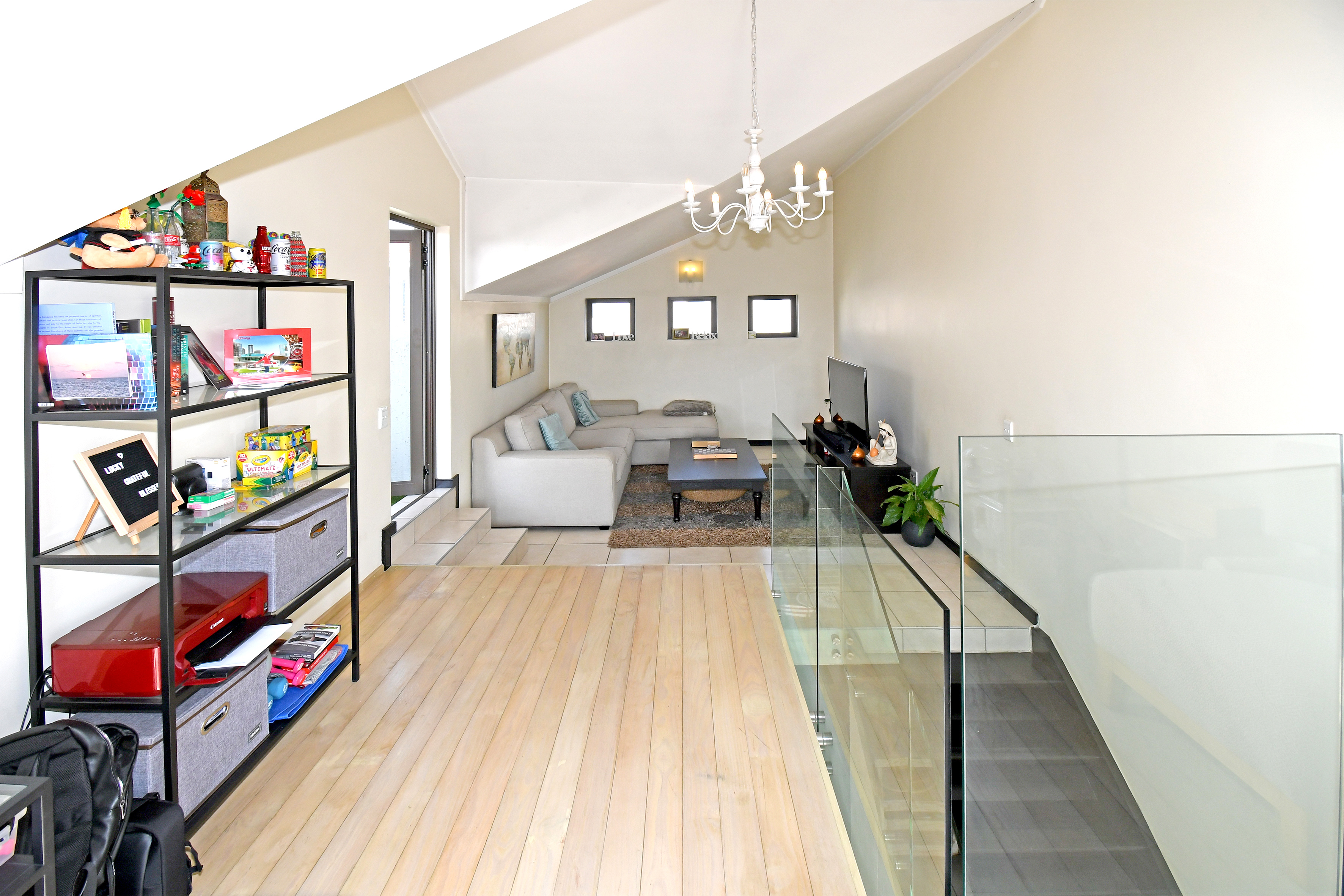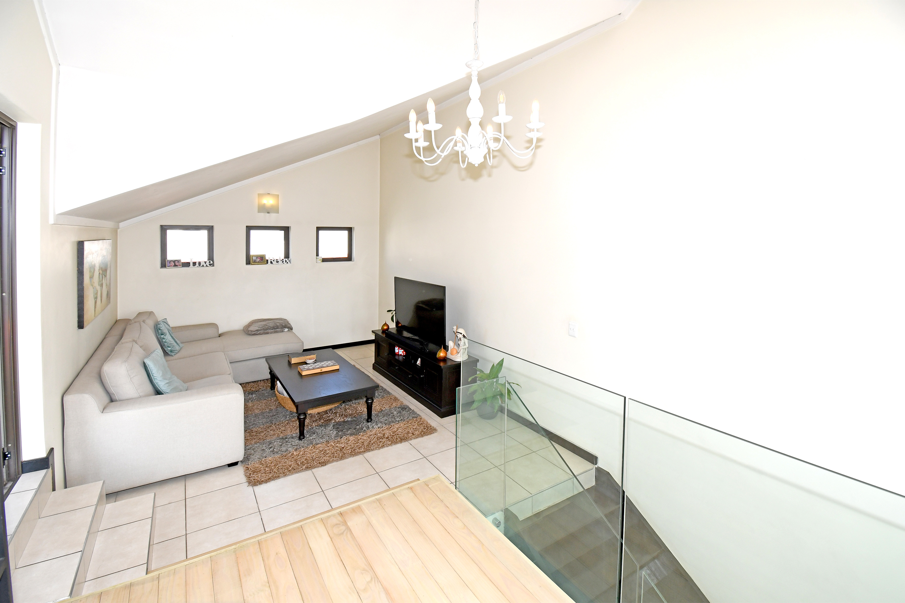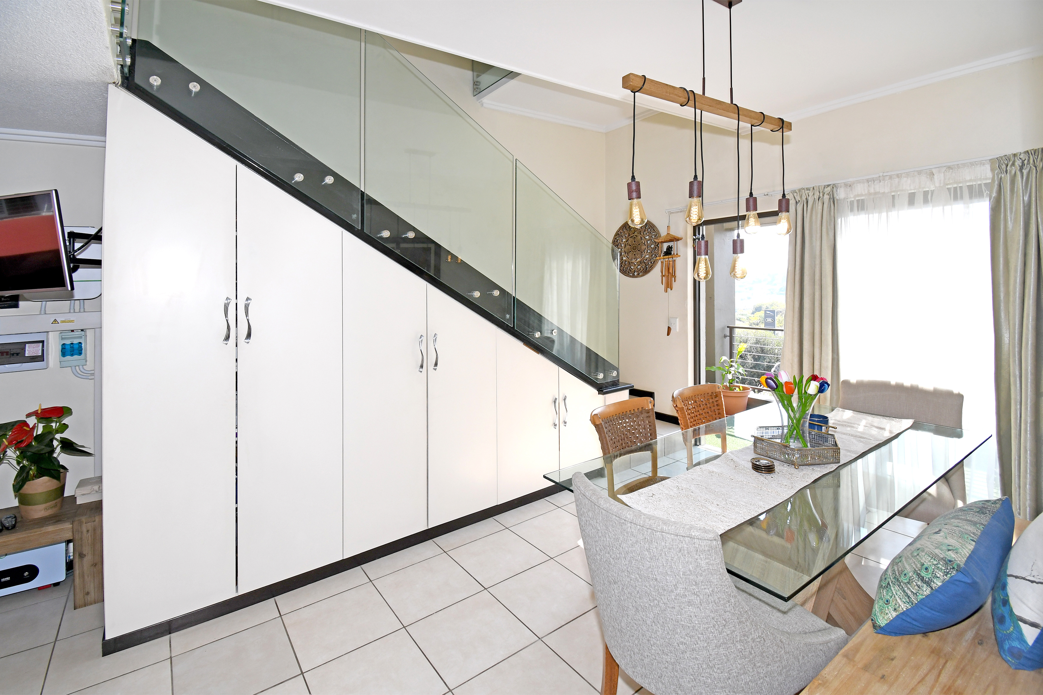 This home isn’t just beautiful — it’s practical, too. The staircase has been upgraded with a stunning glass balustrade, and every light fitting has been thoughtfully chosen to enhance the home’s modern appeal. To top it off, the apartment includes an inverter and battery system to keep your essentials running during load shedding.