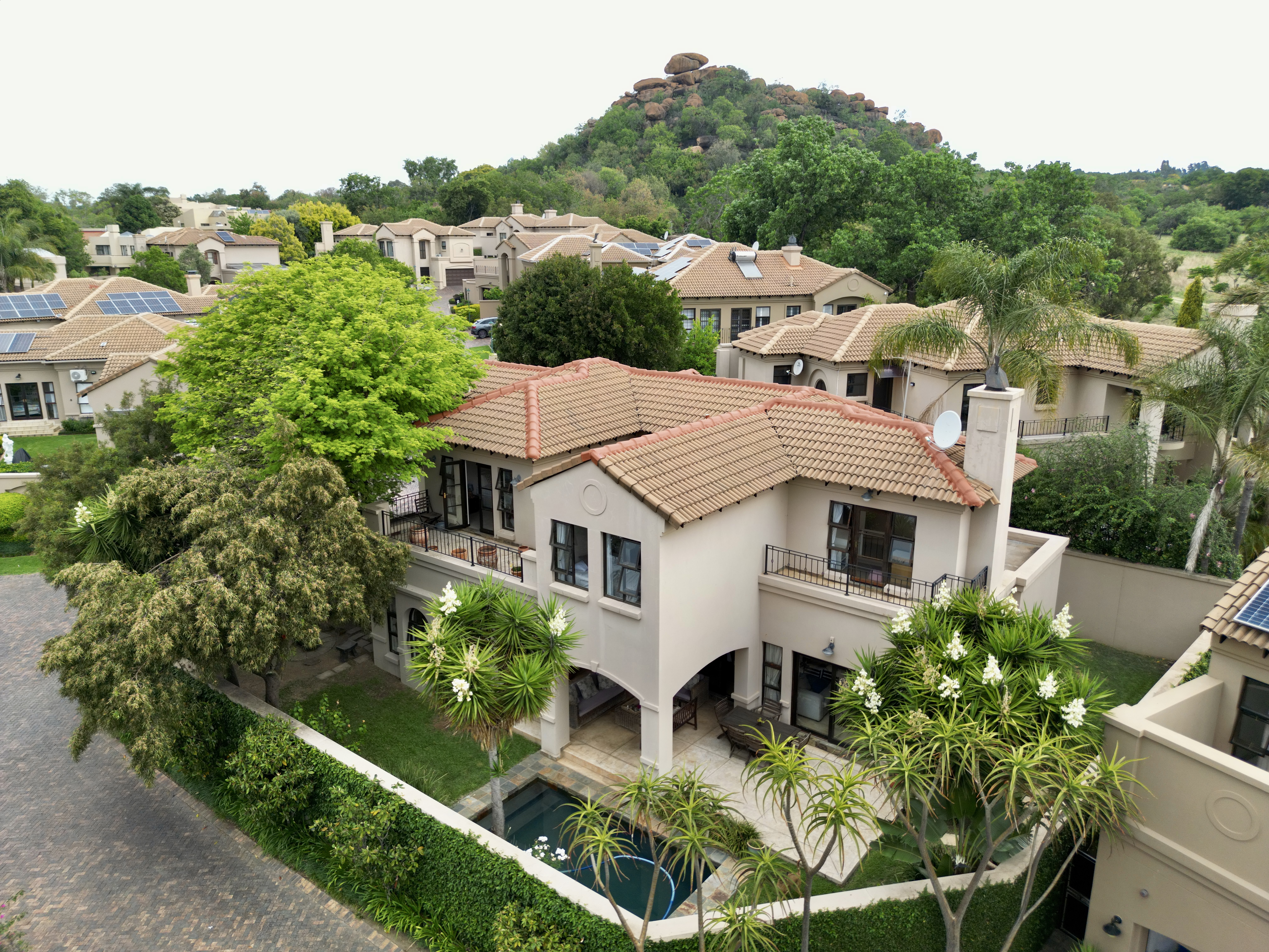Enter a charming and well-maintained complex perfectly situated in a quiet cul-de-sac within walking distance of the Lonehill Koppies Nature Reserve. With only 17 homes, this exclusive setting offers privacy and tranquillity.