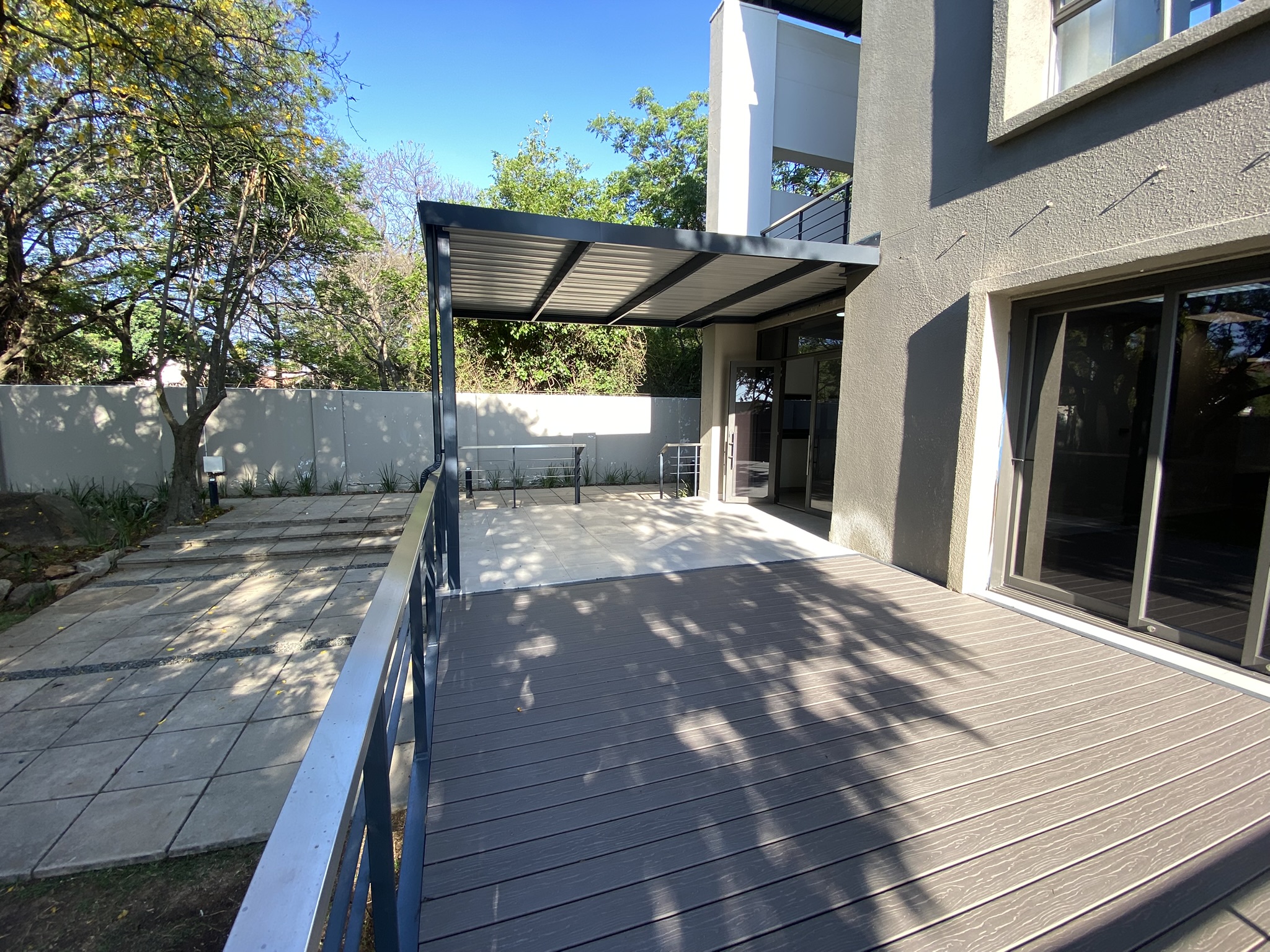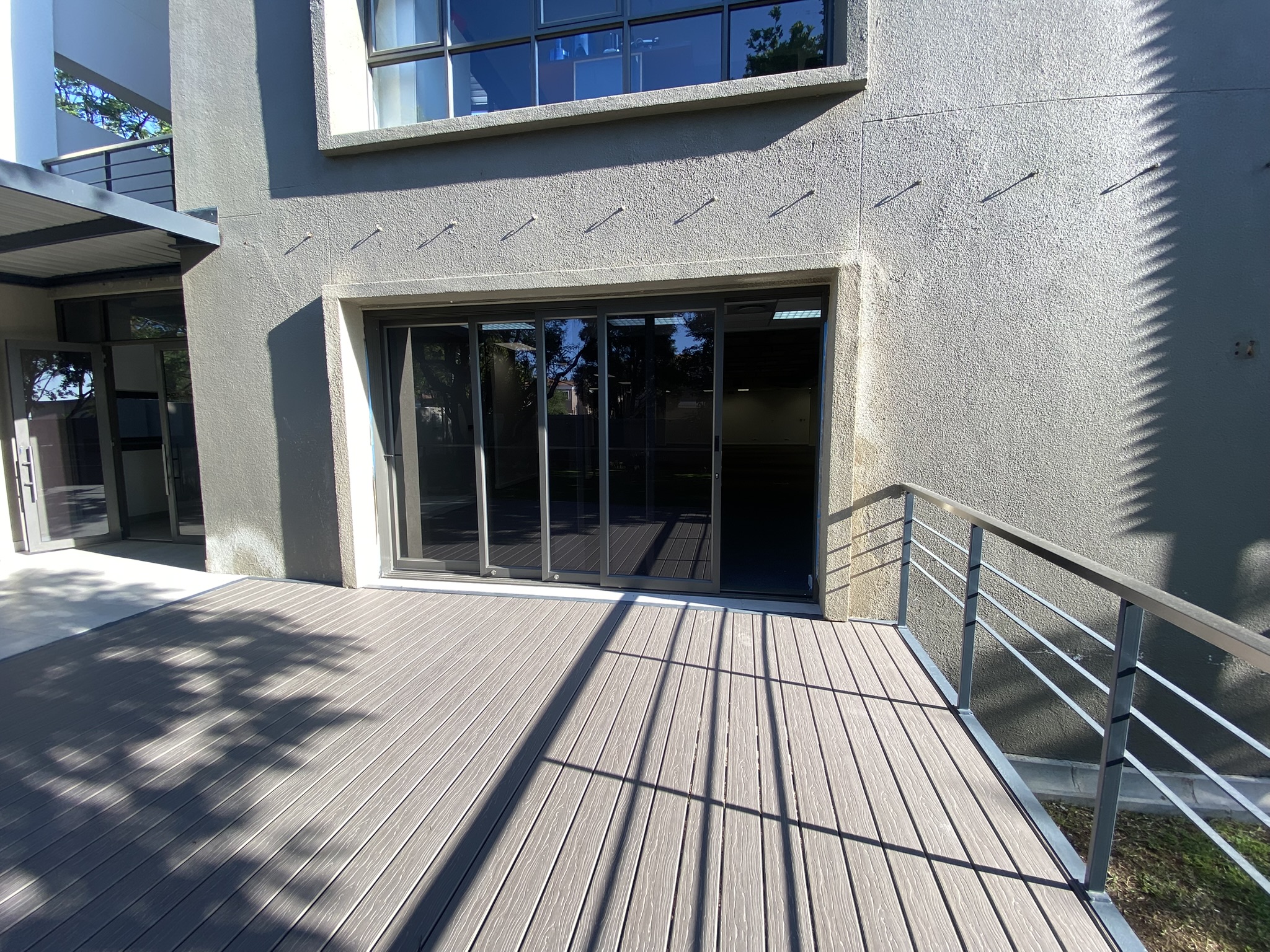 A modern and spacious ground floor office suite ideally located in the heart of Lonehill. This well-designed workspace offers a blend of private offices, collaborative open-plan areas, and access to premium shared facilities — all within walking distance of Fourways Crossing and Pineslopes Shopping Centre. This suite is comprised of seven private offices, a large open-plan work area, full kitchen with built-in cabinetry & space for appliances, and a 35m2 private deck that opens onto a peaceful garden setting, ideal for staff breaks or informal meetings.