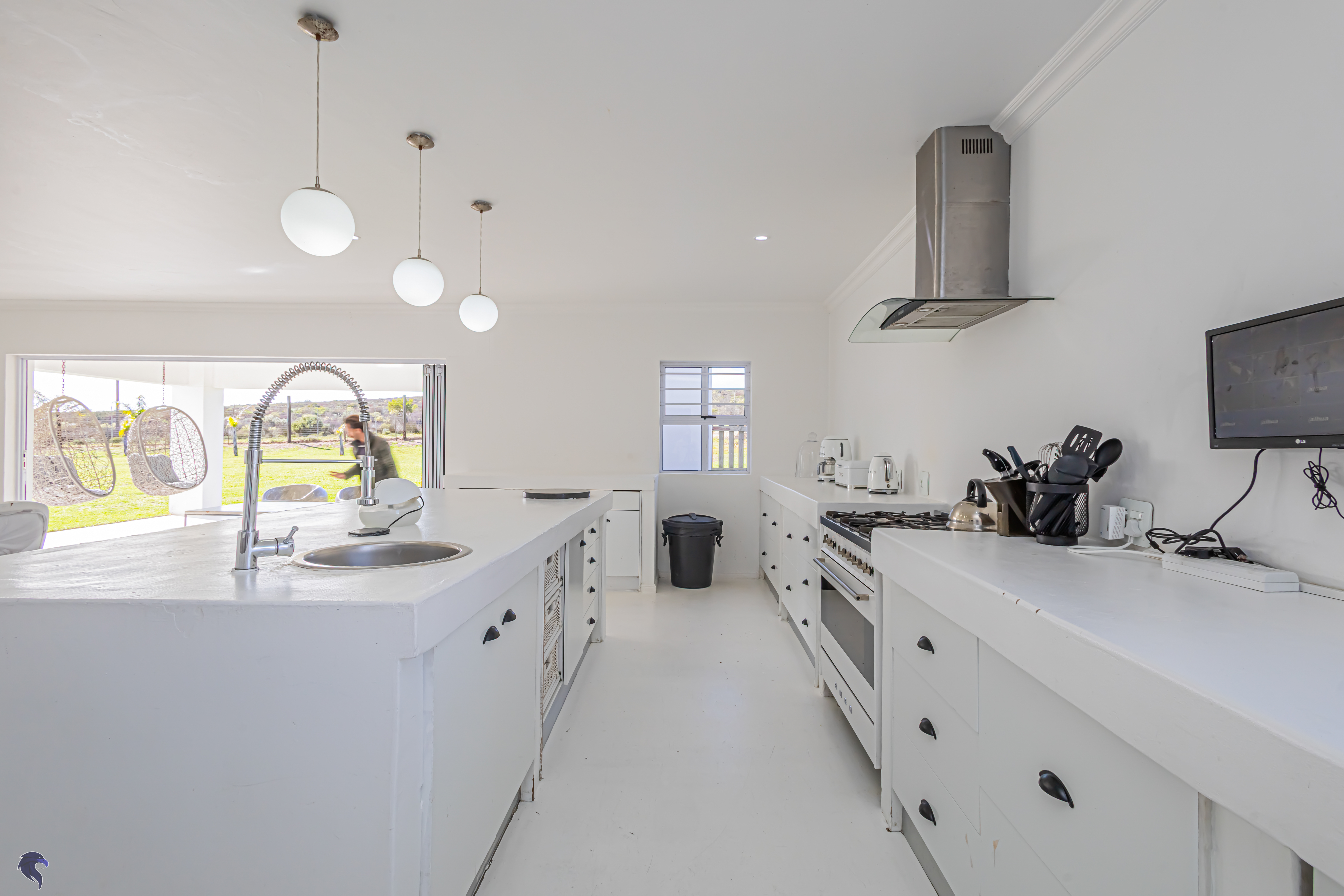 The main house has an easy, open-plan flow. The kitchen, dining, and living areas all connect, so no one’s ever left out of the conversation. There’s a pantry and scullery to keep things organised, and a guest bedroom with a bathroom downstairs for when friends pop in to stay.