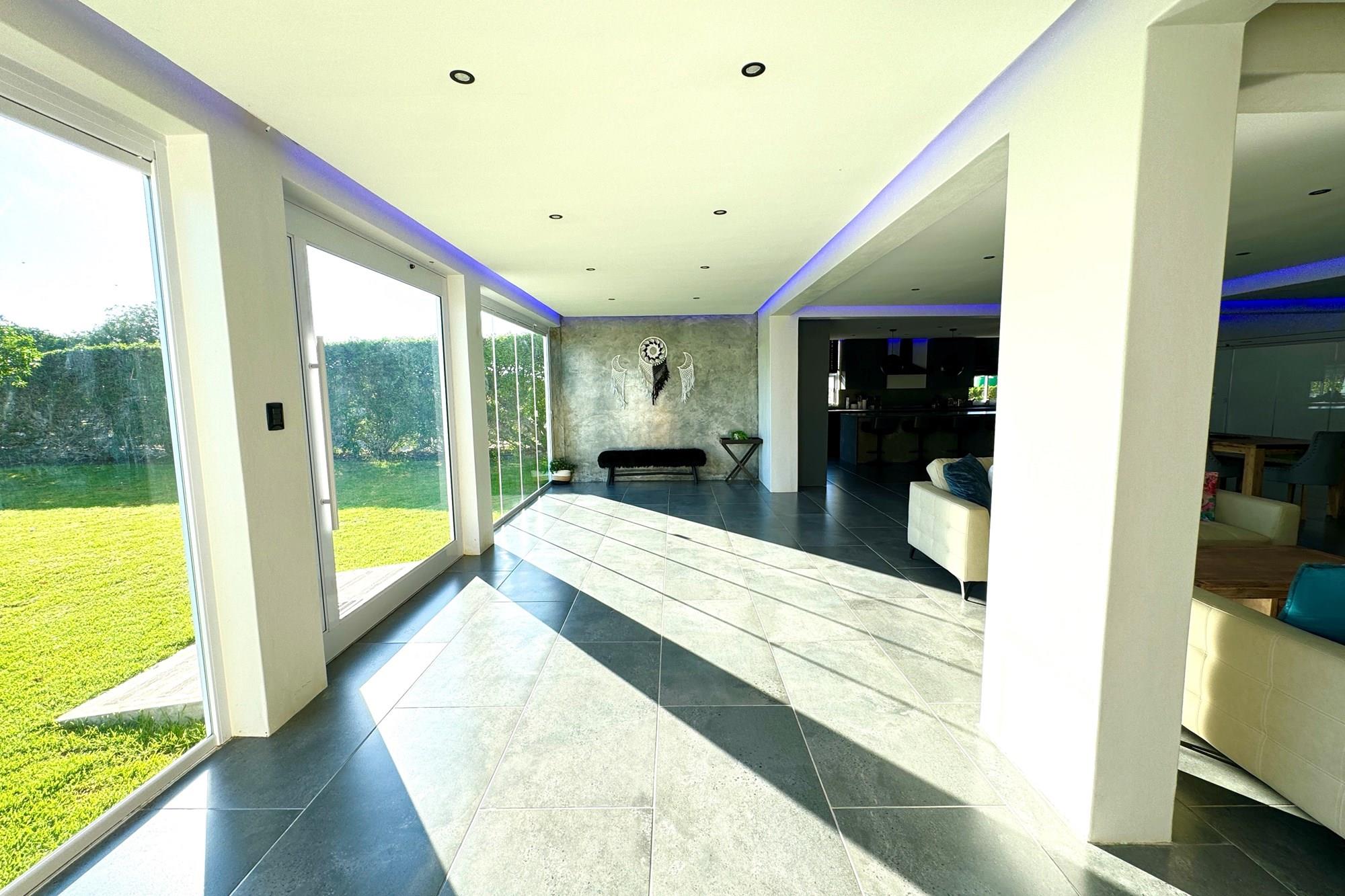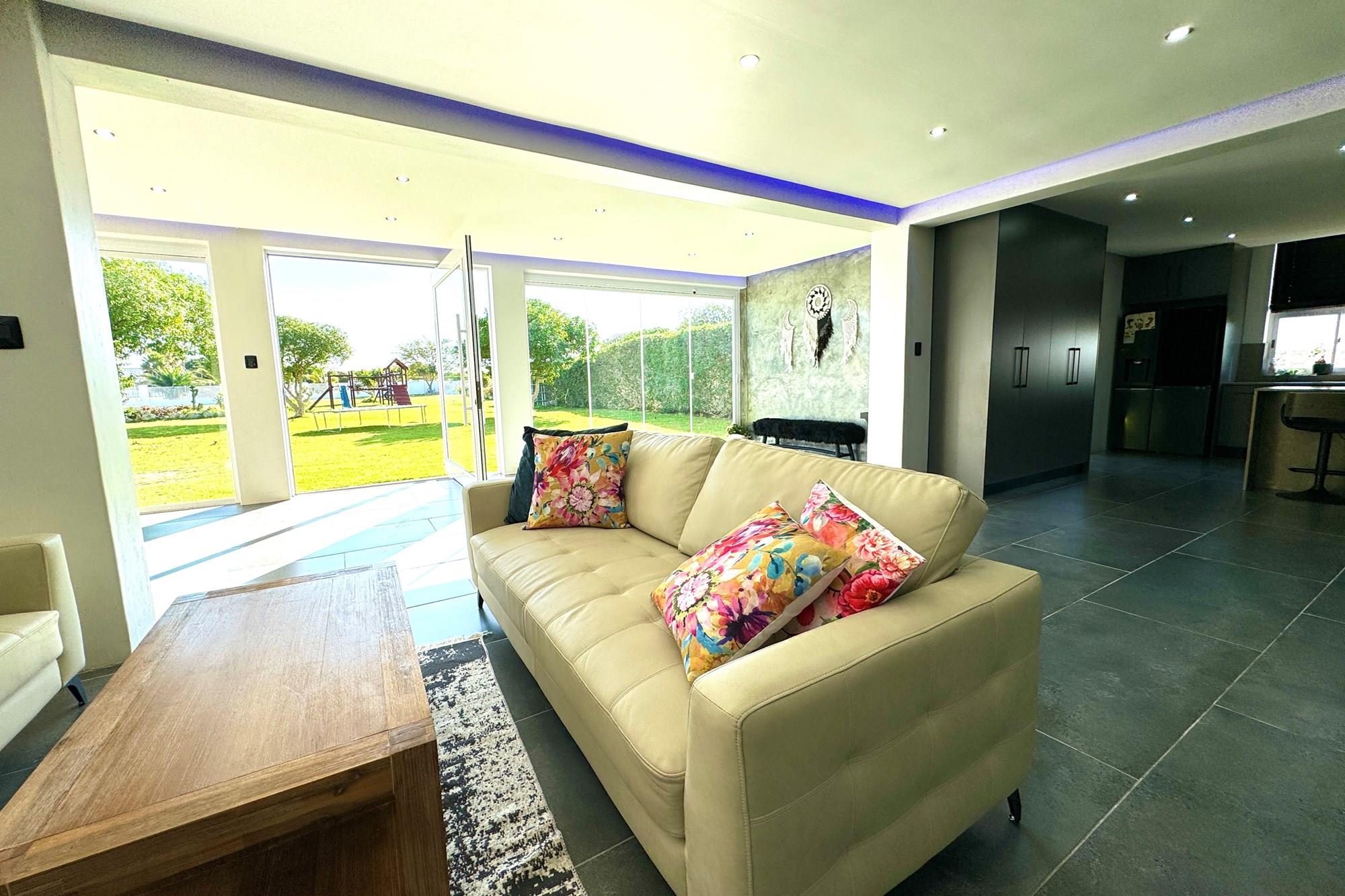 Real Country Lifestyle presents a super modern dream home that harmoniously blends the tranquillity of country living with the sophistication of upscale modern design. (2,96 ha) Here are the detailed architectural and design features: