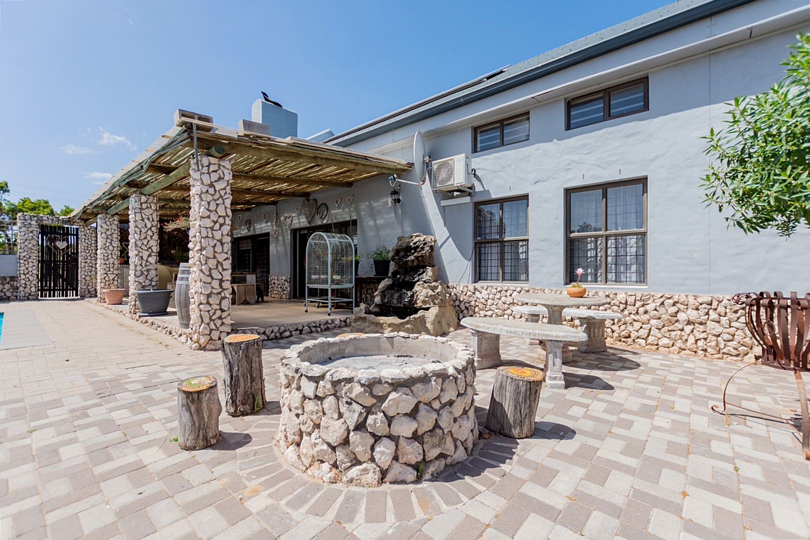 Whether you're entertaining under the stars or simply unwinding with loved ones, the outdoor spaces are nothing short of spectacular. A built-in braai, pizza oven, firepit, and sparkling pool are nestled among waterwise landscaping, while an elevated lookout point offers panoramic views of the lagoon—an idyllic spot for sundowners or quiet reflection. A large veranda with scenic vistas extends the living space upstairs, and a clever built-in wine rack under the staircase adds a touch of charm.