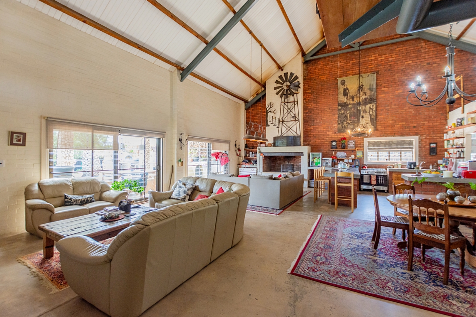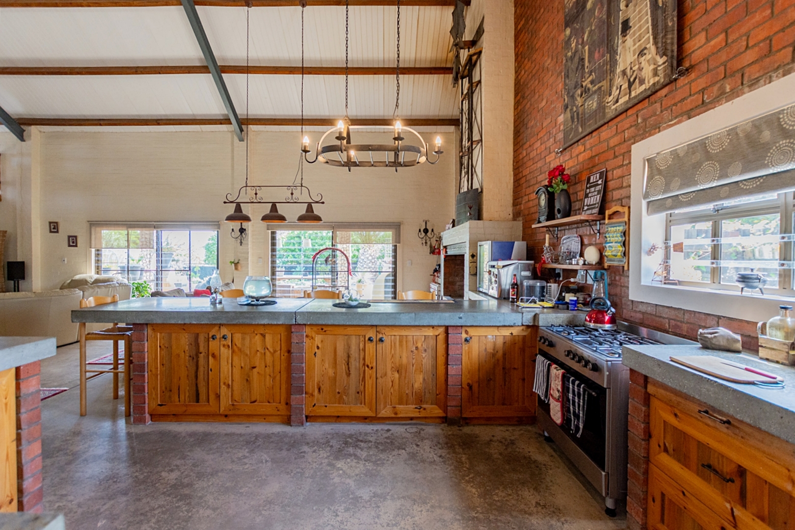 Tucked away in the peaceful Long Acres Country Estate, this expansive smallholding offers more than just a home—it offers a lifestyle rooted in space, privacy, and possibility. From the moment you step inside, soaring ceilings with exposed wooden beams, natural textures, and soft light create a warm yet sophisticated ambiance. The generous layout includes three well-appointed bedrooms, with the main suite featuring a walk-in closet and spa-like en-suite bathroom. Thoughtfully designed for modern living, the home also includes a stylish second bathroom, a spacious kitchen with a gas stove and electric oven, plus a separate pantry, scullery, and laundry for added convenience.