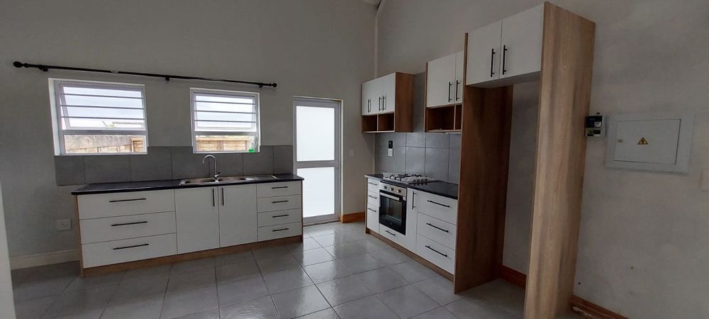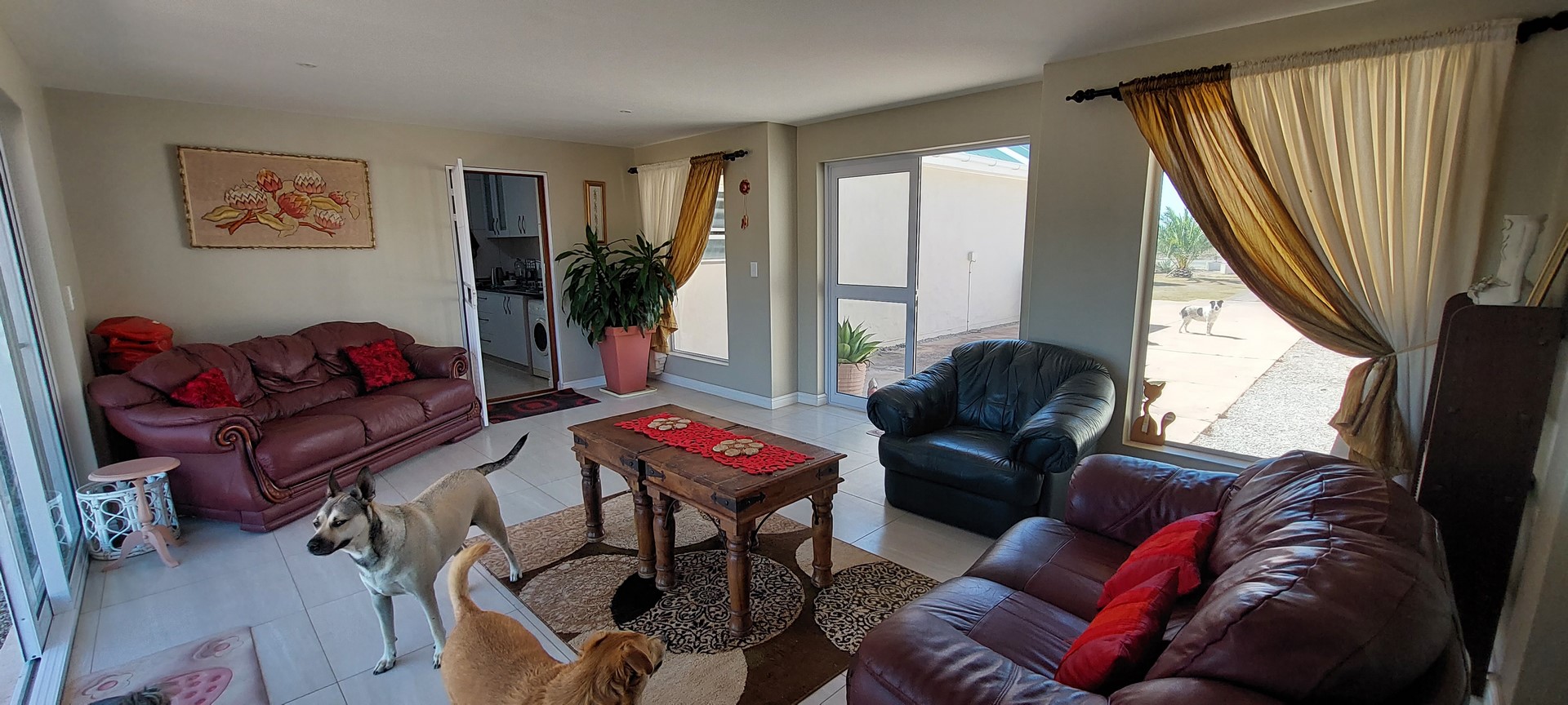 Large open-plan living area seamlessly connecting the kitchen, indoor braai area and lounge – ideal for entertaining.