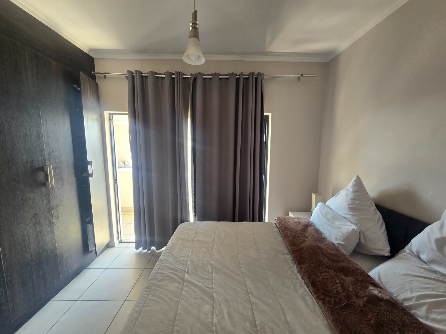 A modern 1-bedroom flat offering 67 m2 of well-designed living space. The unit features tiled flooring, a bright open-plan kitchen with quartz countertops, and includes four Defy appliances for added convenience. The spacious lounge and main en-suite bathroom provide comfort and functionality, while the extended balcony, accessible from both the bedroom and lounge, adds an inviting outdoor living area.