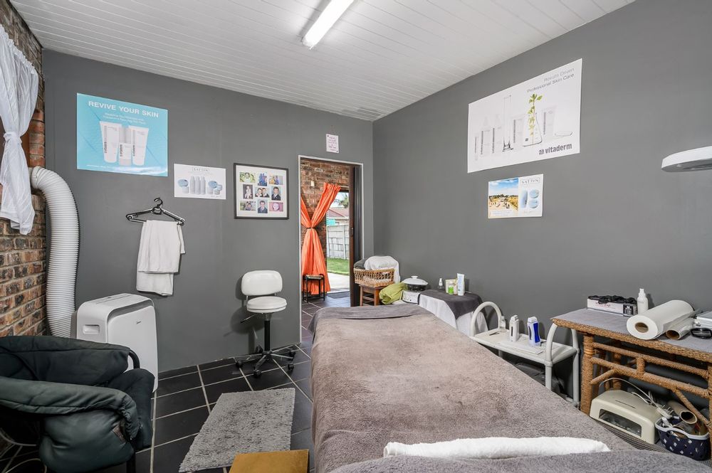 The original double garages have been thoughtfully converted into a charming studio, currently used as a beauty salon. This versatile space can easily serve as a home office, creative studio, or be converted back into garages or a rental flat. Please note that the outside building does not include full ablution facilities.