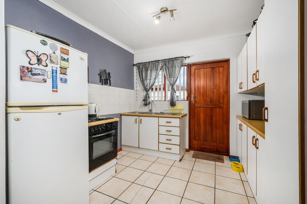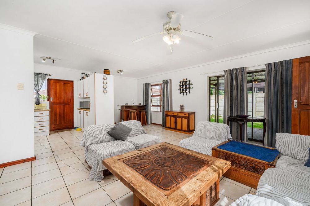 Discover a spacious panhandle erf offering exceptional privacy and potential. This well-positioned home is set on a large stand, bordered on two sides by a neat townhouse complex, creating a secure and peaceful environment. The property features expansive, lush green lawns that frame the cosy and comfortable three-bedroom, two-bathroom home.