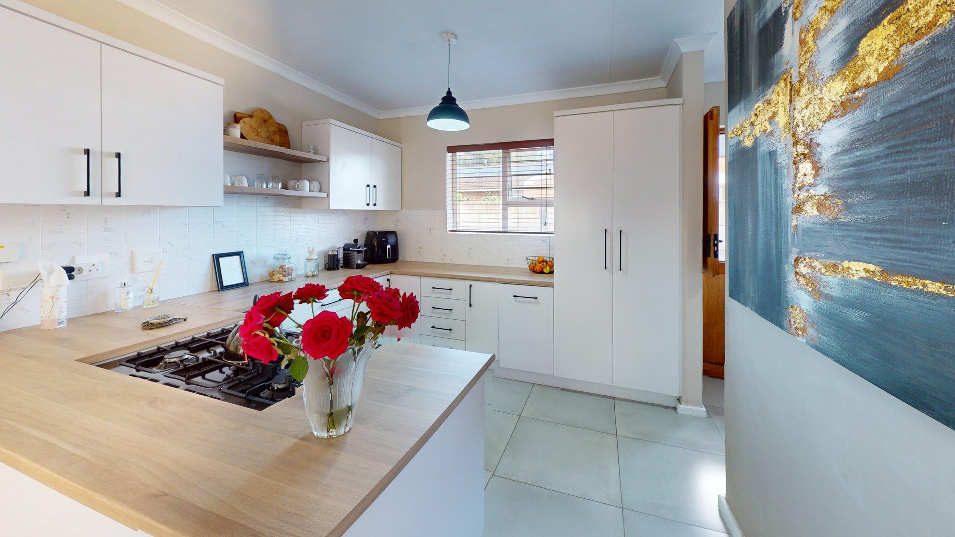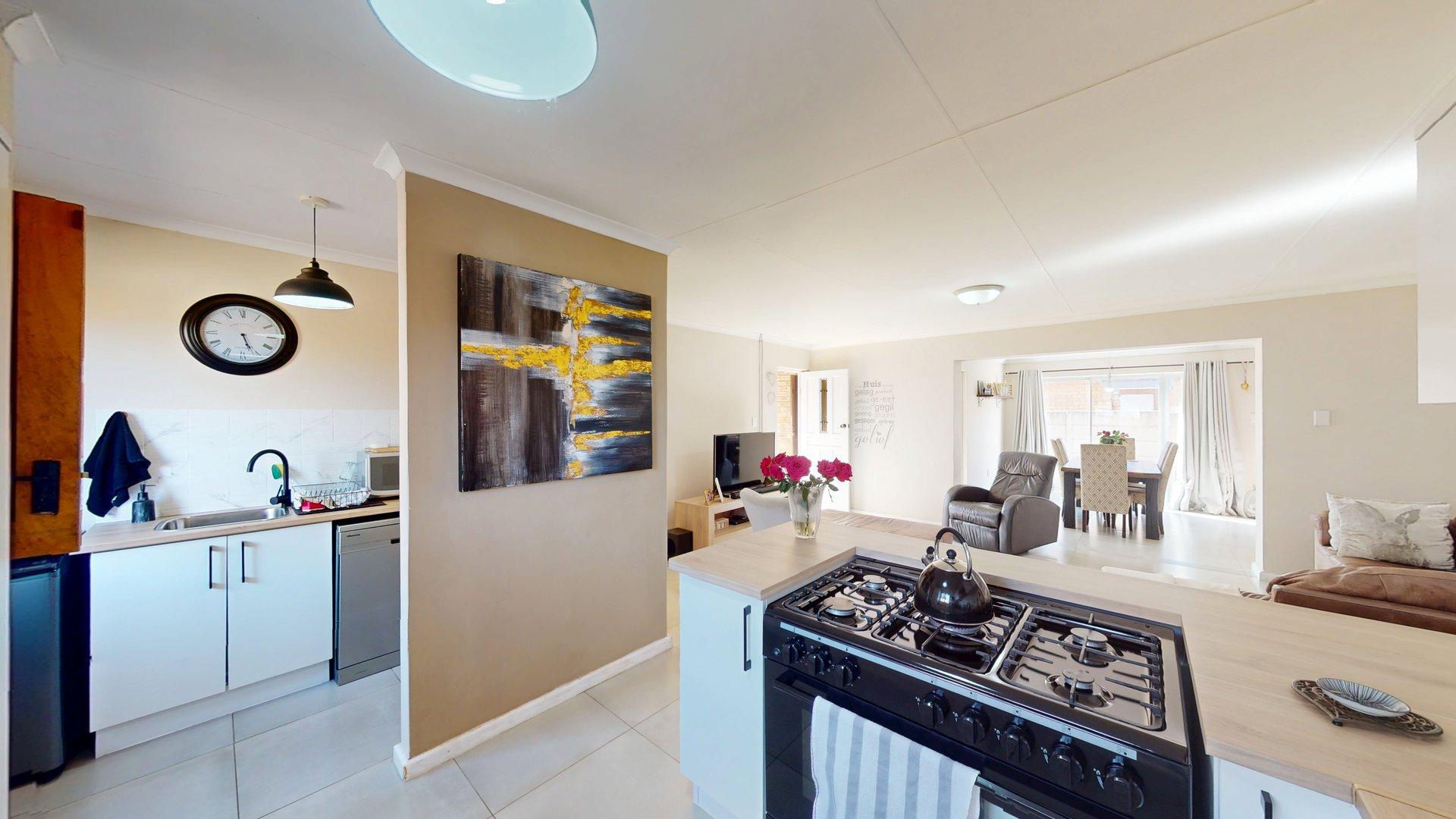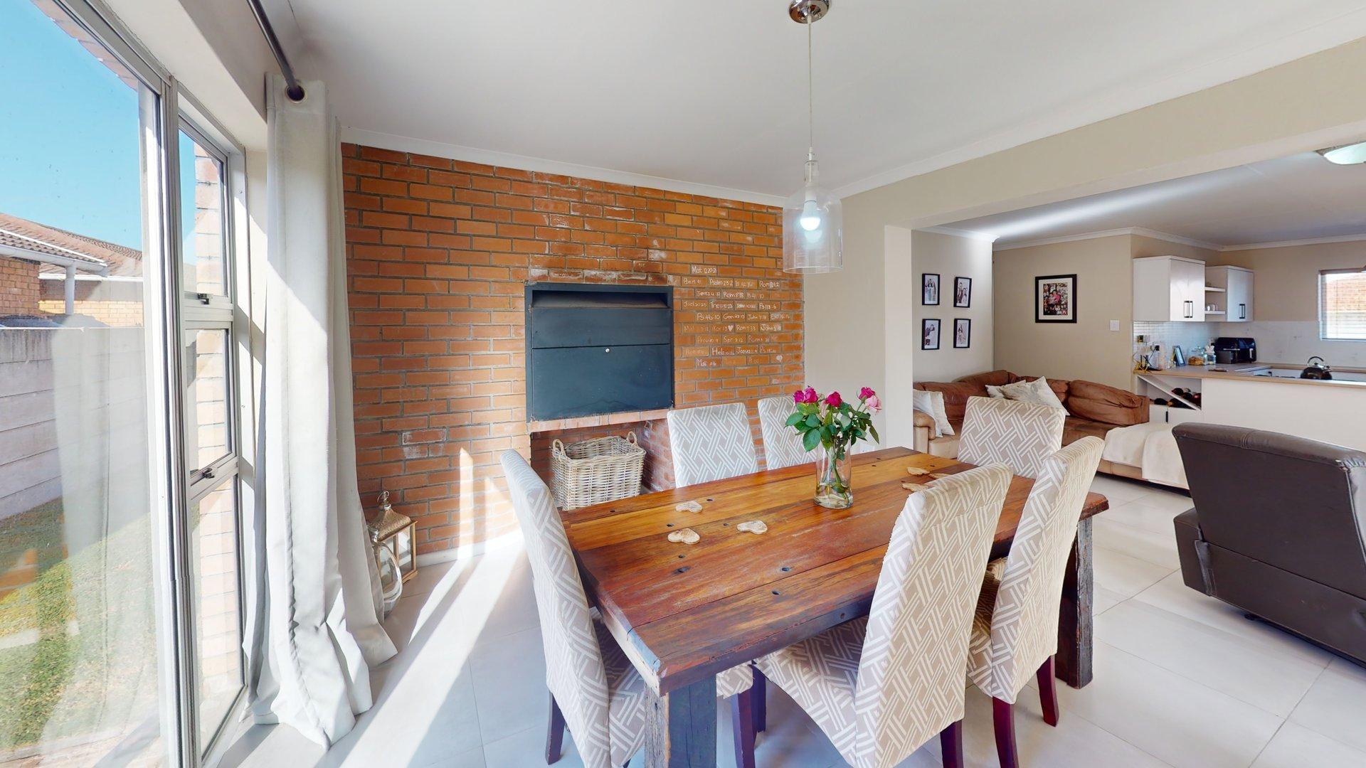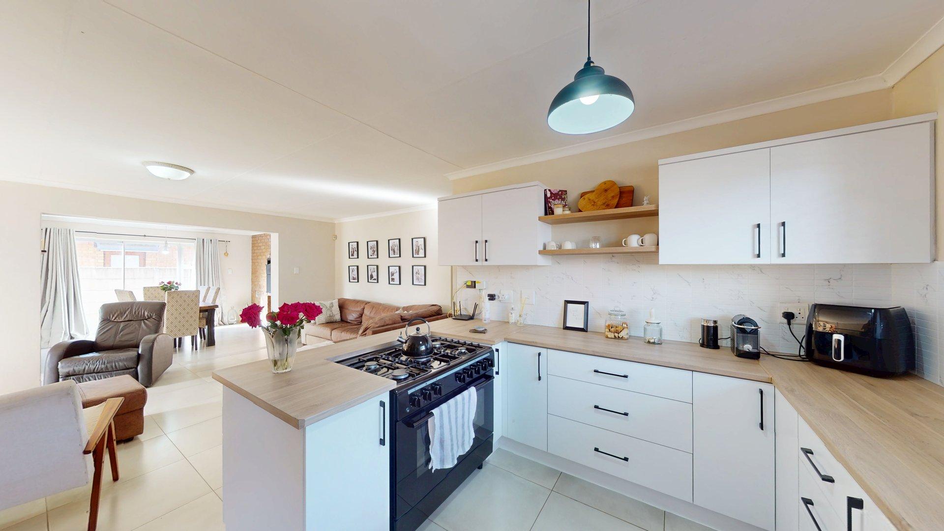 Step inside and you’re welcomed by a light and airy open-plan living space that flows into a dining area with a built-in braai — perfect for entertaining all year round. The modern kitchen with its separate scullery is both stylish and practical, keeping the living area clutter-free.