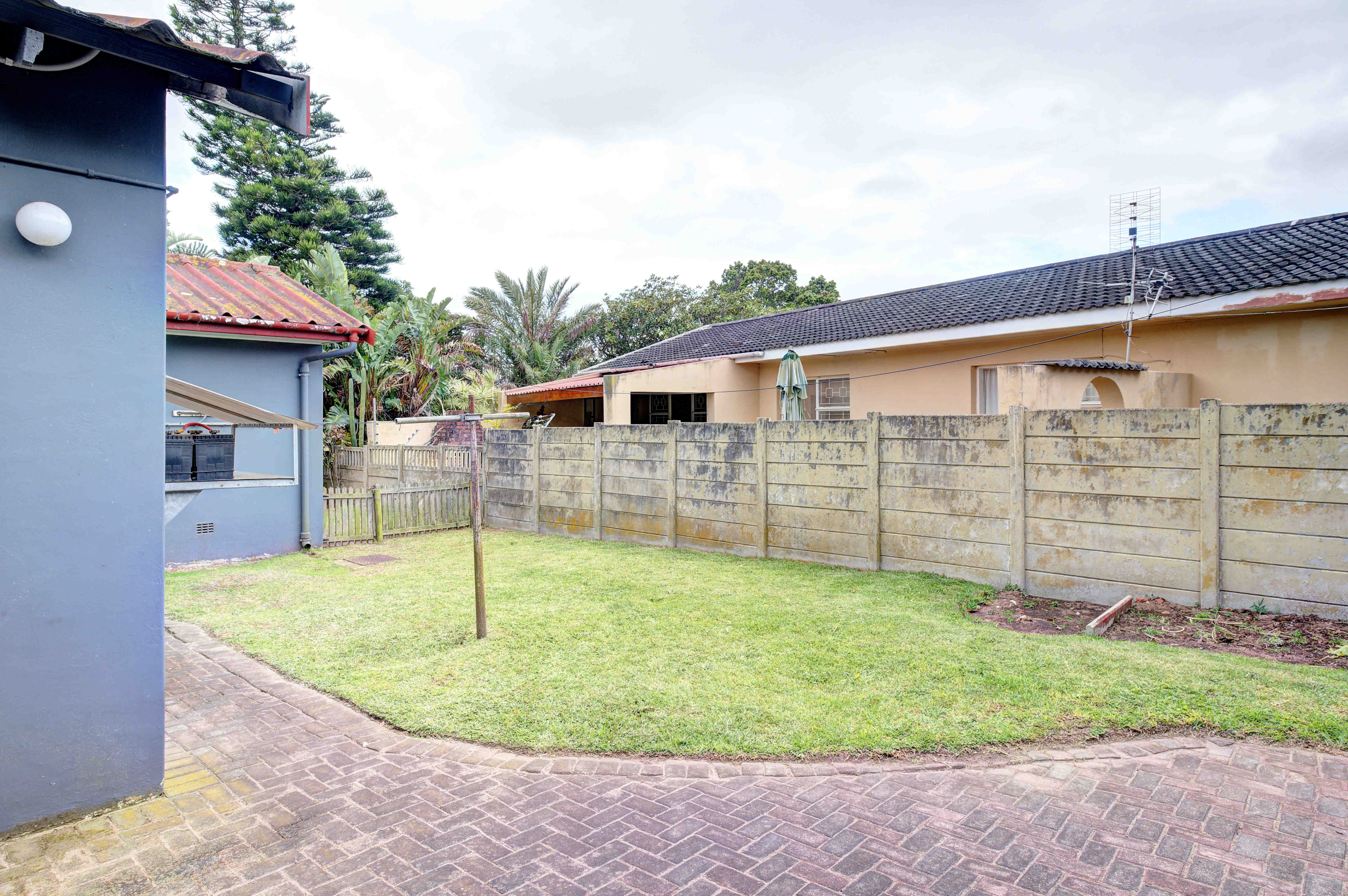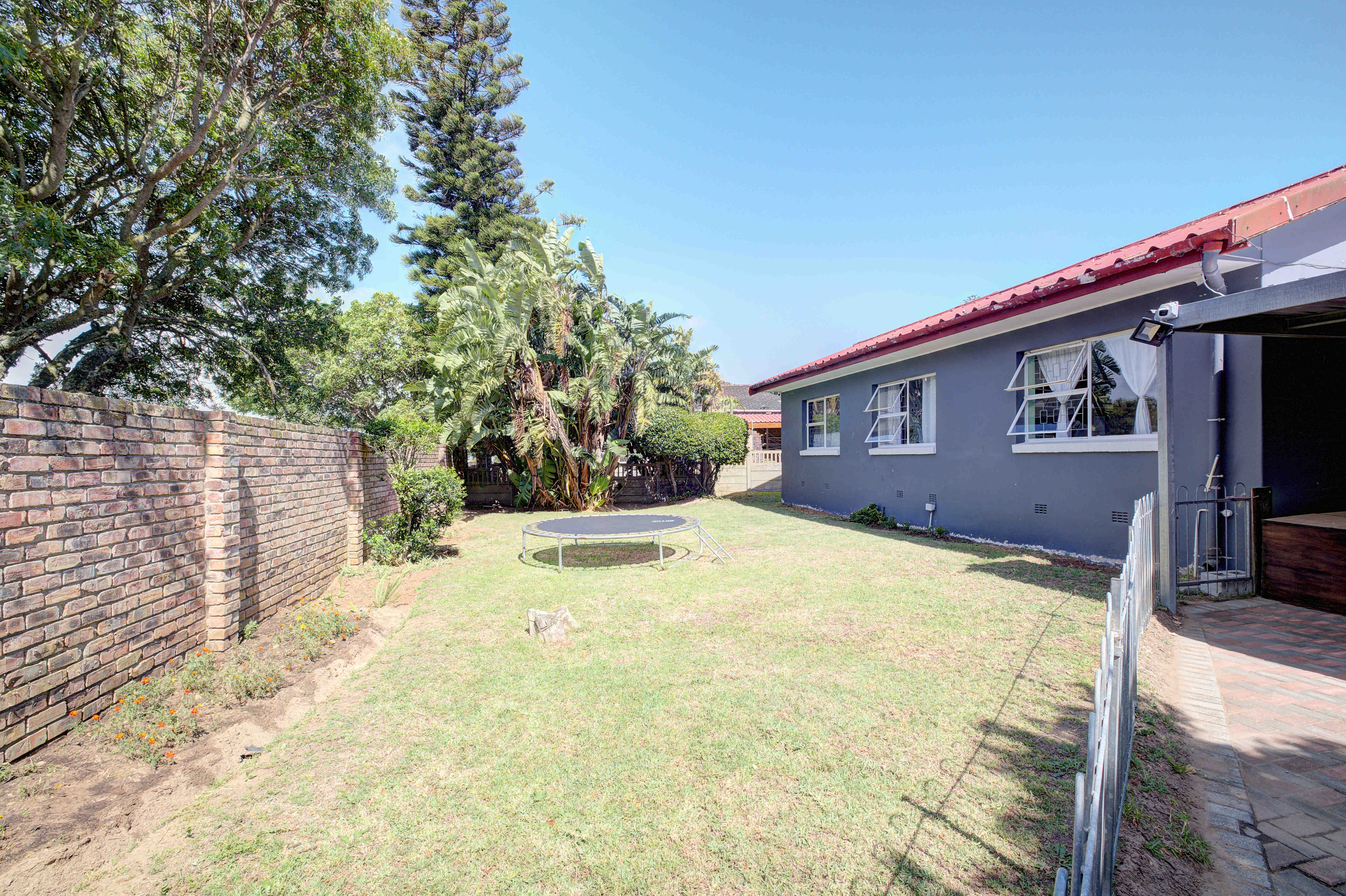The fully enclosed yard has plenty of space for kids and pets alike.