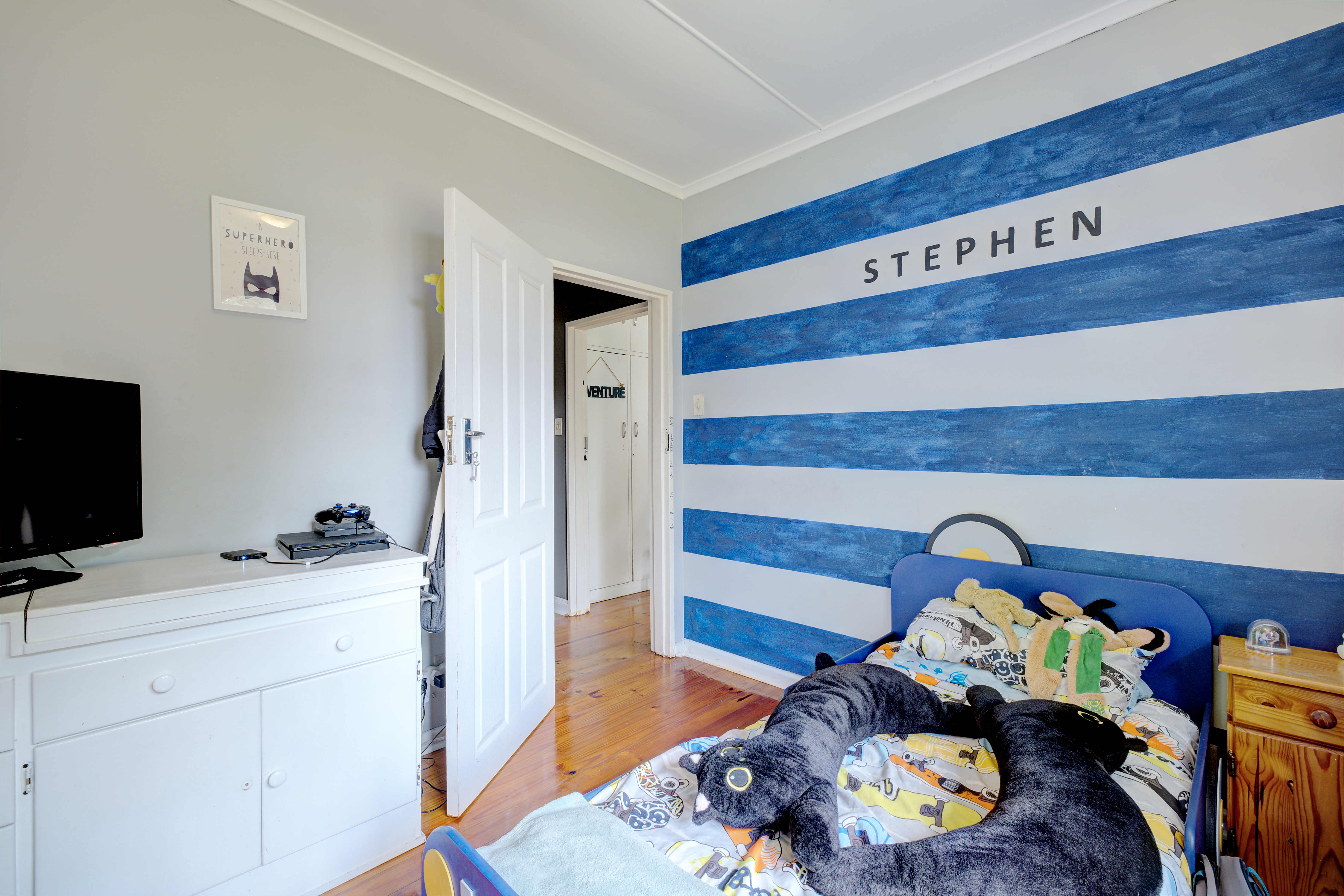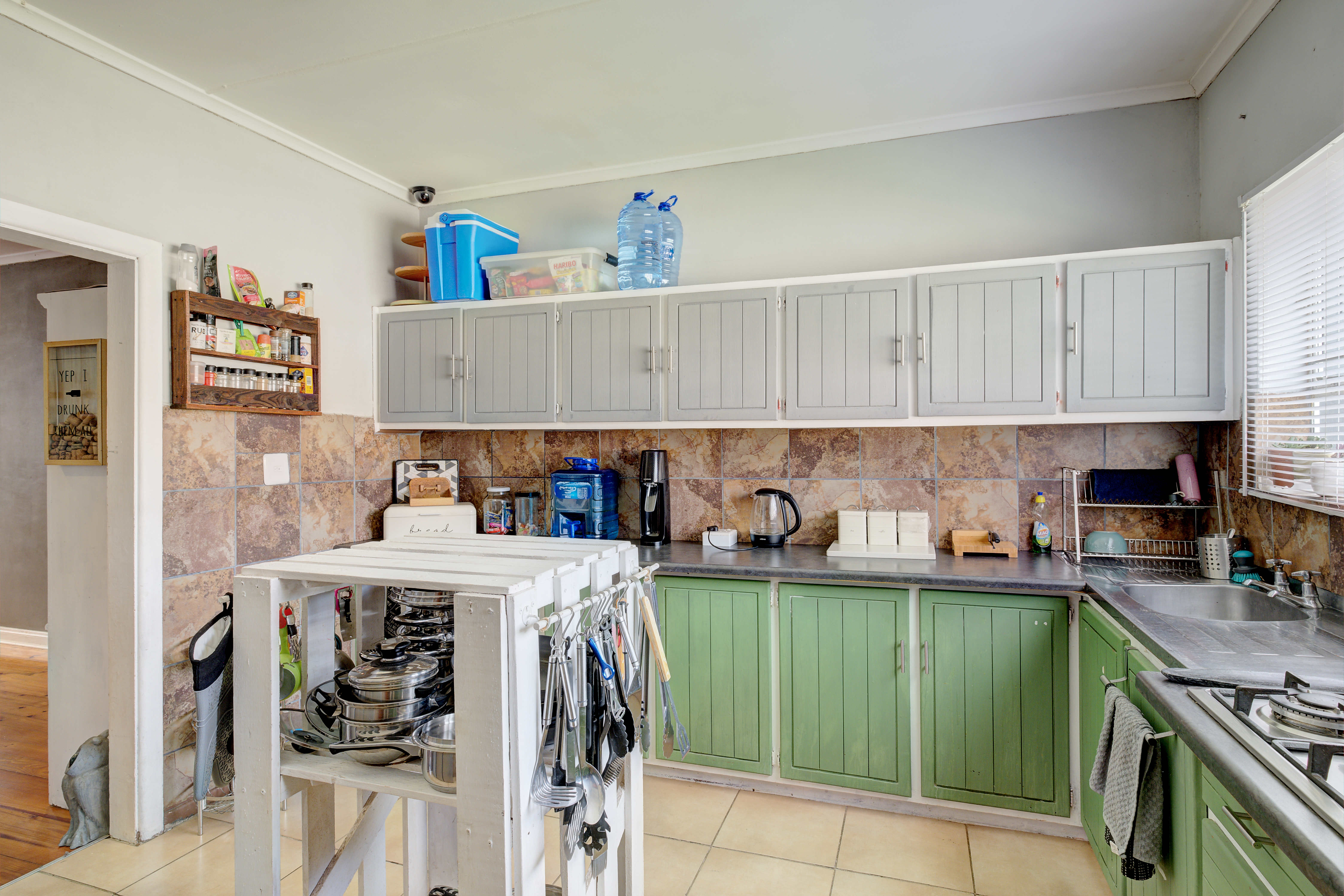 The kitchen is fitted with a 4-burner gas hob, ensuring easy meal preparation even during load shedding.