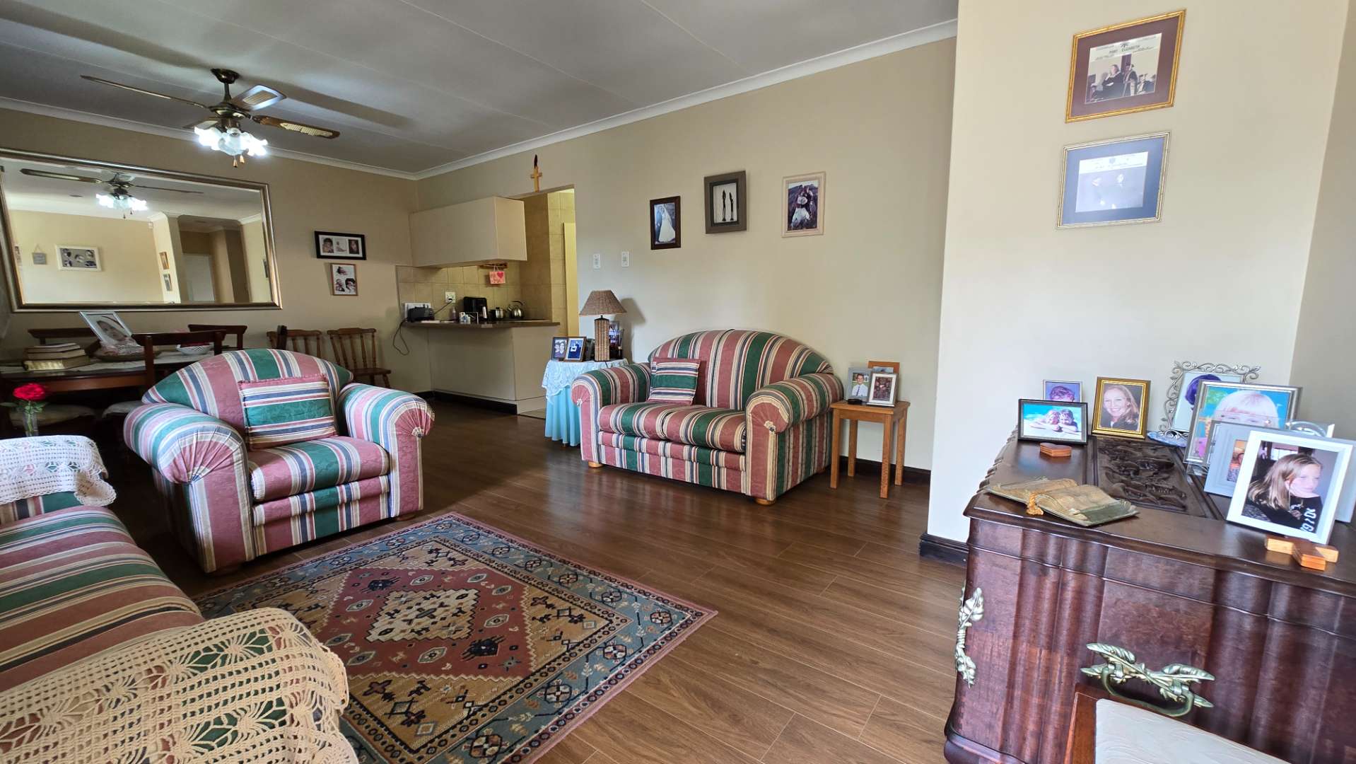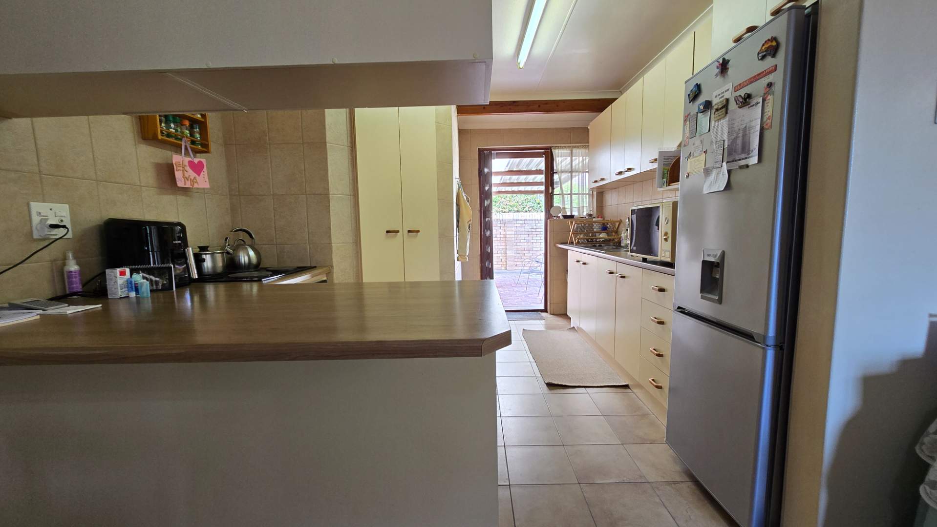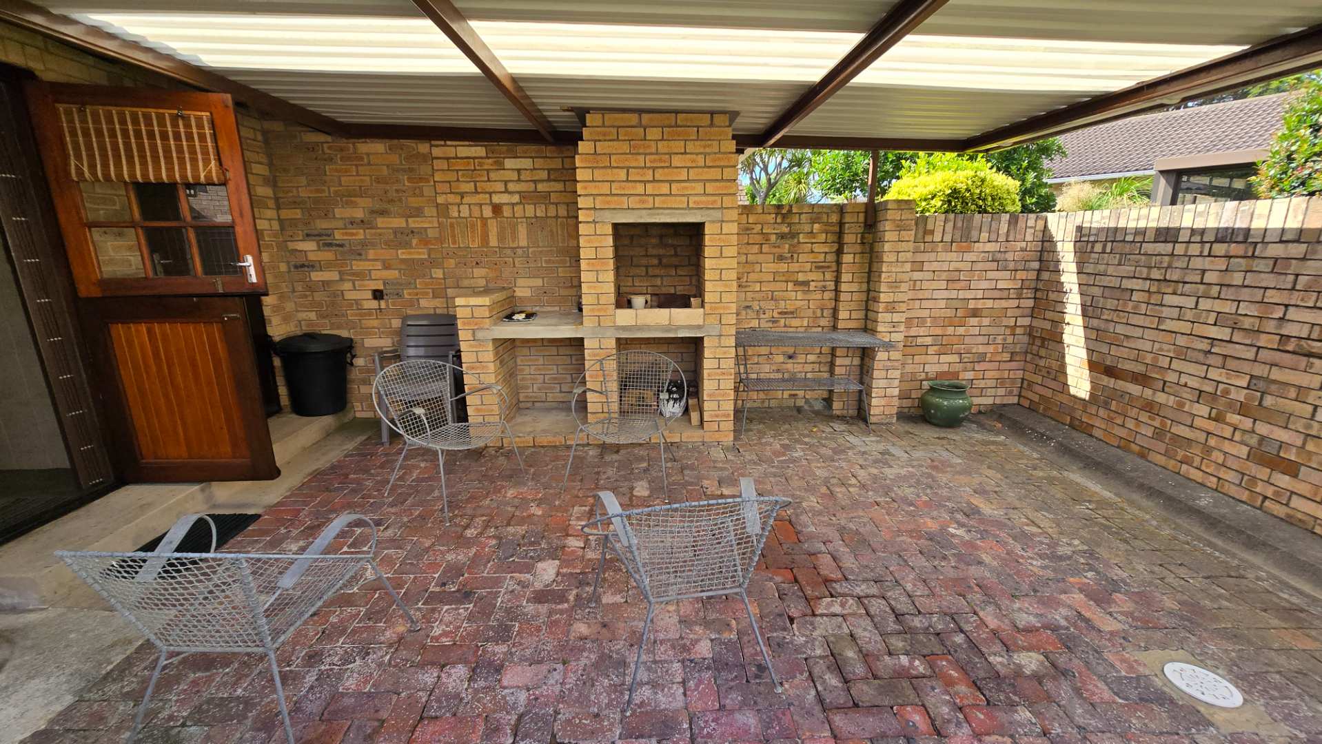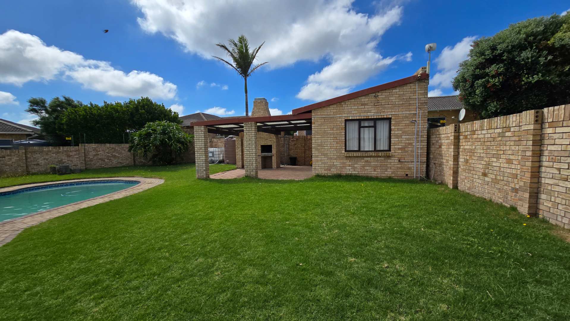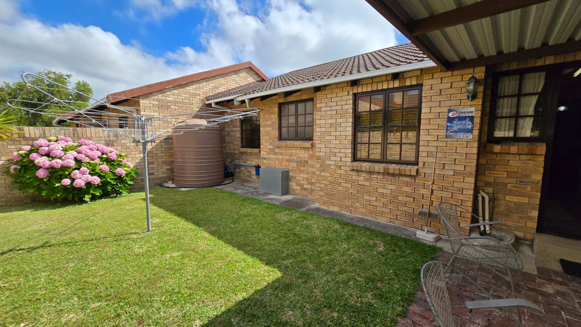 The garden is of a decent size for those wanting a garden without a lot of maintenance. A well-maintained outdoor space, perfect for children, pets, or quiet reflection The backyard has an undercover braai area with easy access to the kitchen. A water harvesting system is in place to ensure that there is always water to the property.