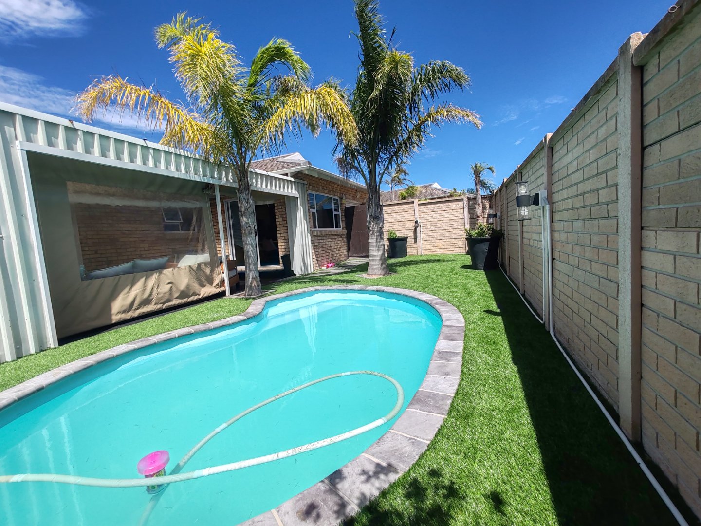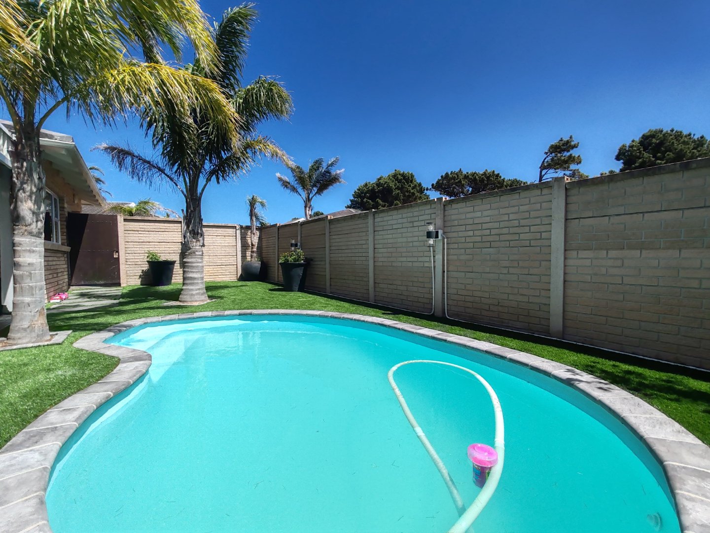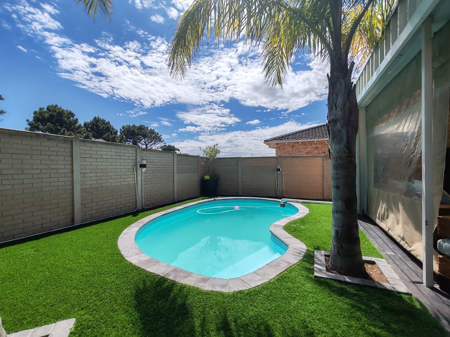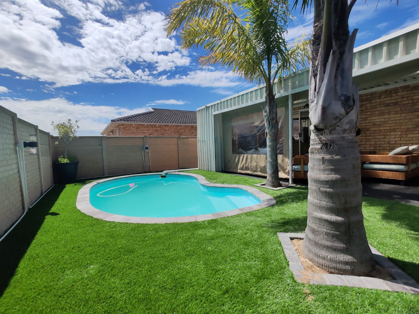 Inviting pool area with queen palms and brand new astro turf that has just been fitted, perfect size fibreglass pool to splash in on the hot summer days. Manageable manicured garden.