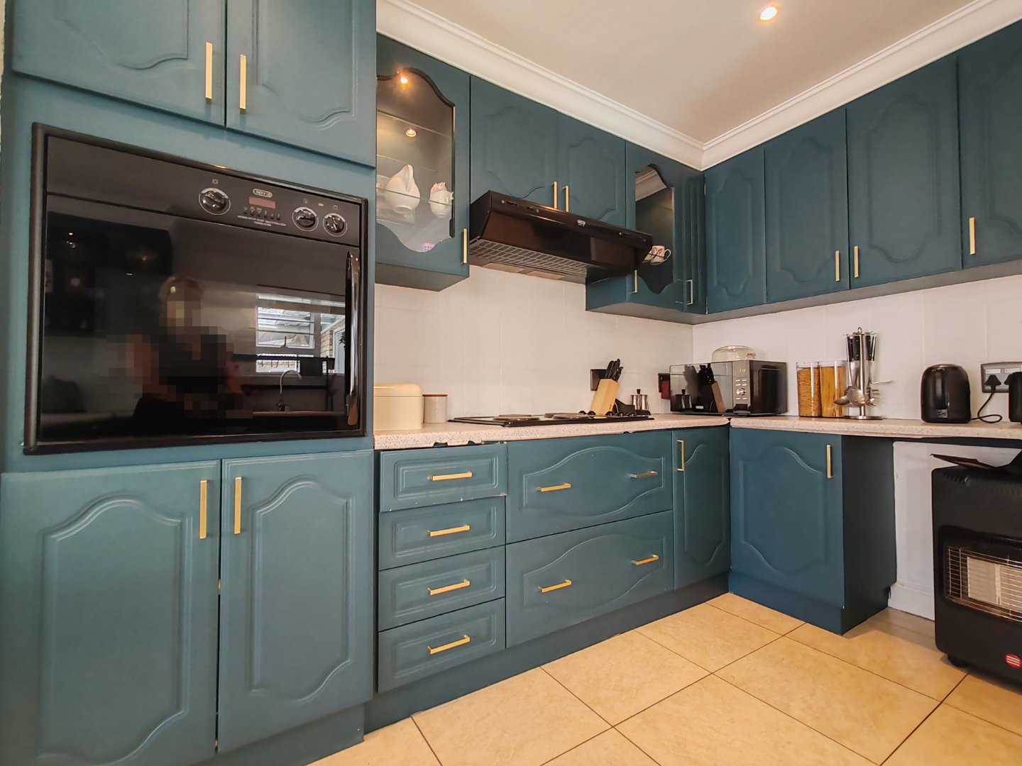 The kitchen is modern, plenty cupboards and counter tops, eye level oven and stove, hob and extractor fan.