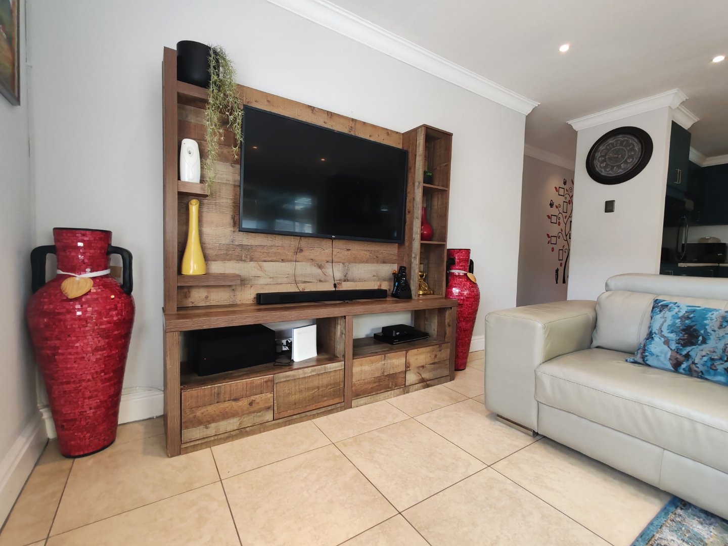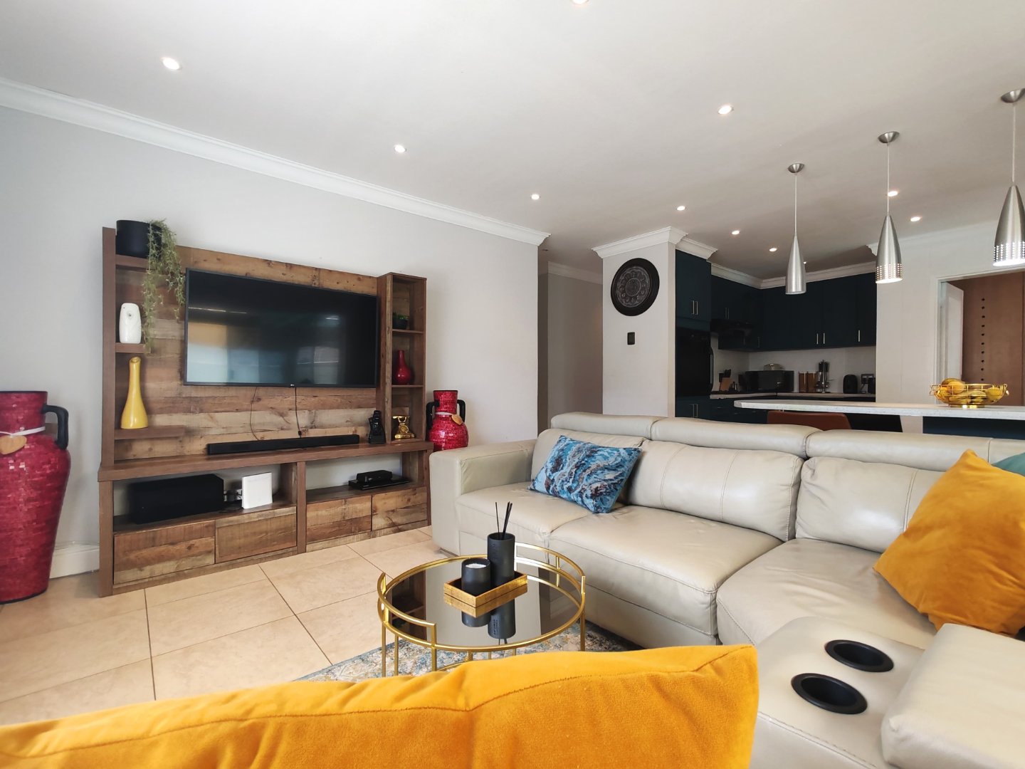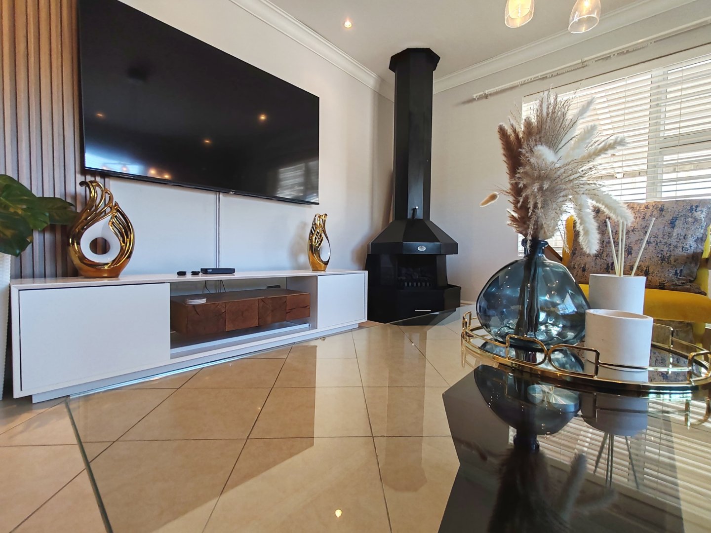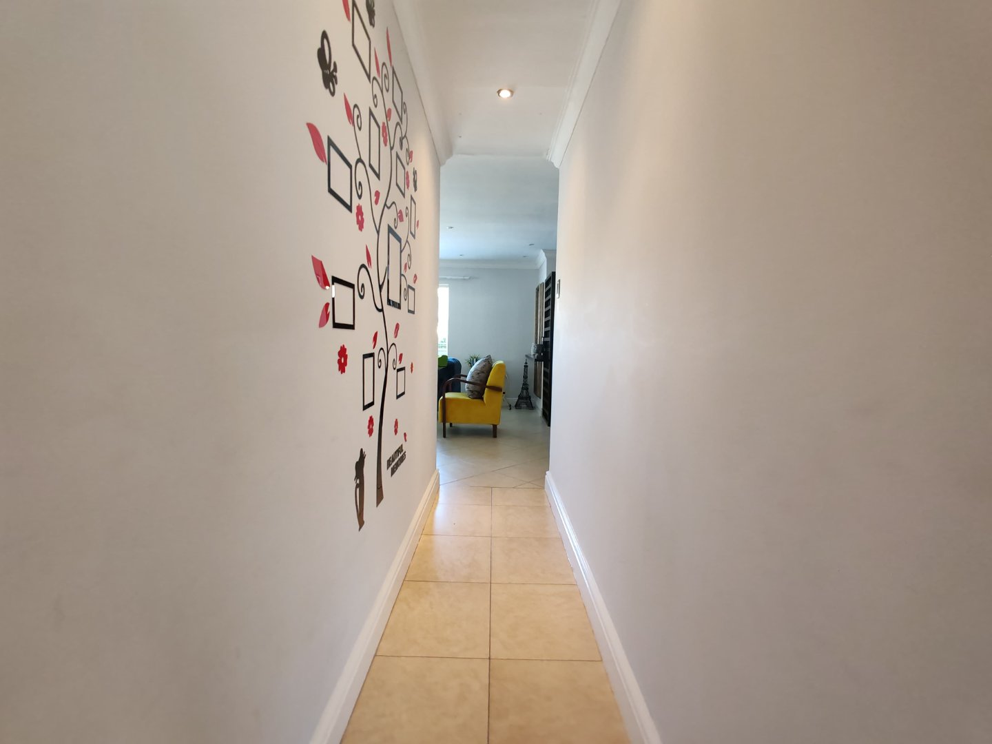 The passage leads to the heart of the home, open planned kitchen, TV room and outdoor undercover built in braai with drop blinds.