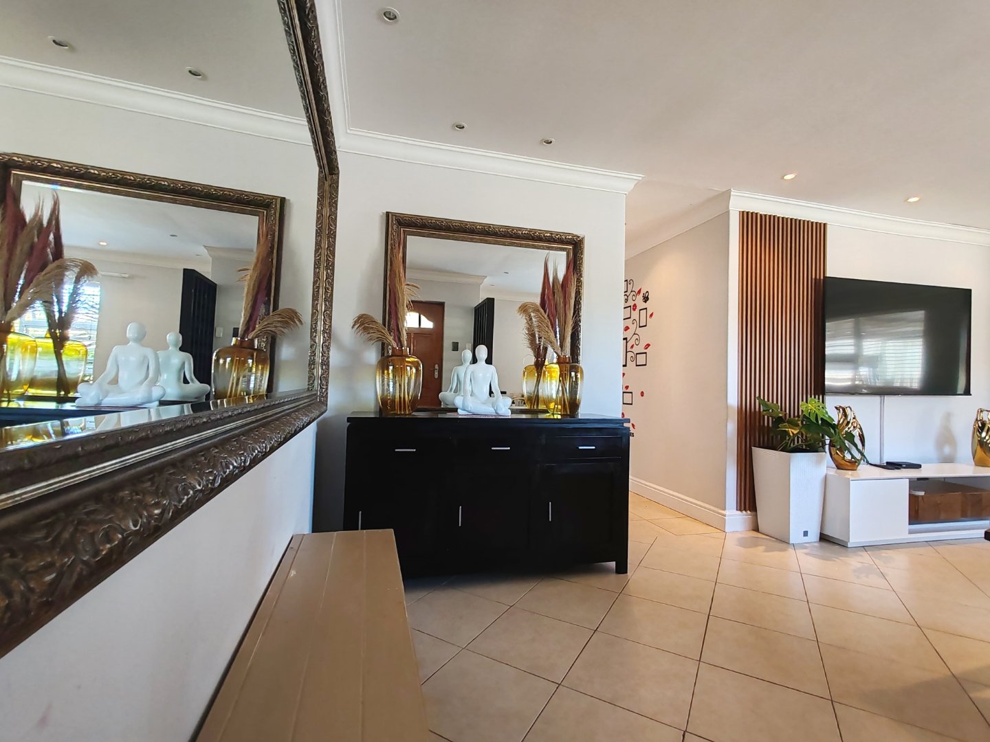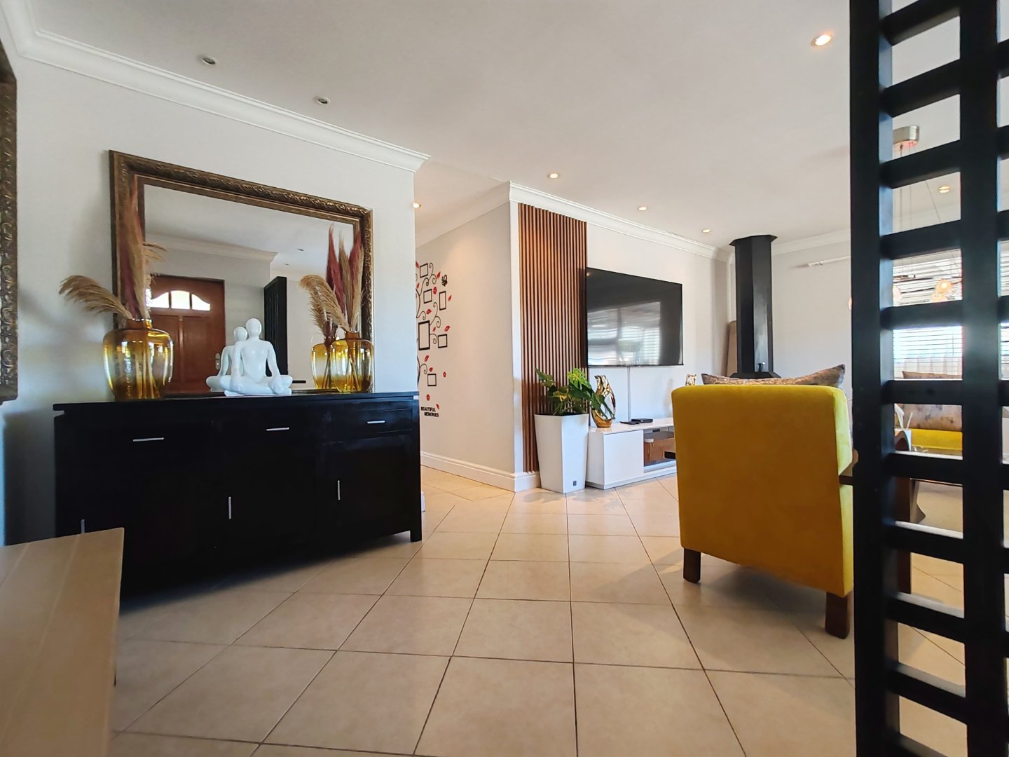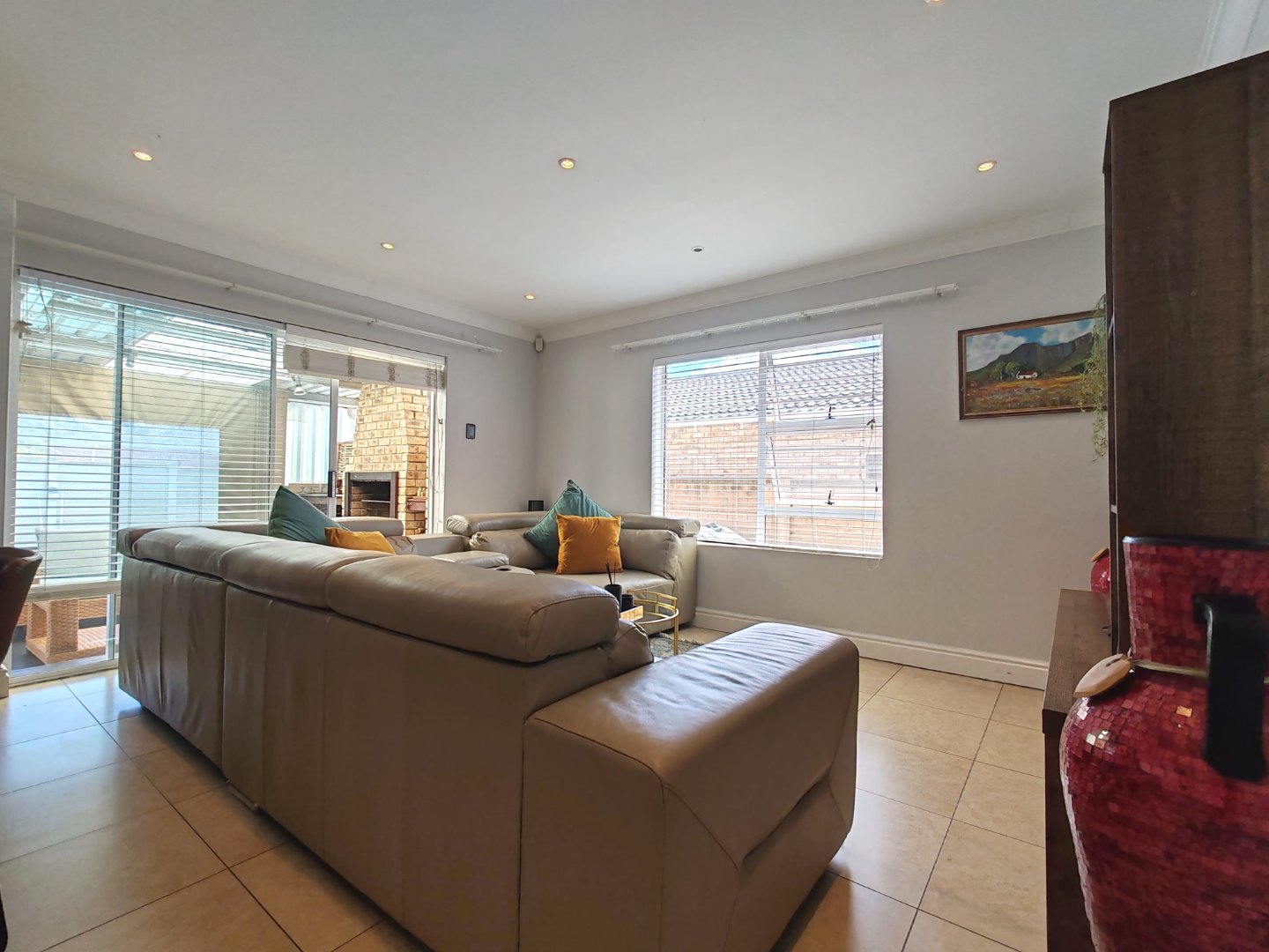 The passage leads to the heart of the home, open planned kitchen, TV room and outdoor undercover built in braai with drop blinds.