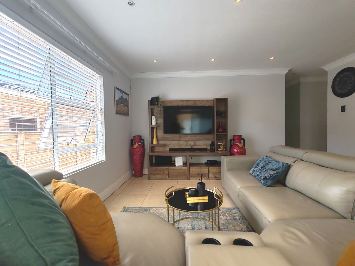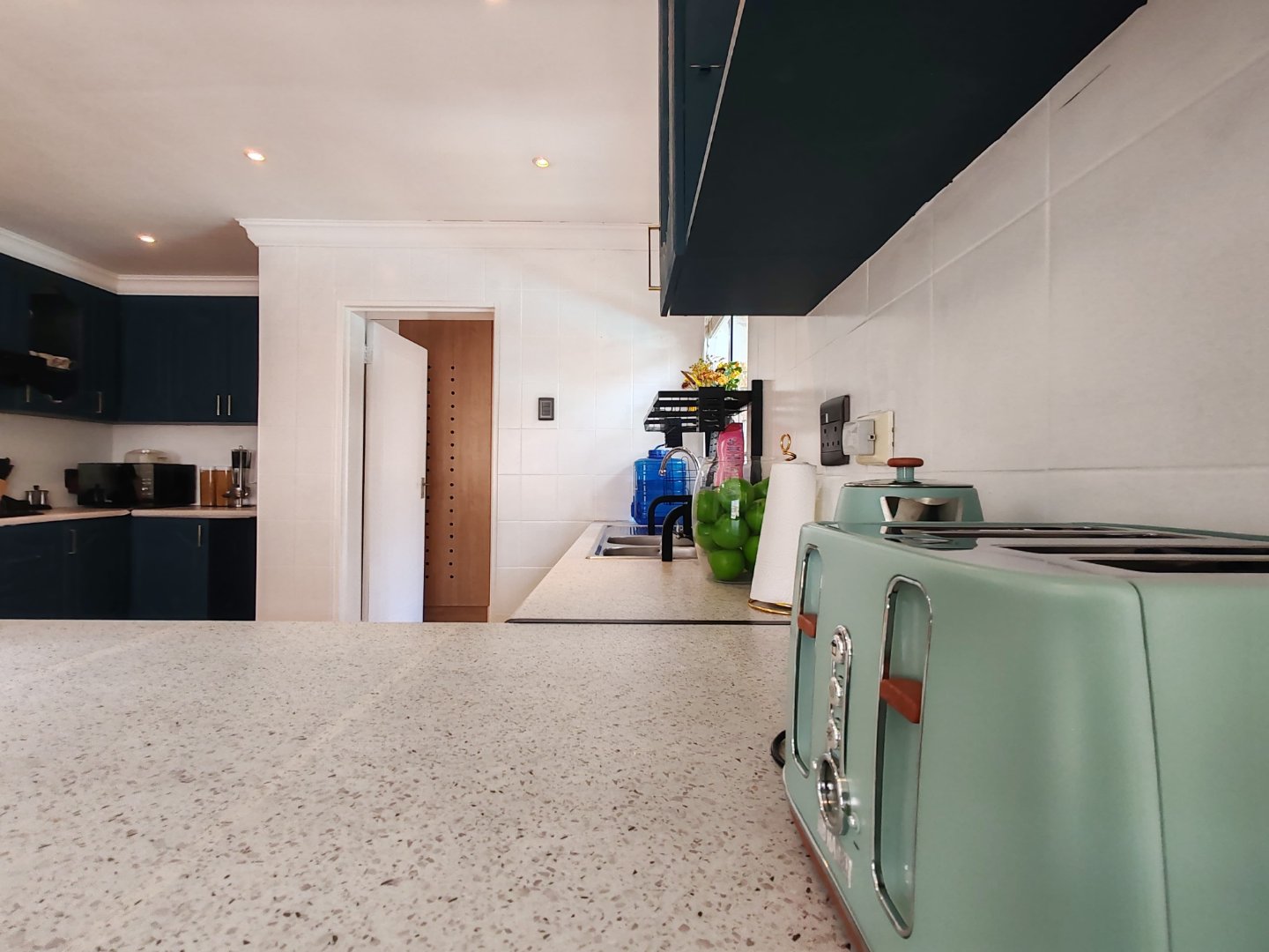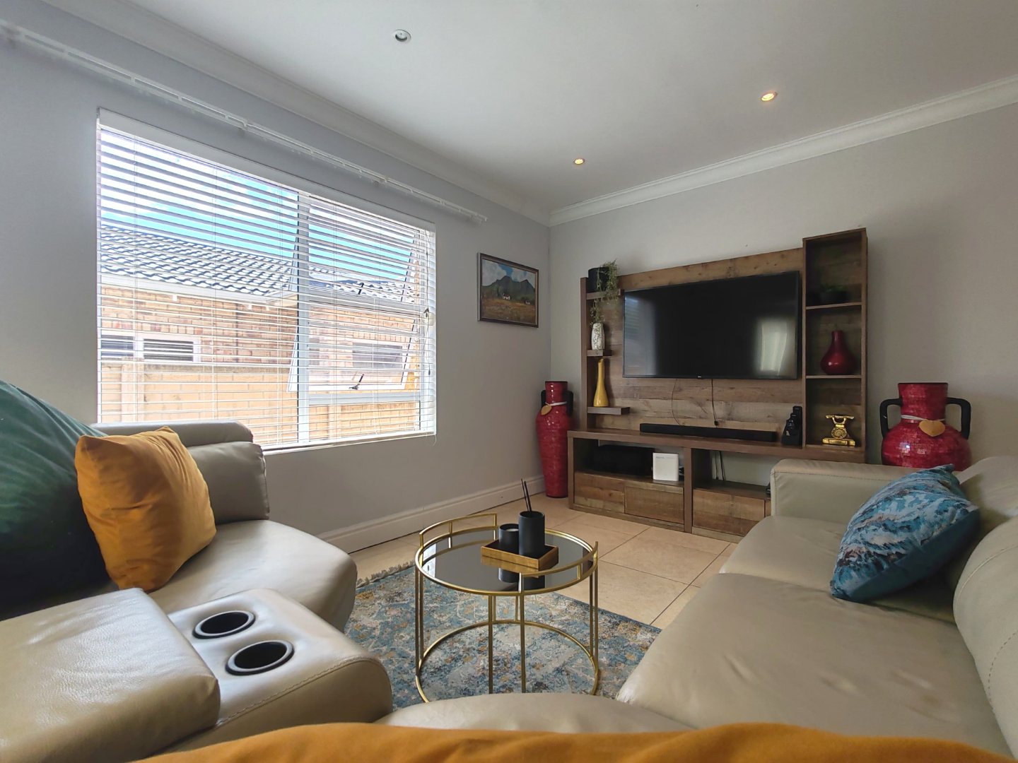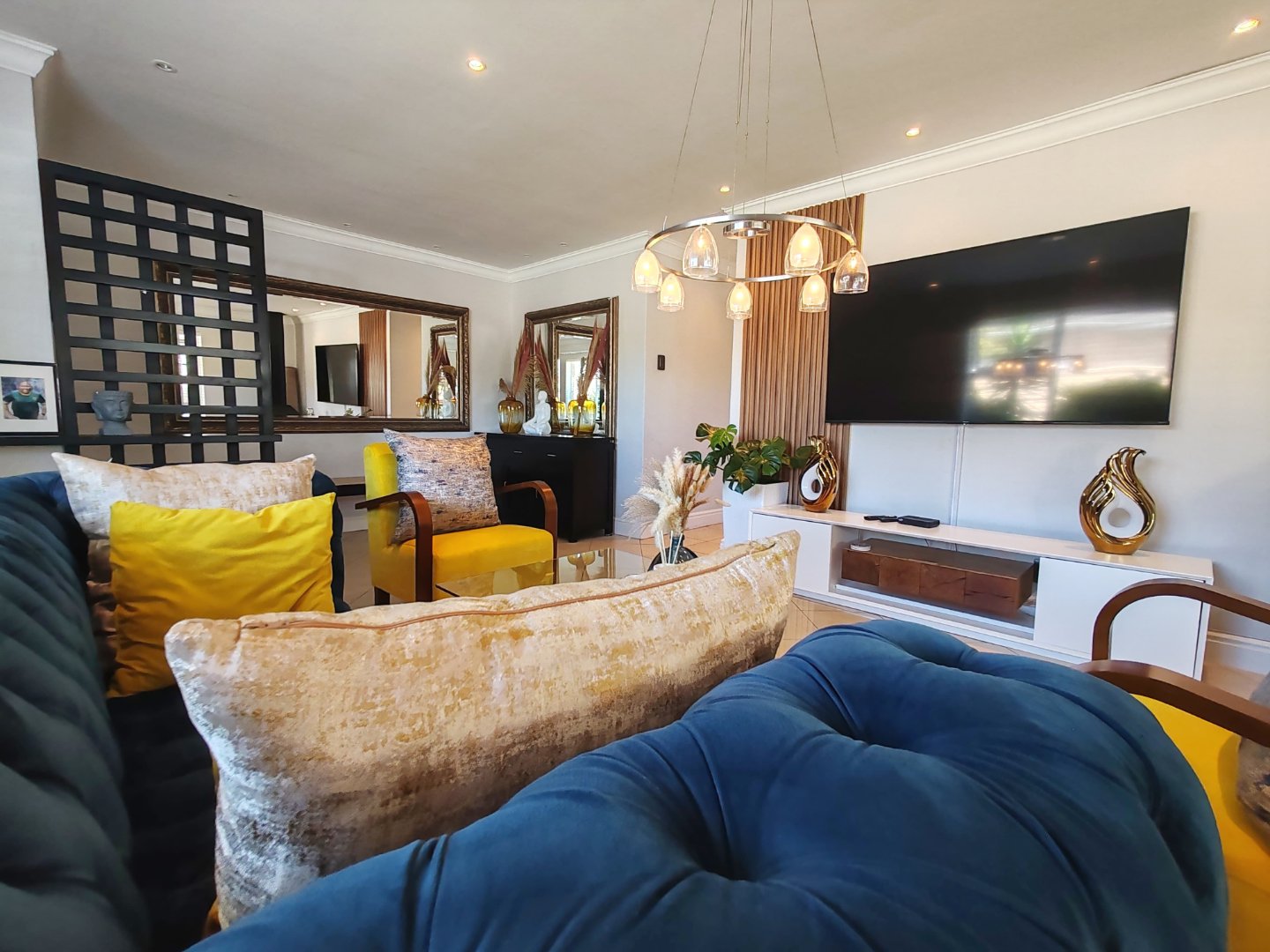 The passage leads to the heart of the home, open planned kitchen, TV room and outdoor undercover built in braai with drop blinds.