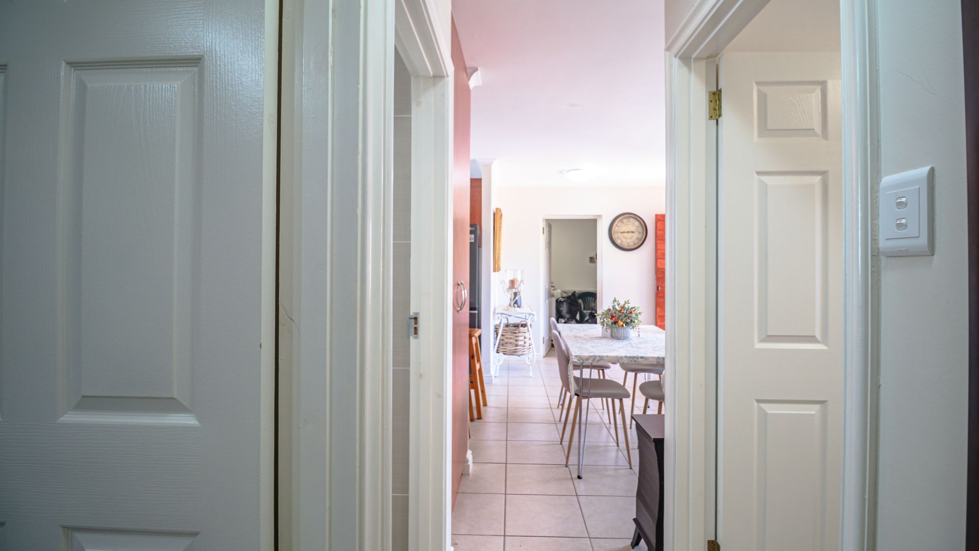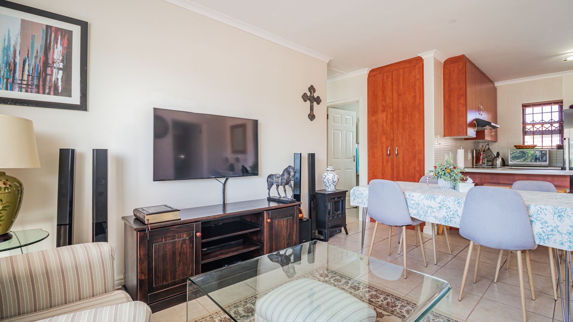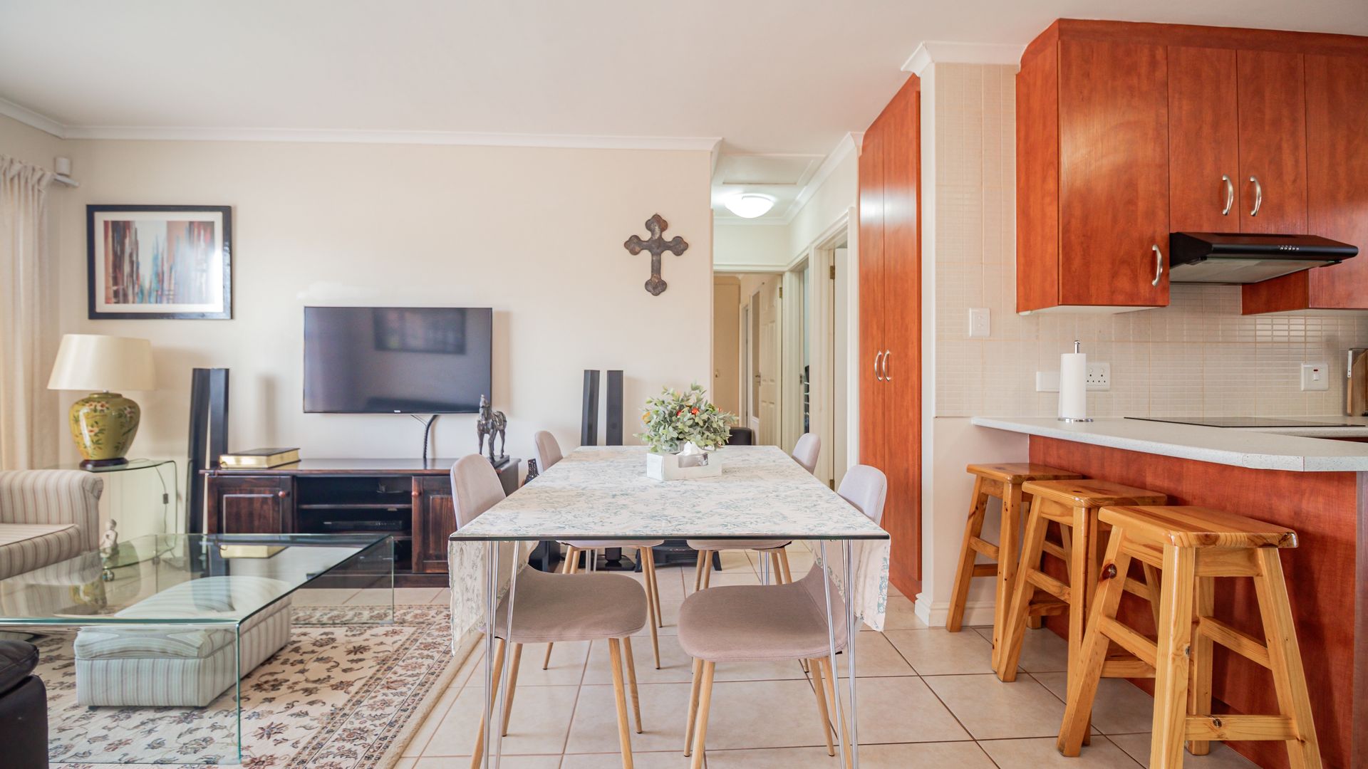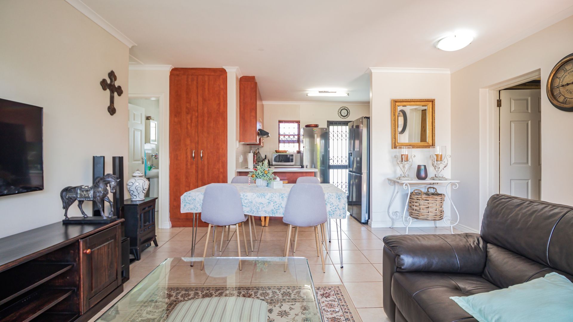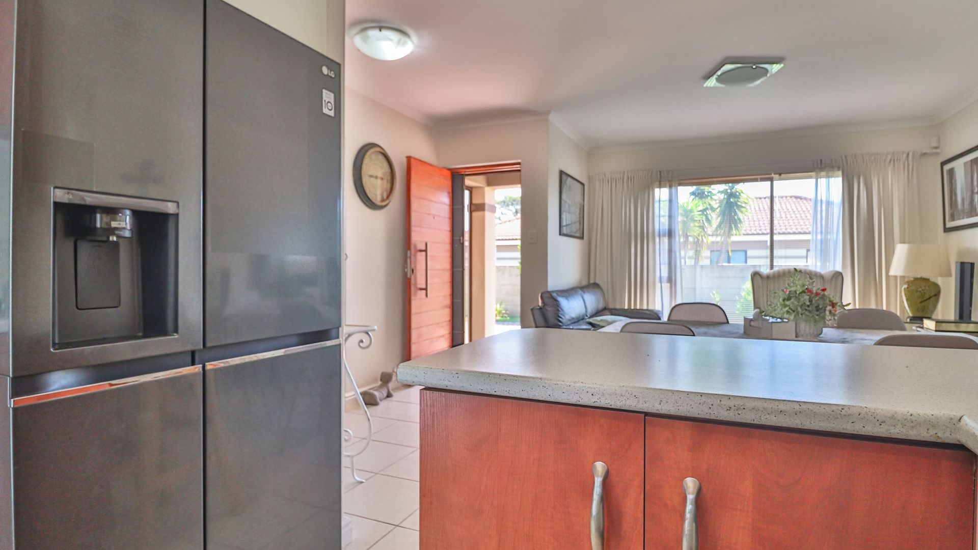 Open-plan kitchen flowing seamlessly into the dining room and lounge