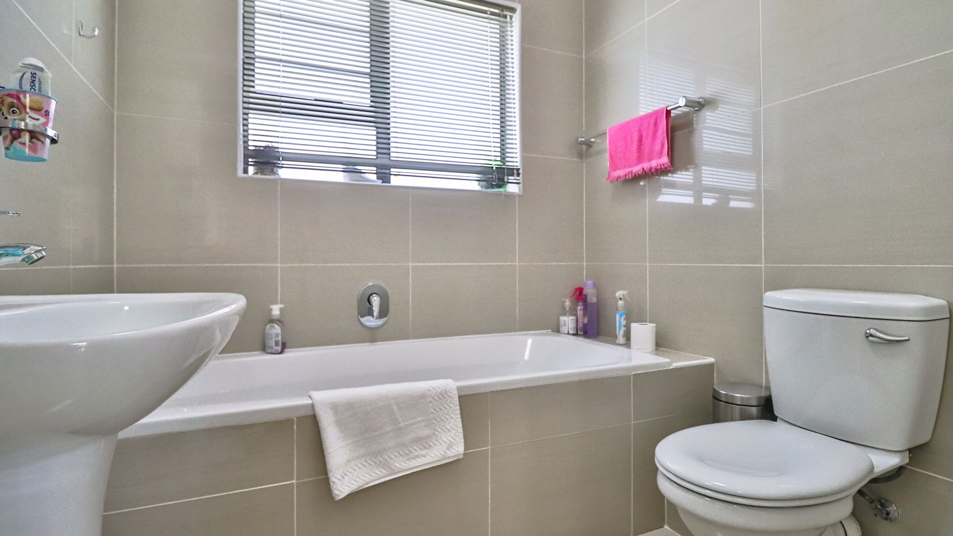 A second modern bathroom that is light and bright