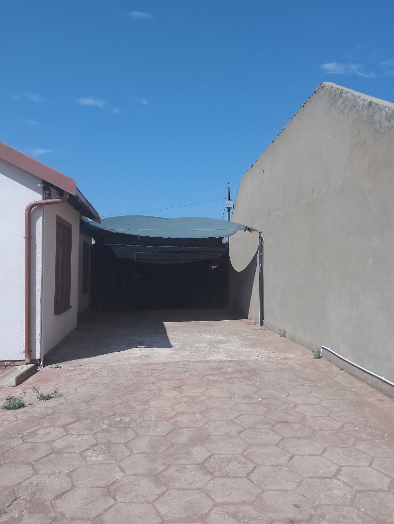 The dwelling has a big yard and is secured all around. Enclosed carport with shelves for storage.