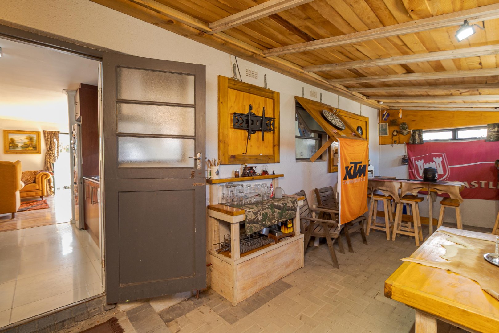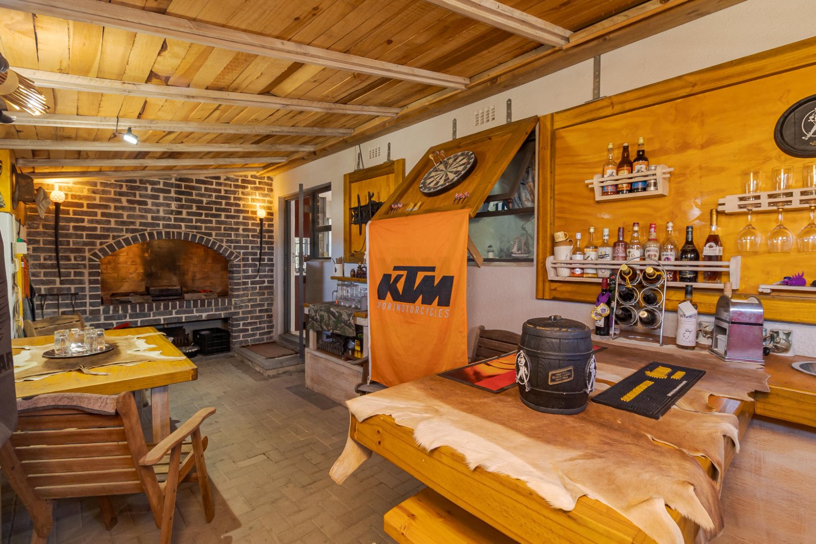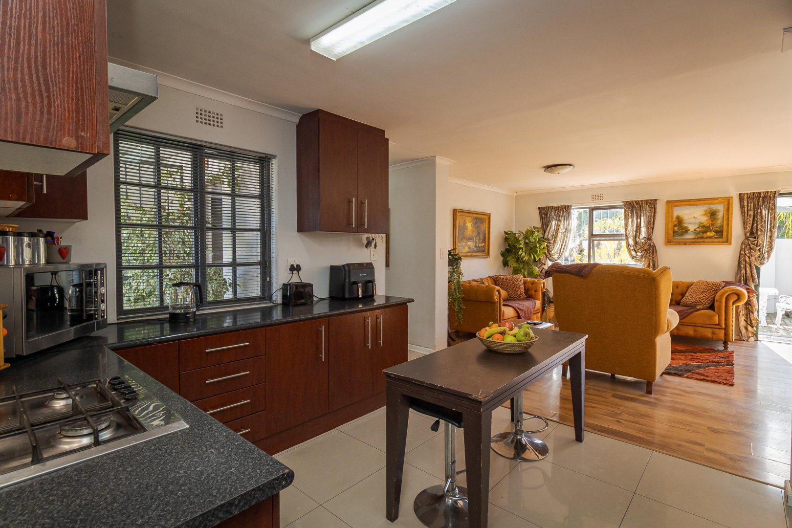 The main residence is designed to make everyday living and entertaining effortless. A bright, open-plan lounge welcomes you in, flowing into a modern, well-appointed kitchen complete with a gas hob, under-counter oven, and generous cupboard space. Adjacent to the kitchen, a dedicated braai room with a built-in braai sets the scene for cosy evenings or lively gatherings.