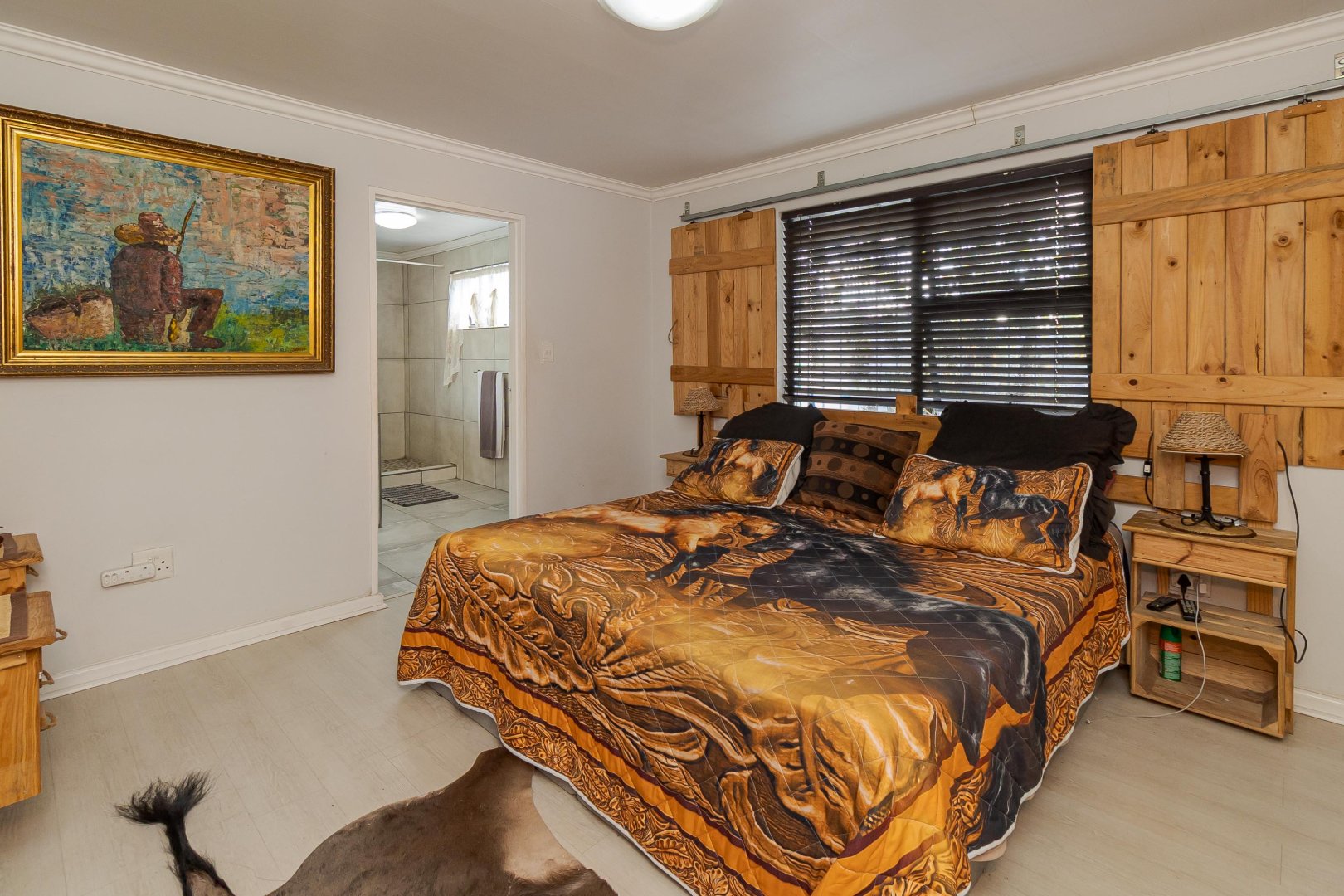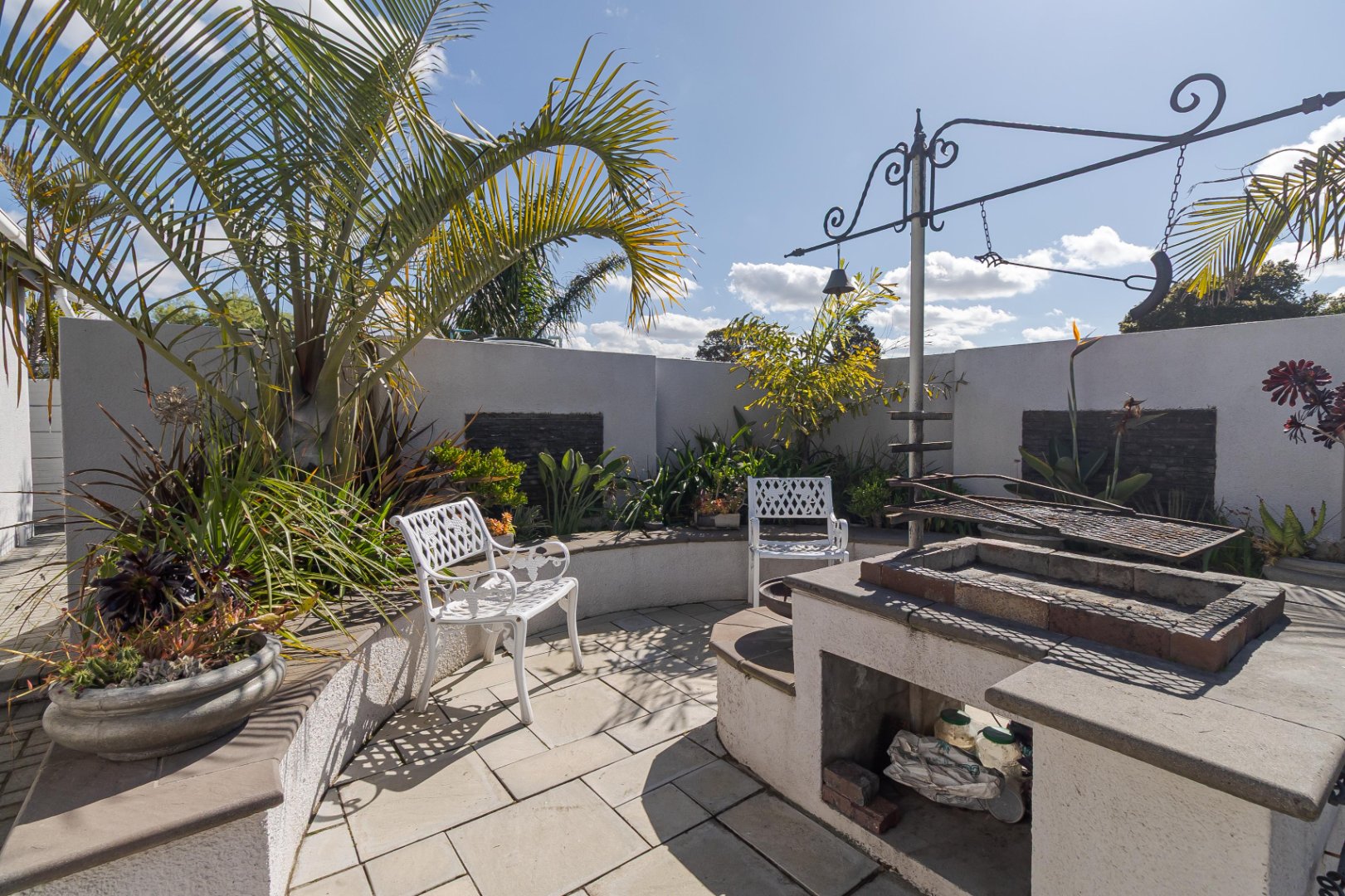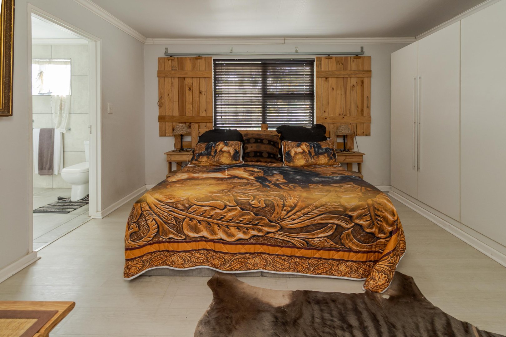 The main residence is designed to make everyday living and entertaining effortless. A bright, open-plan lounge welcomes you in, flowing into a modern, well-appointed kitchen complete with a gas hob, under-counter oven, and generous cupboard space. Adjacent to the kitchen, a dedicated braai room with a built-in braai sets the scene for cosy evenings or lively gatherings.