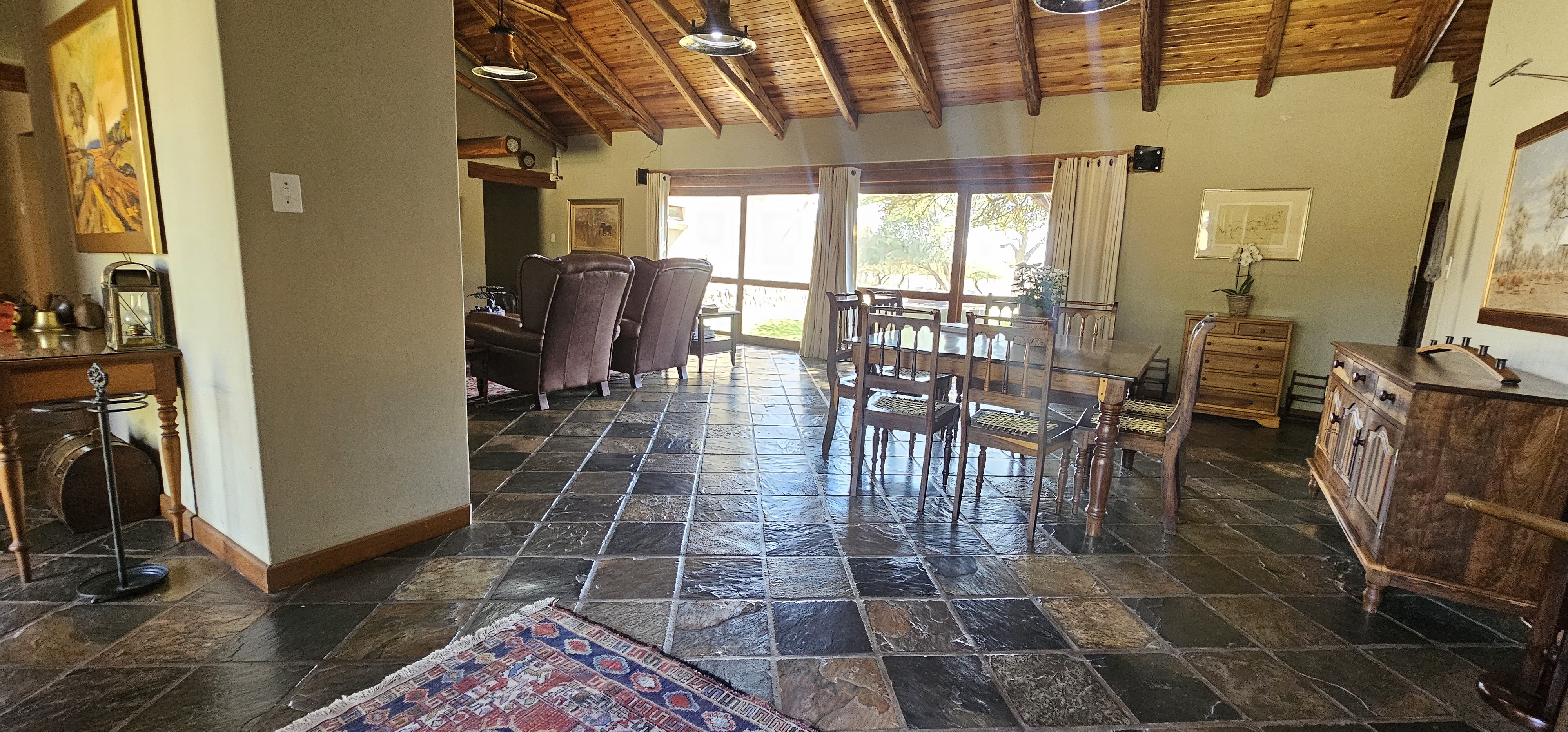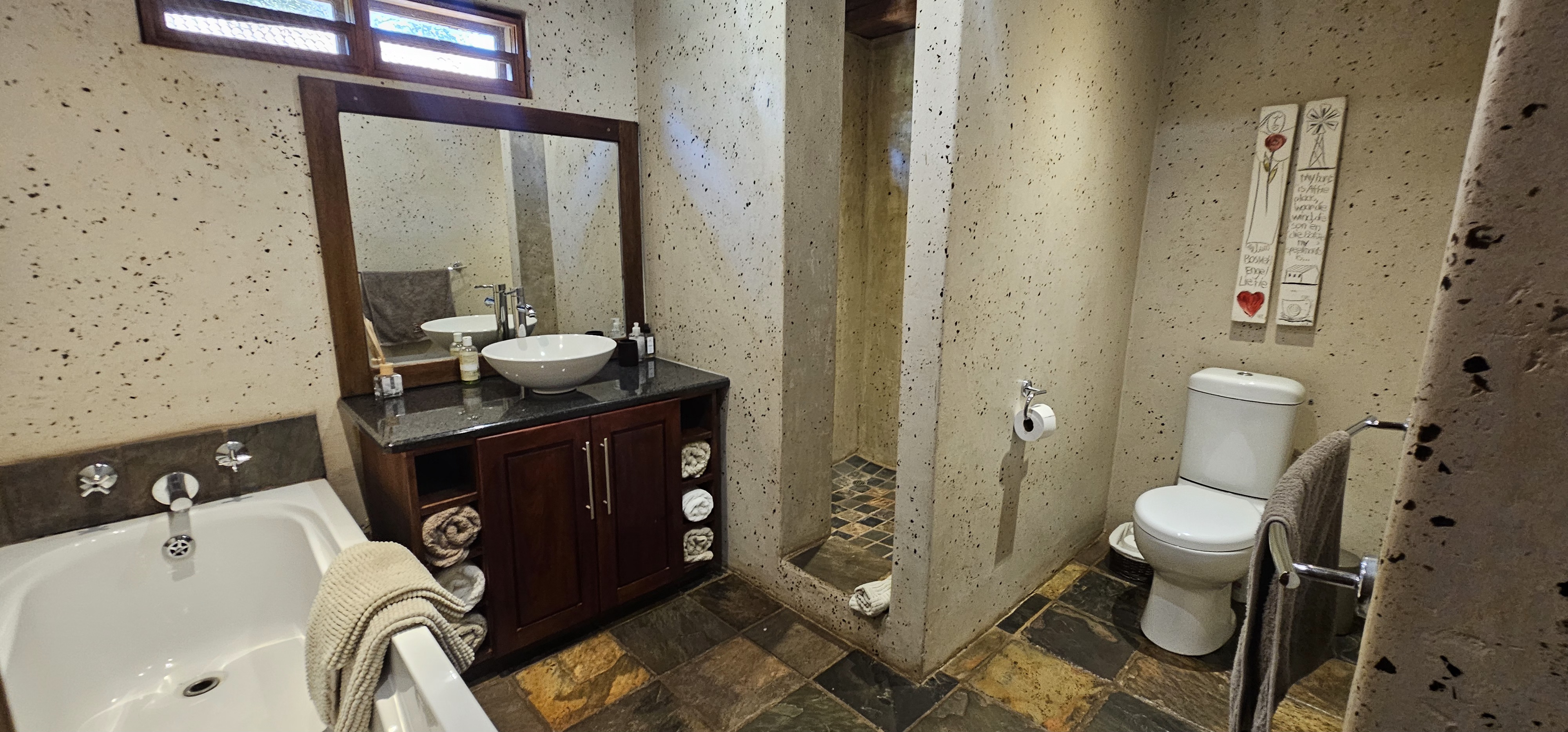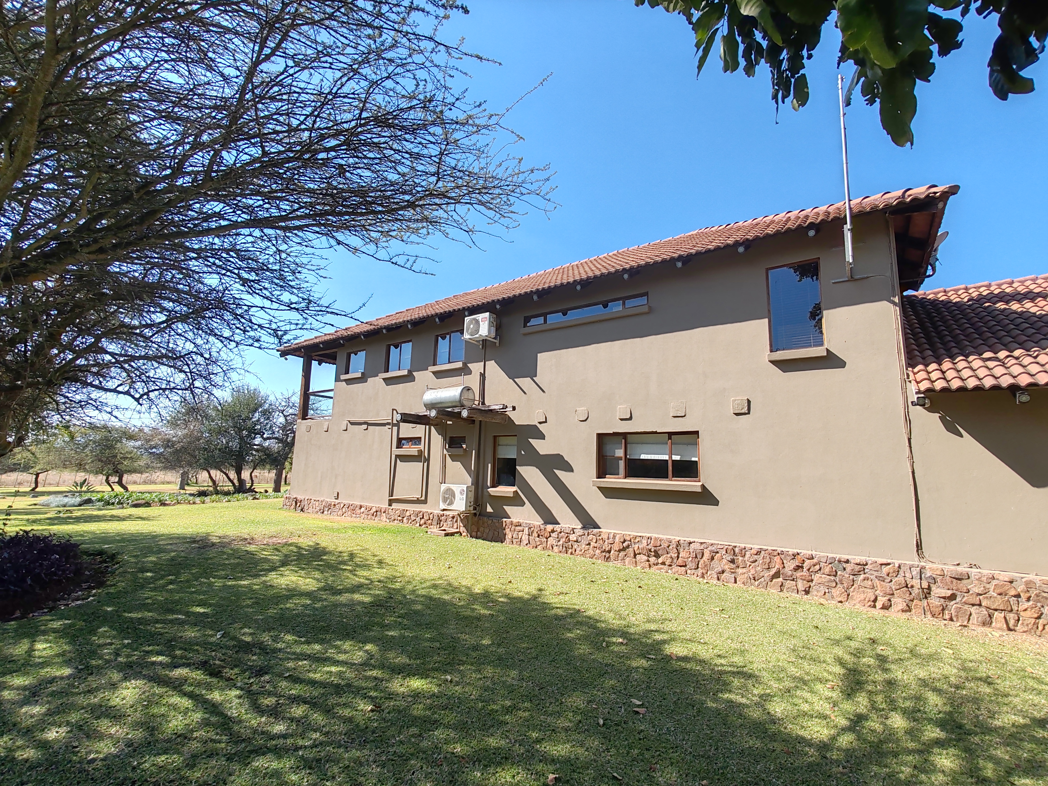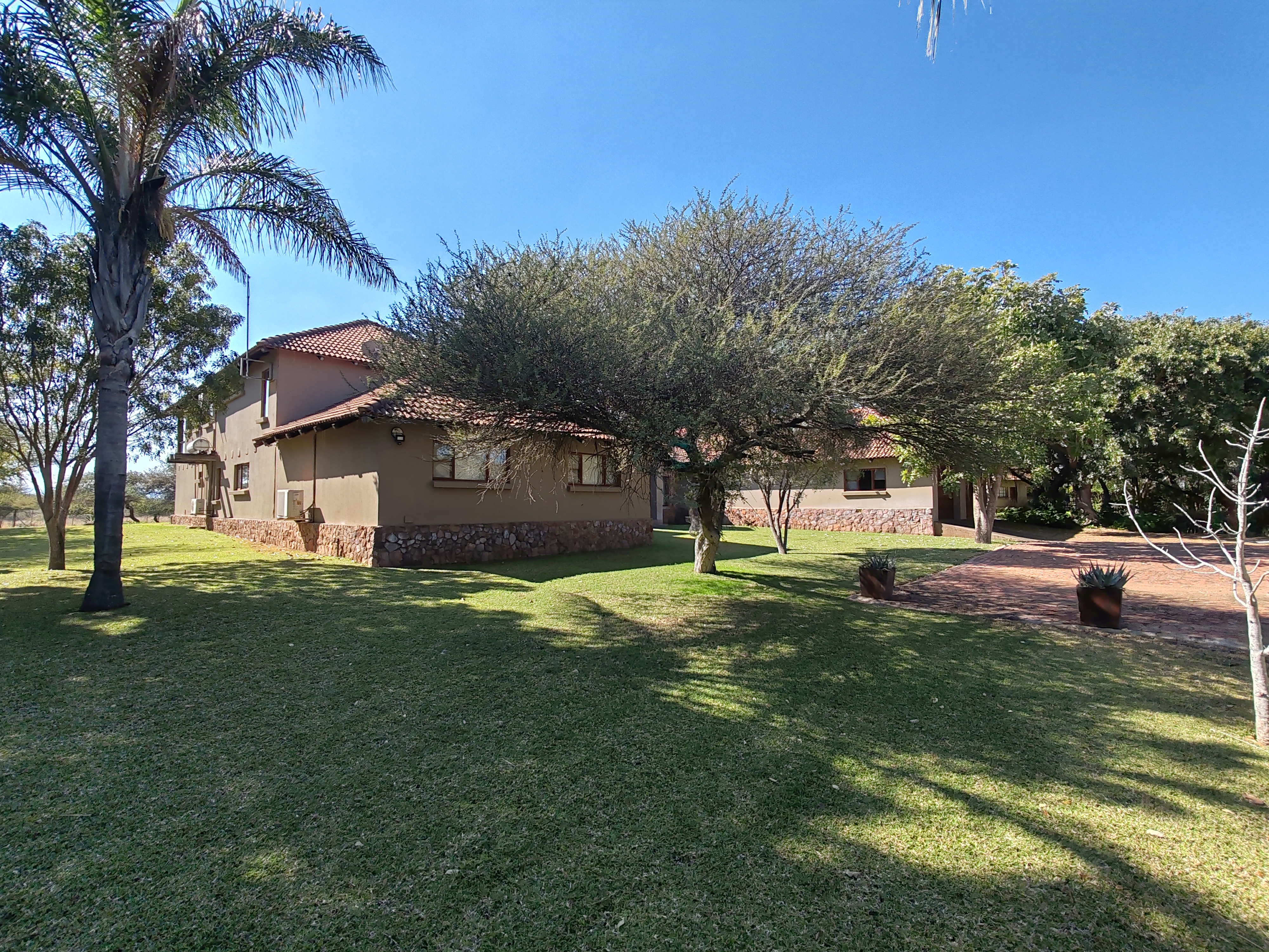 The house is a modern, beautiful, owner designed double story structure designed to accommodate all the necessary requirements for a bushveld existence. There are 3 bedrooms with own bathrooms, roomy and modern. The main bedroom is on the second floor with its own balcony. The view from here faces the majestic Soutpansberg range over the bushveld. There is an expansive office with its own walk in closet for files and stationary,