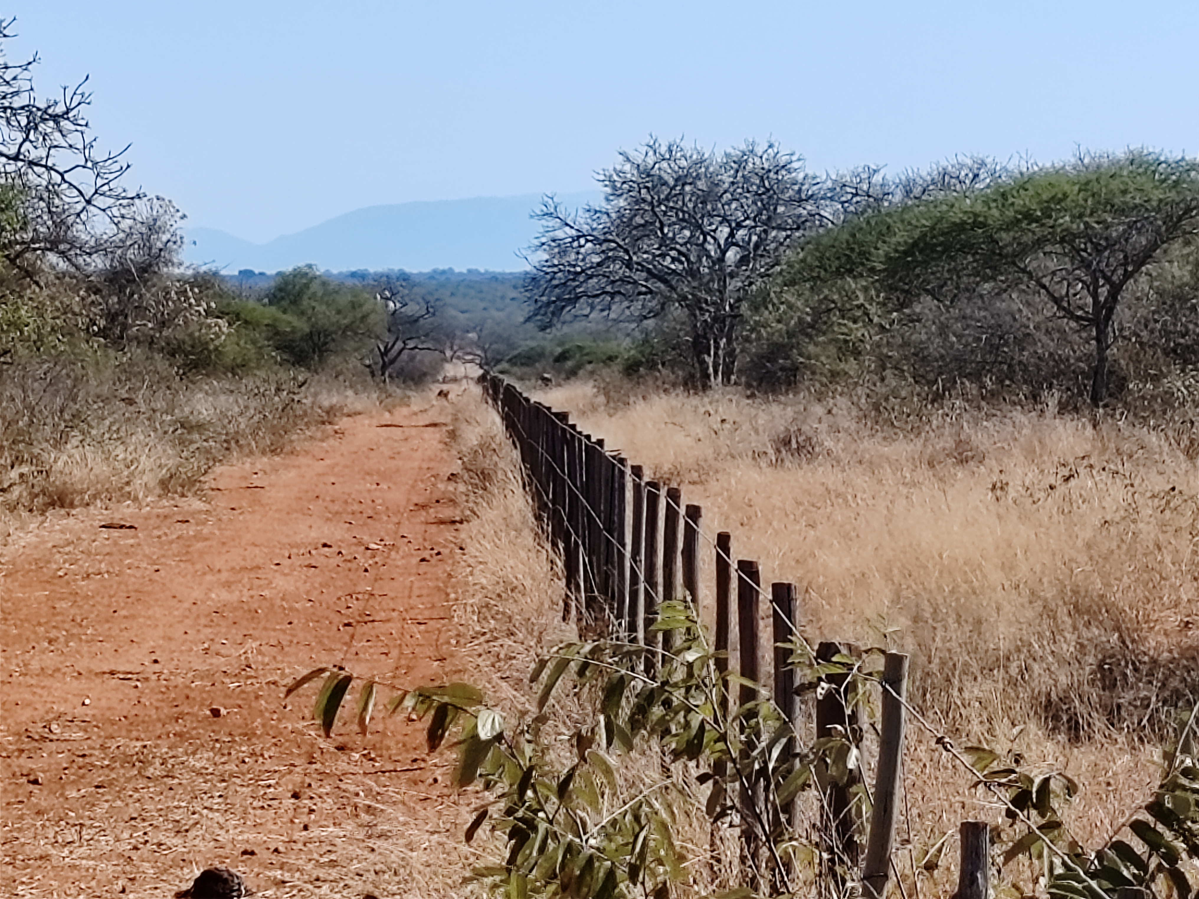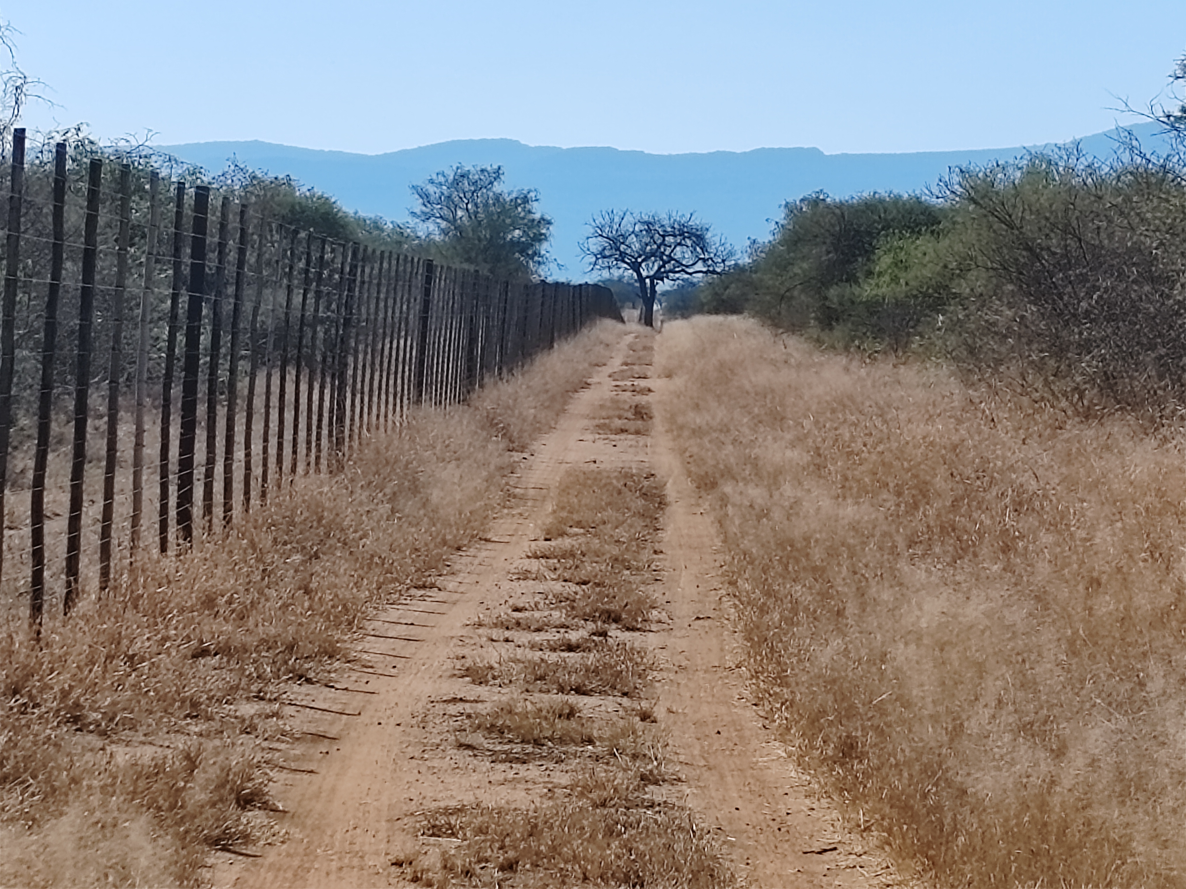 The perimeter Game fence is electrified, has 1.2 meter Jackal mesh and trees and bushes have been removed for a wide fire break.