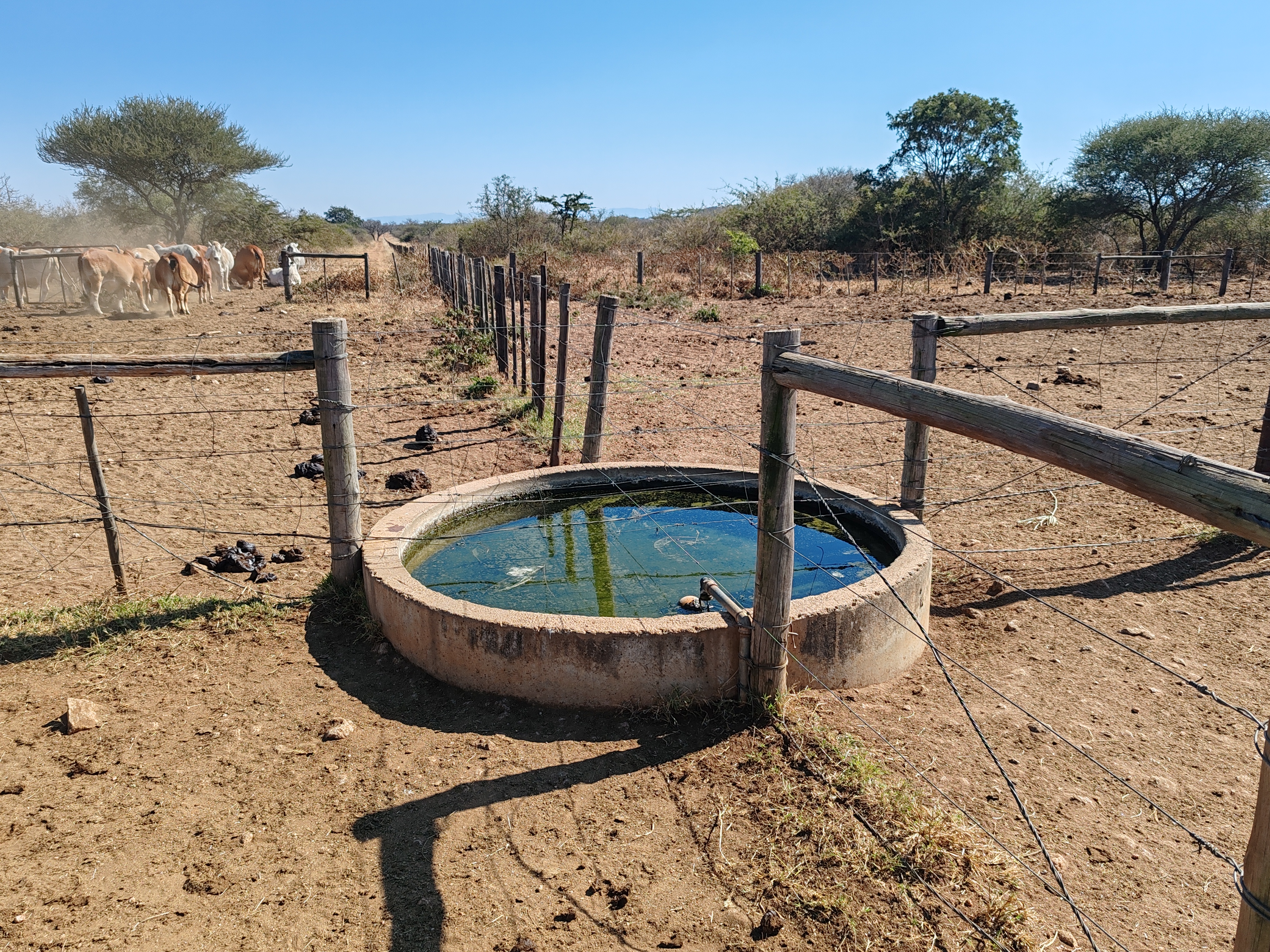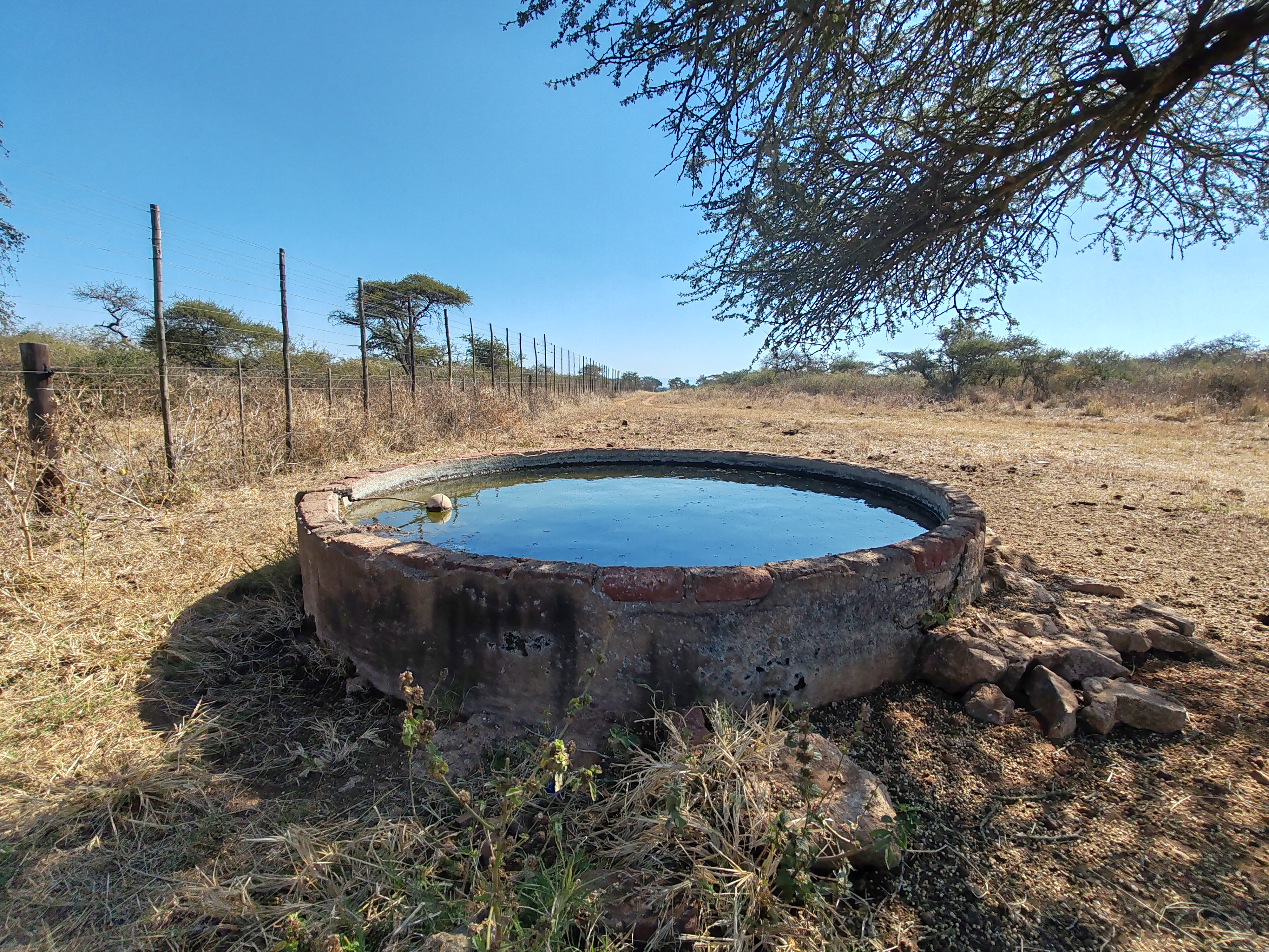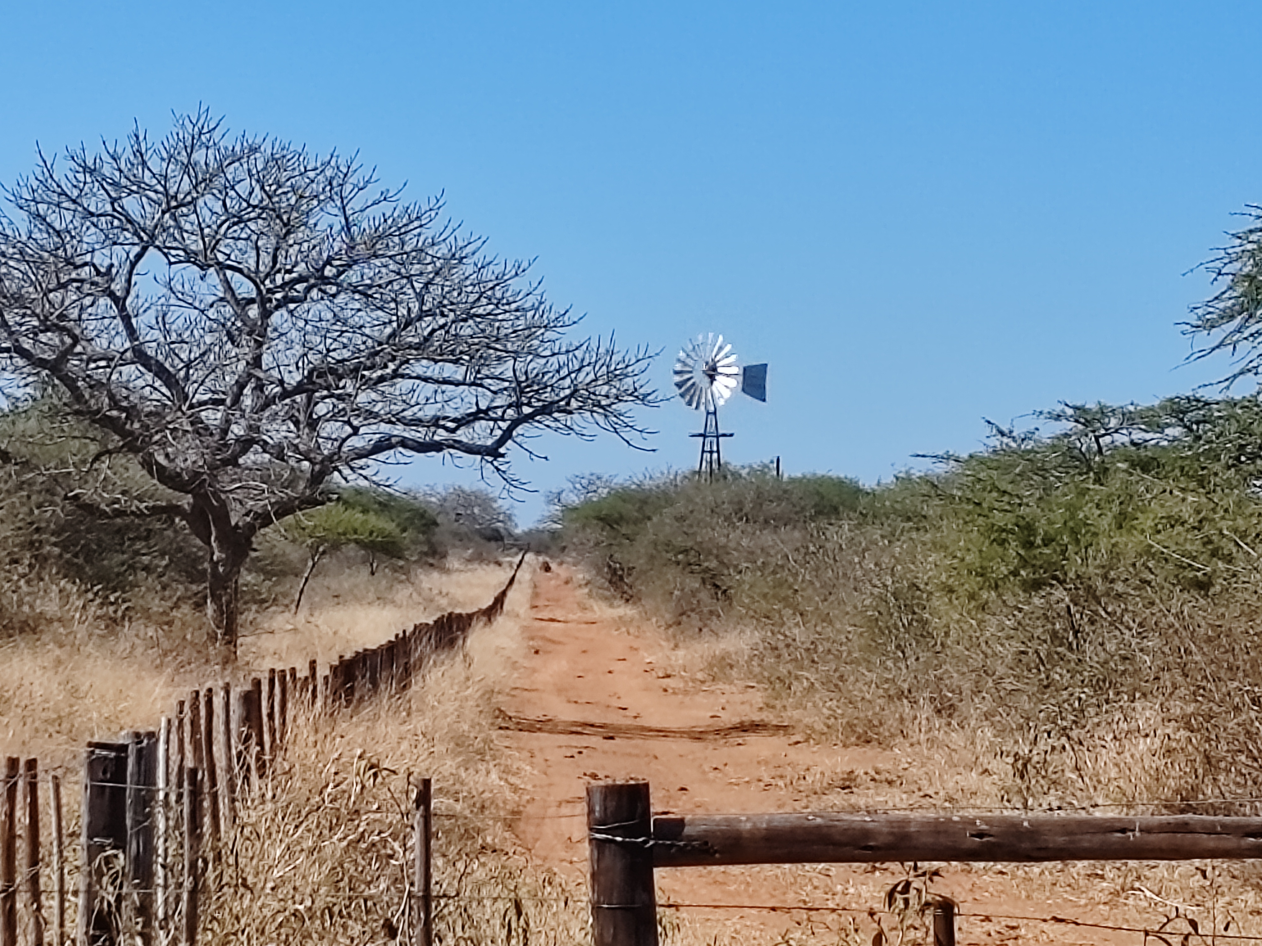 The smaller of the two properties(290 Hec) has two boreholes of which only one is utilized. At 22 000lt per hour this meets the animal and human needs most adequately. Nostalgically a wind pump silhouettes the horizon testimony to a bygone era. The larger property has three boreholes the one in use delivering 8 000lt per hour.