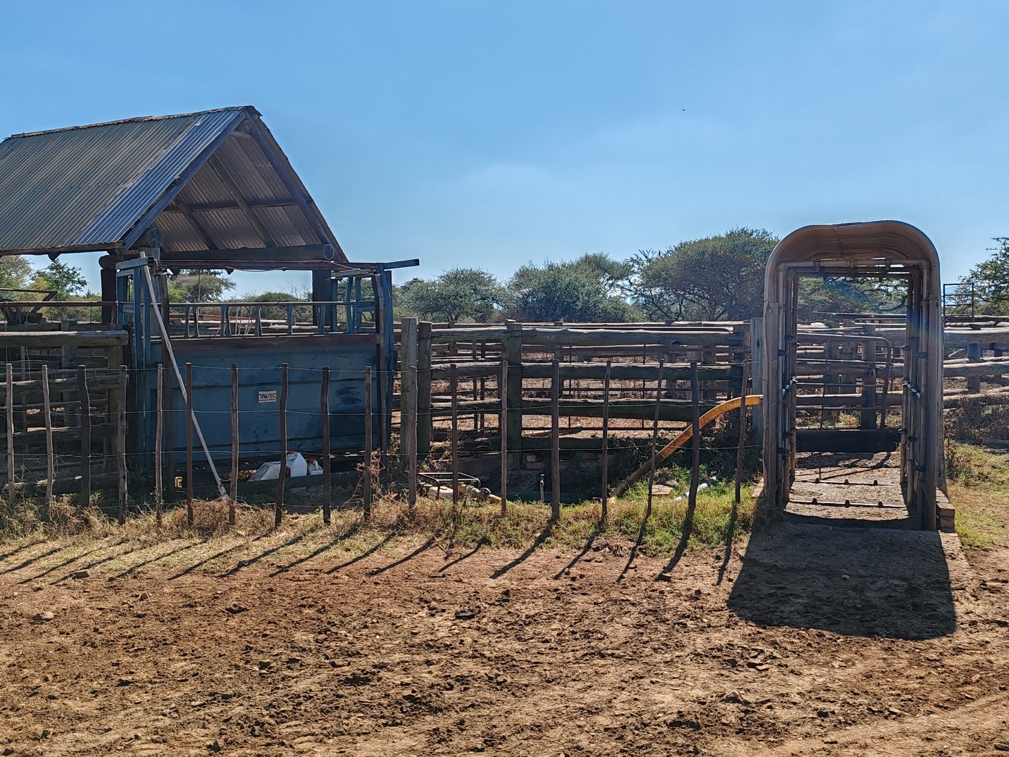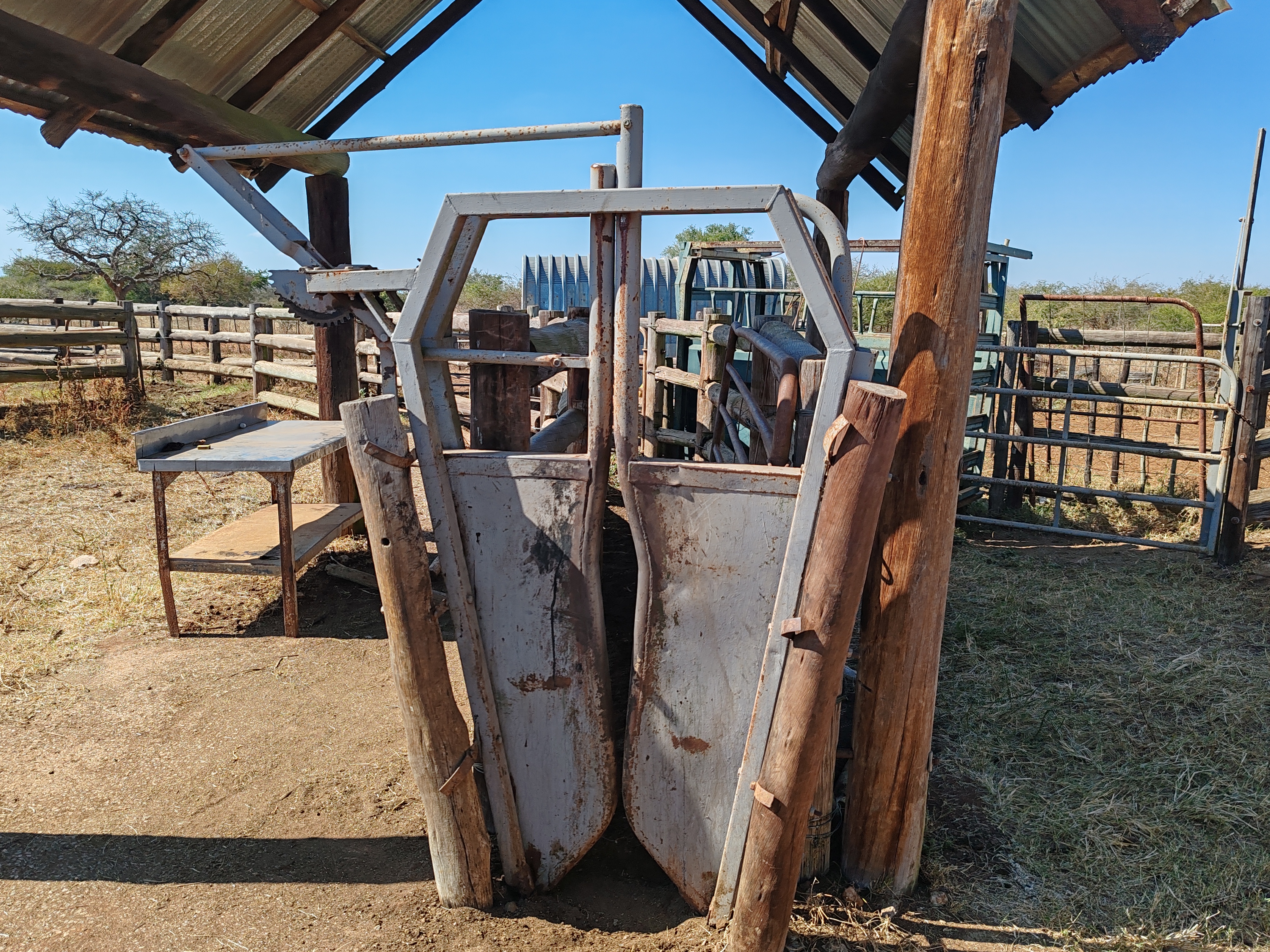 The same hub has a stout, well designed cattle kraal, with head clamp, weigh station, loading ramp and spray race.