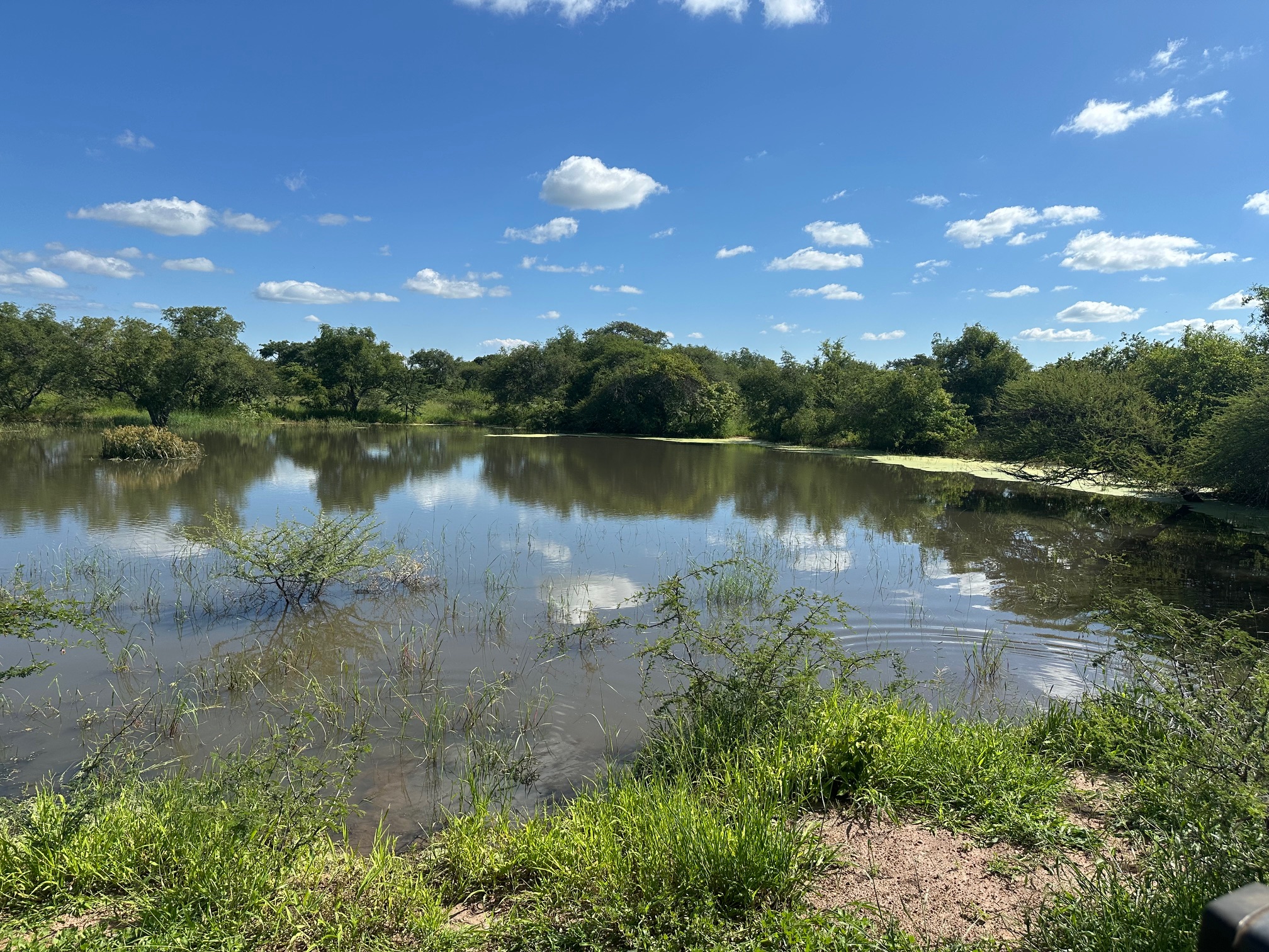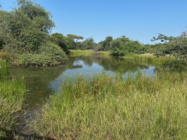 The farms have strong boreholes and in the rainy season there are pans and wet vlei's that retain moisture well into the dry season.