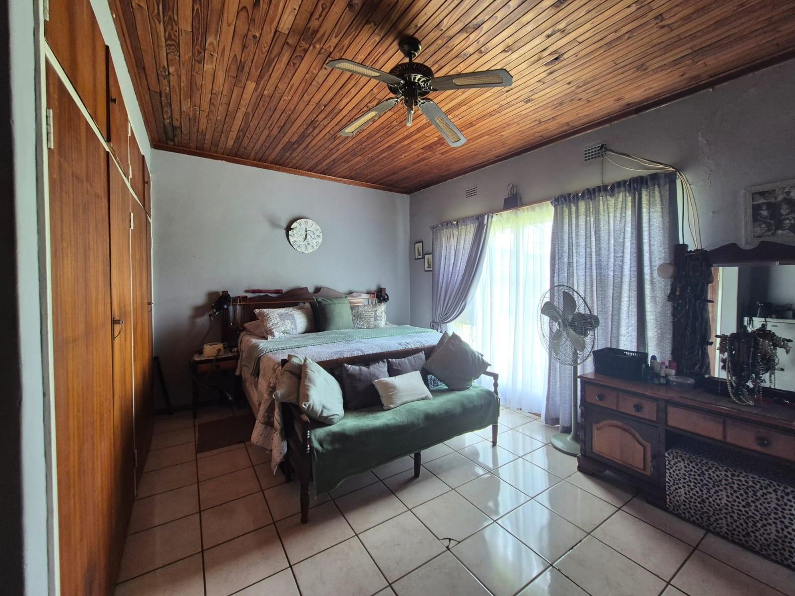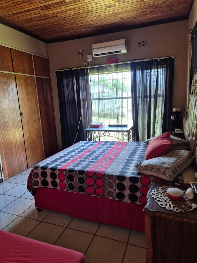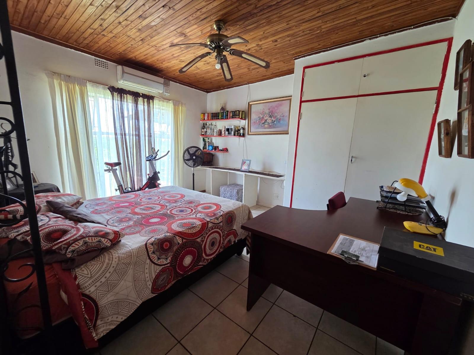 The home features four spacious bedrooms, all fitted with ceiling fans, built‐in cupboards, and large windows that flood each room with natural light. Three of the bedrooms have air conditioning, while the main bedroom includes a full en‐suite bathroom. A second full bathroom services the rest of the home.