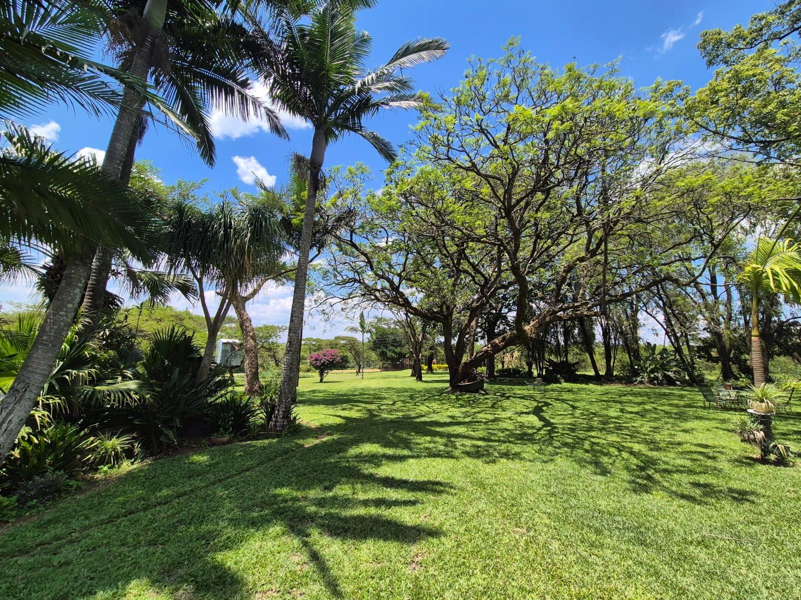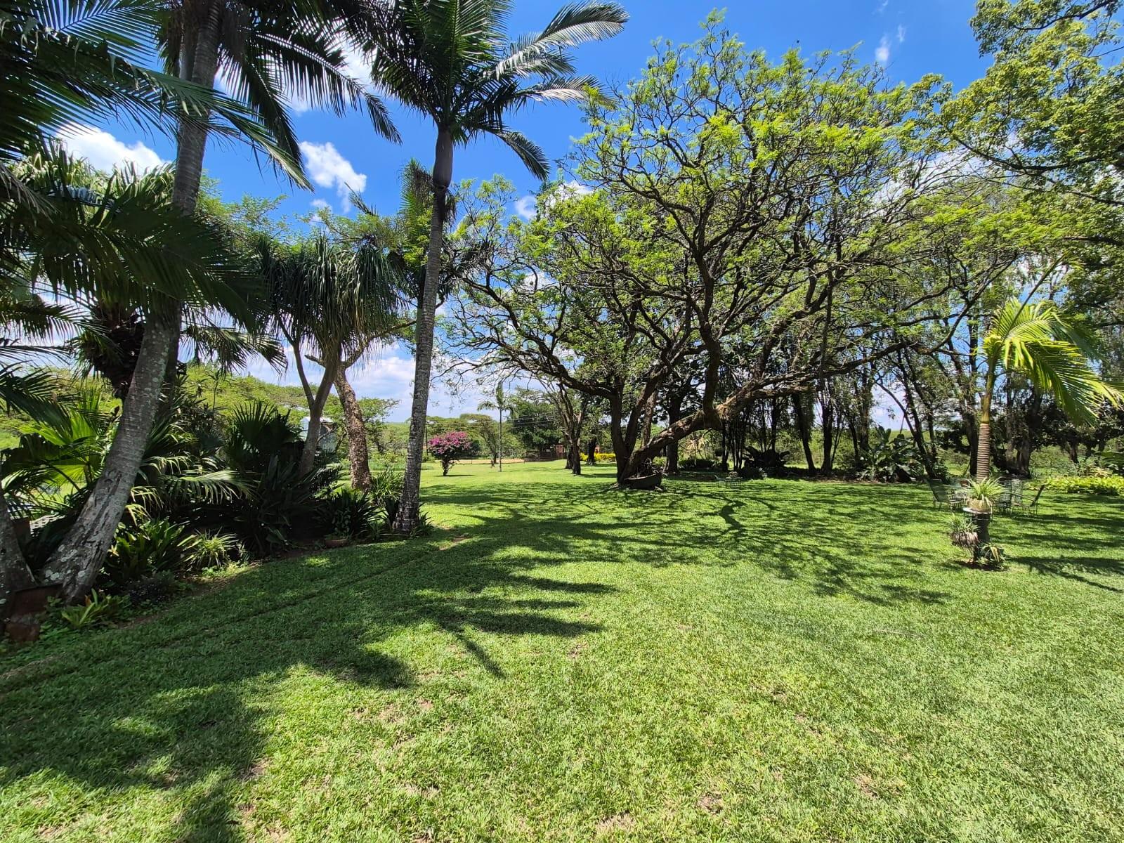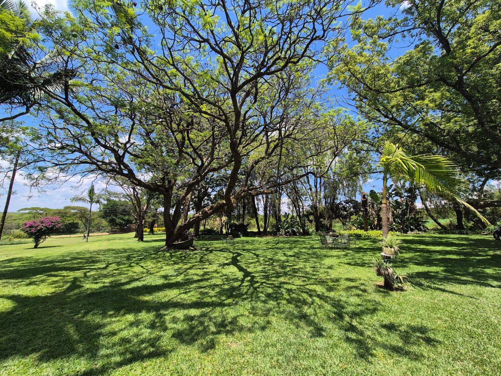 Outside, the garden is a standout feature: beautifully maintained lawns, mature trees, and landscaped greenery create a serene, park‐like setting. The property also includes a swimming pool, ample parking, and a borehole delivering approximately 2,500 litres per hour.