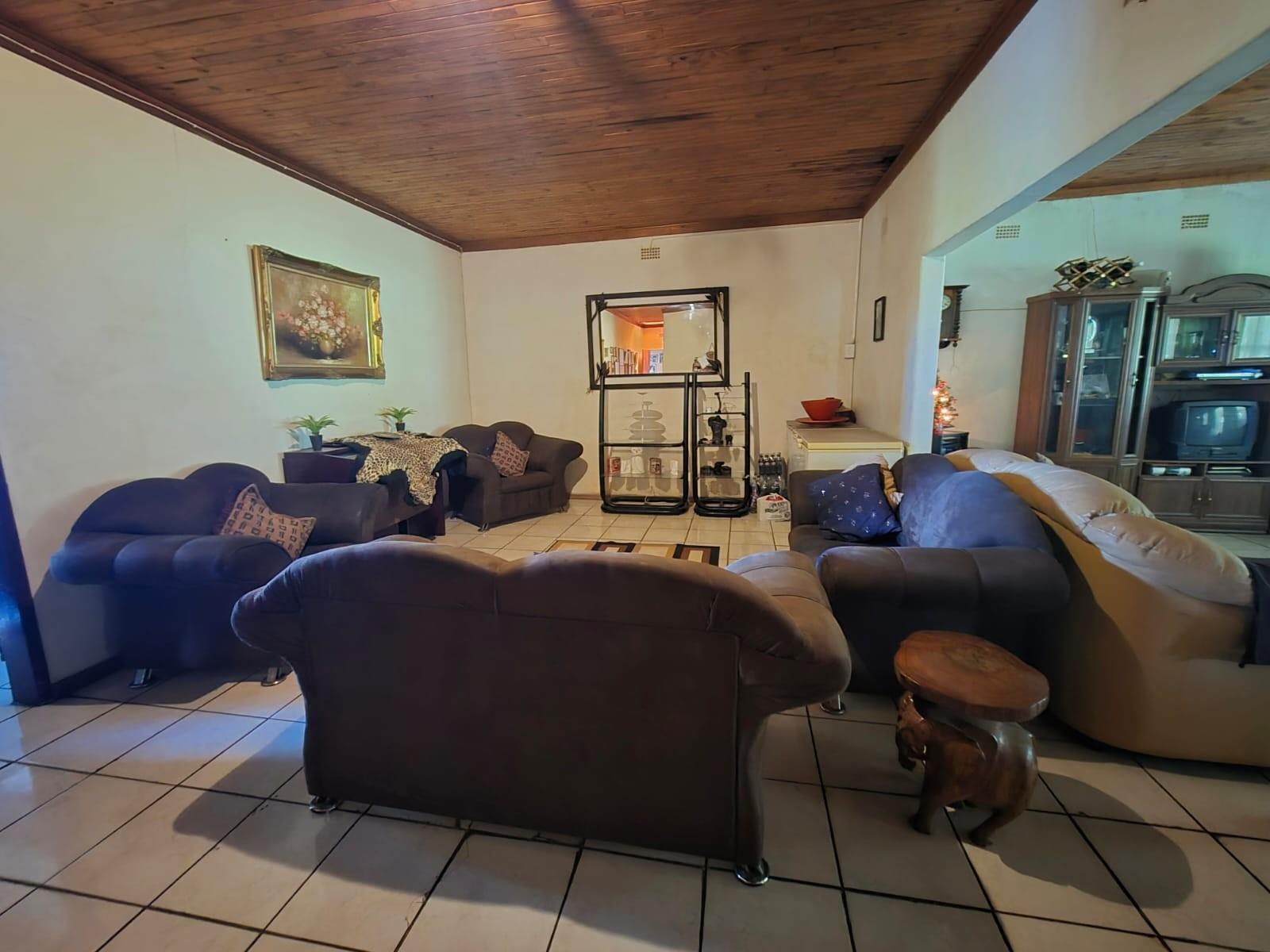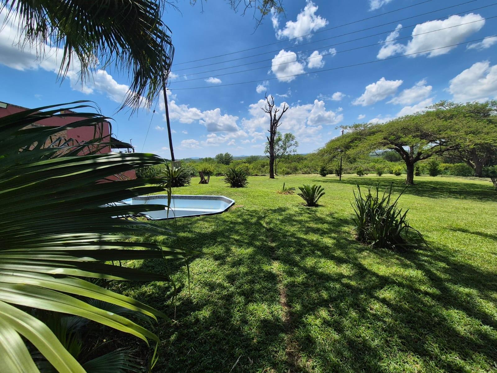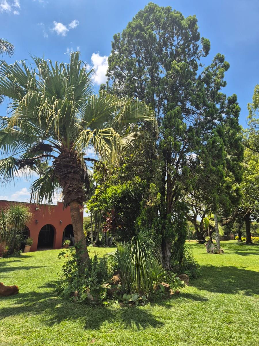 Outside, the garden is a standout feature: beautifully maintained lawns, mature trees, and landscaped greenery create a serene, park‐like setting. The property also includes a swimming pool, ample parking, and a borehole delivering approximately 2,500 litres per hour.