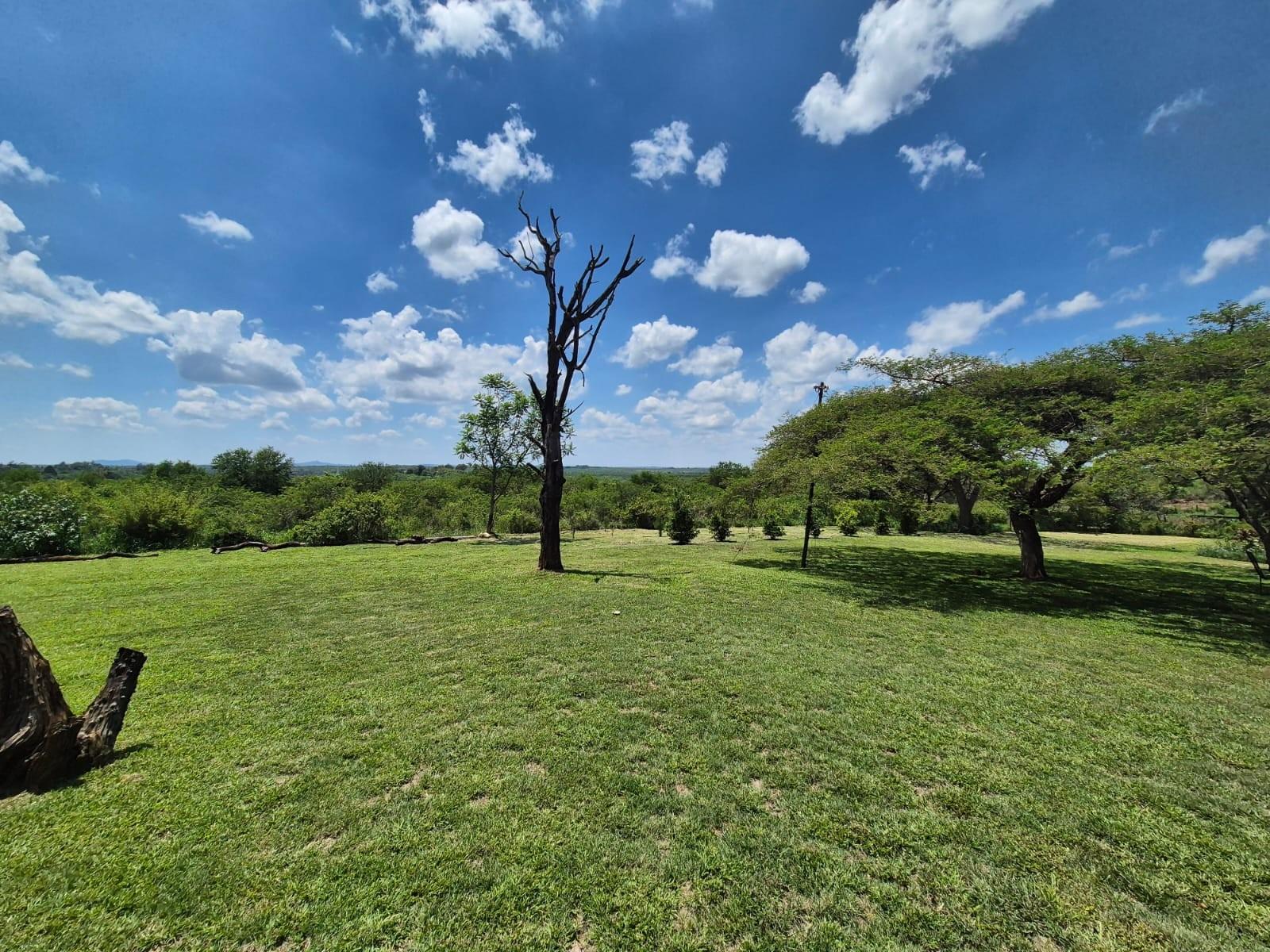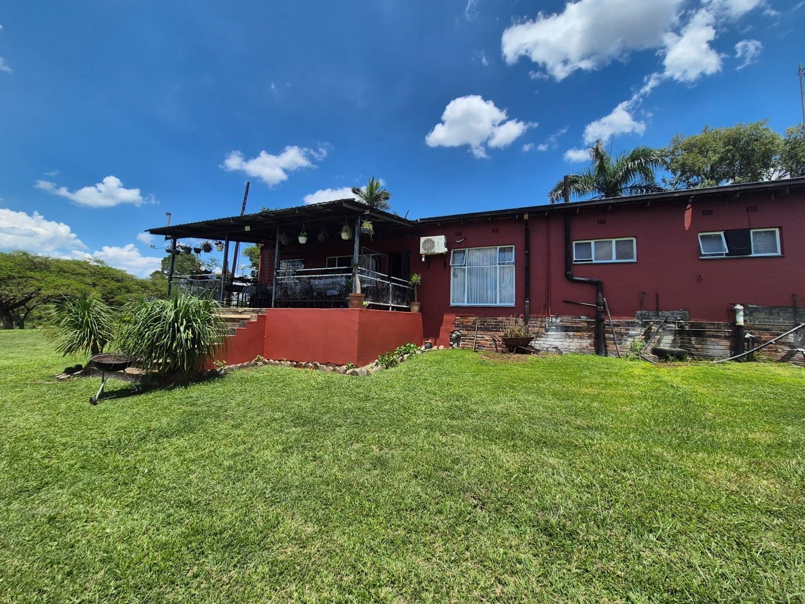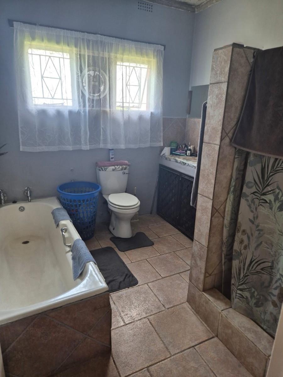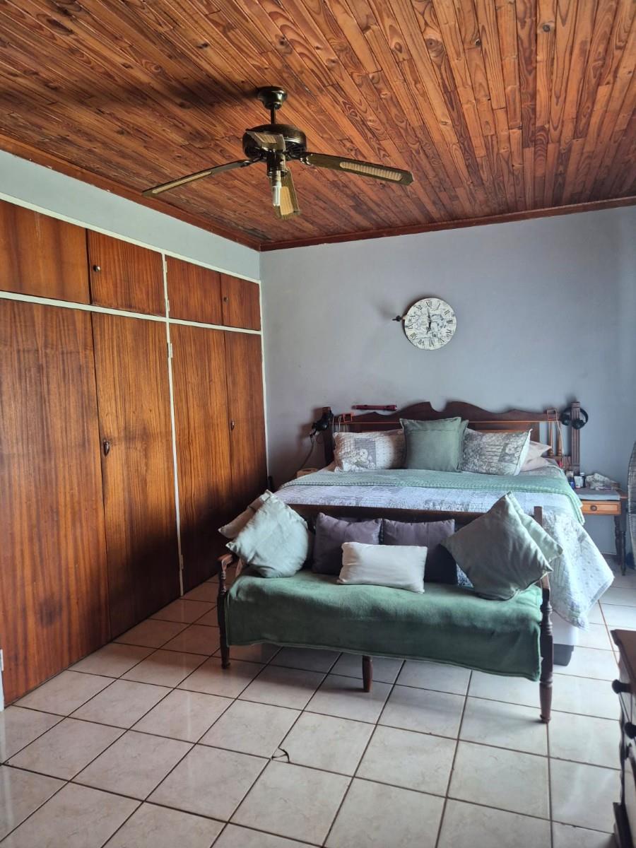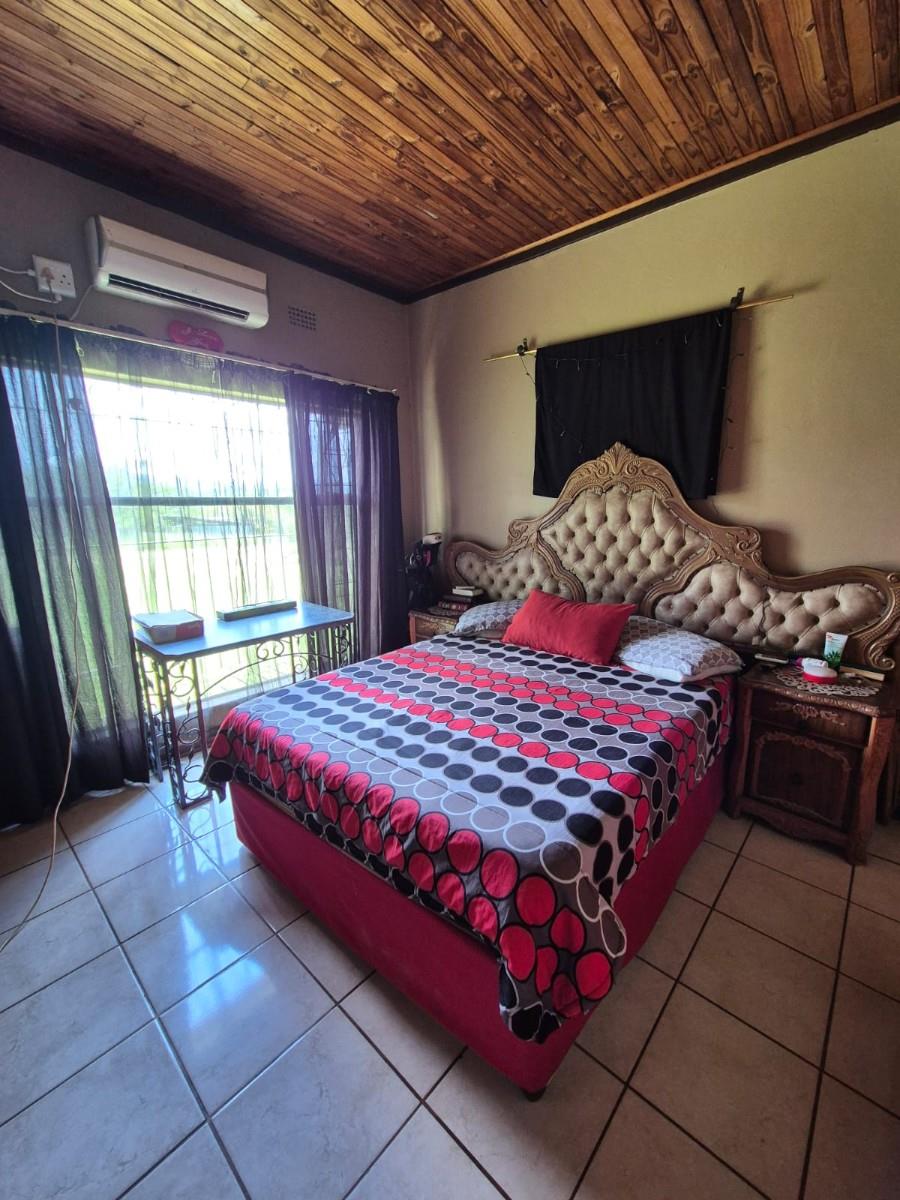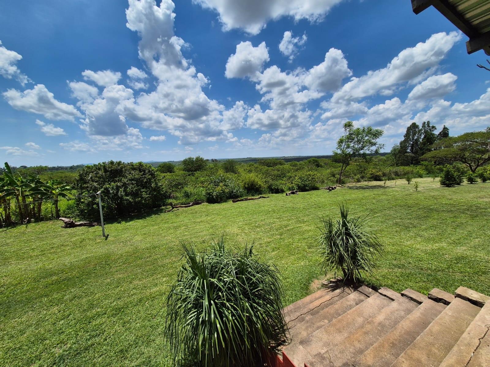The kitchen is designed for family living, offering built‐in cupboards, space for a six‐seater table, and direct access to a large scullery with room for multiple freezers or appliances. From the kitchen, doors open onto a spacious patio overlooking the land—an ideal spot for a big braai setup and outdoor seating for gatherings.