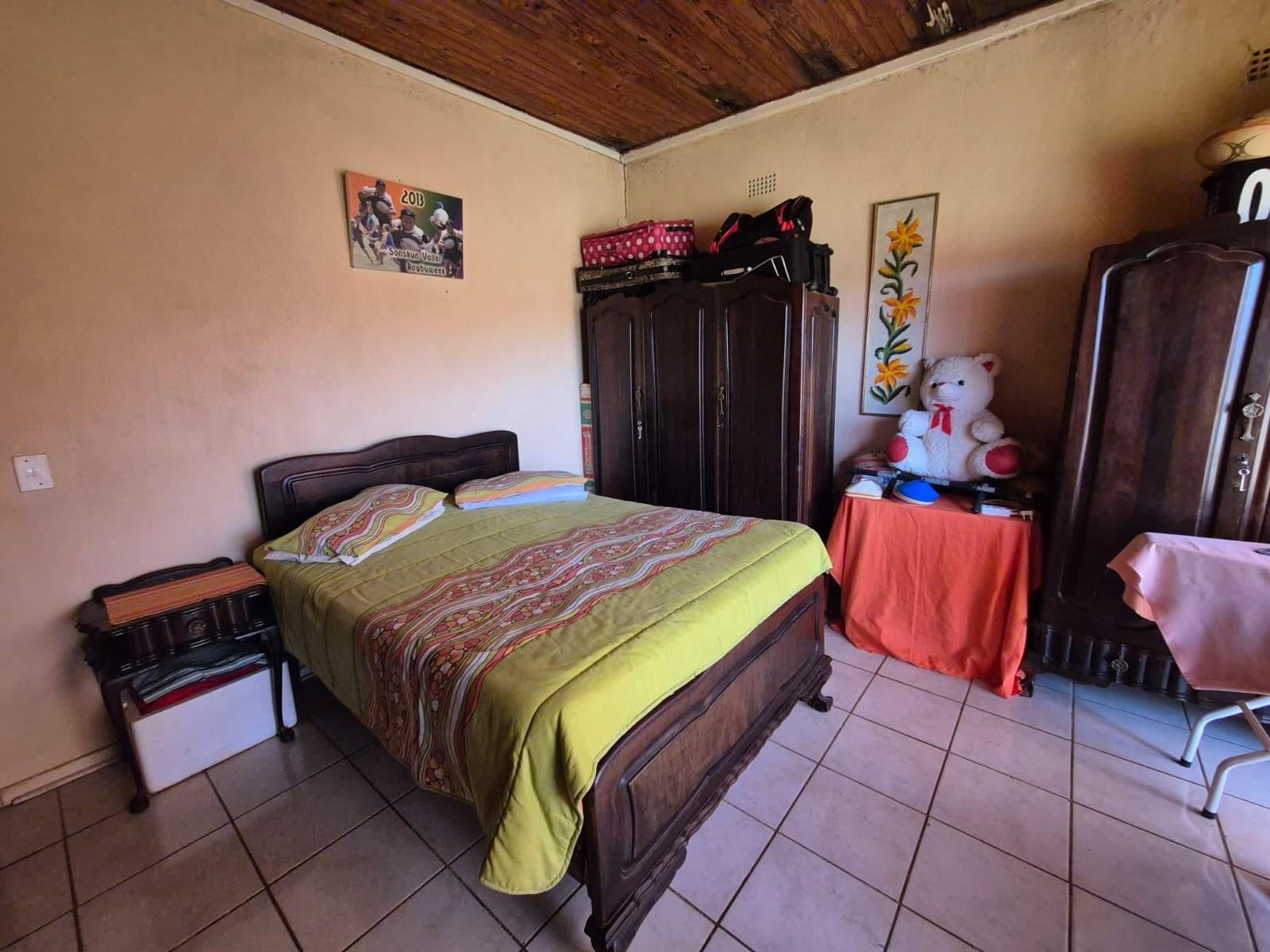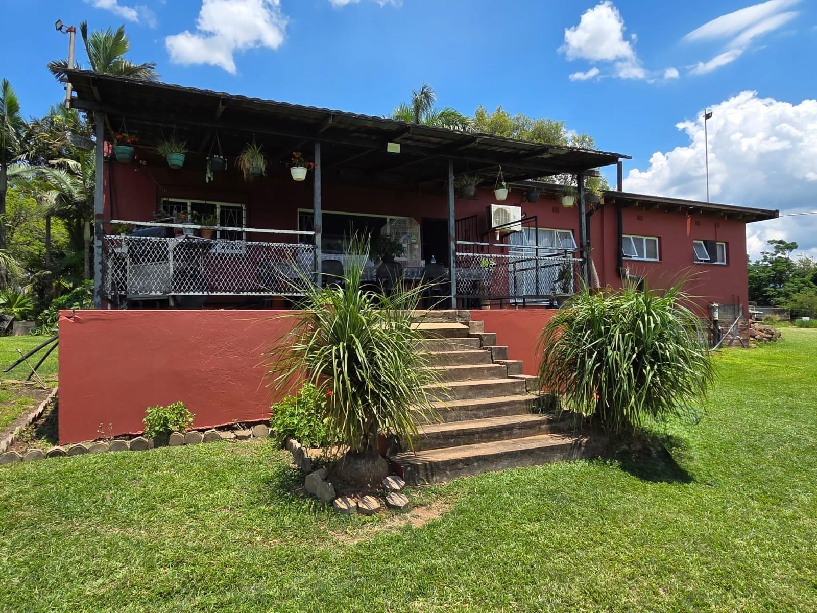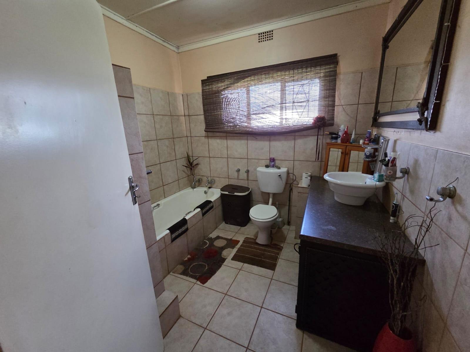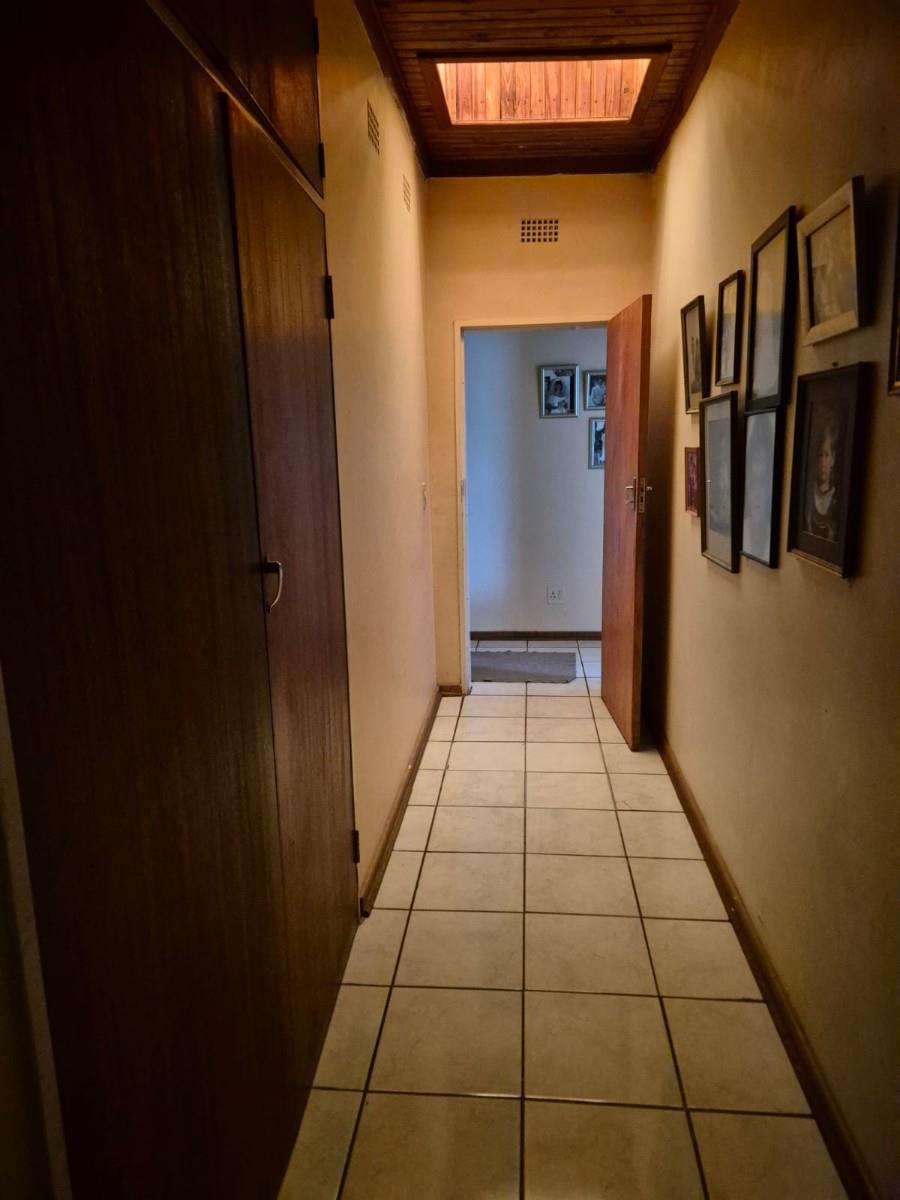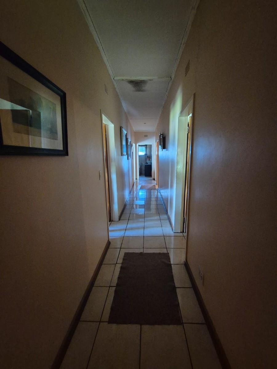The kitchen is designed for family living, offering built‐in cupboards, space for a six‐seater table, and direct access to a large scullery with room for multiple freezers or appliances. From the kitchen, doors open onto a spacious patio overlooking the land—an ideal spot for a big braai setup and outdoor seating for gatherings.