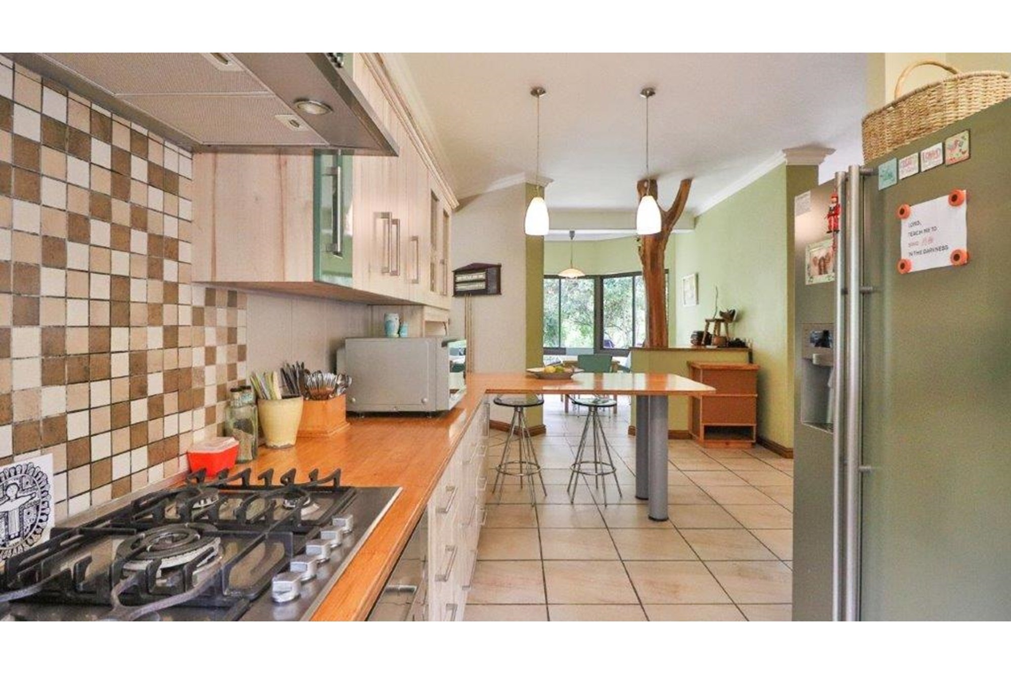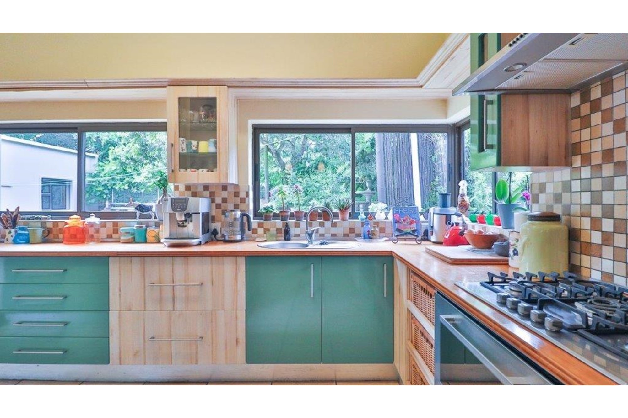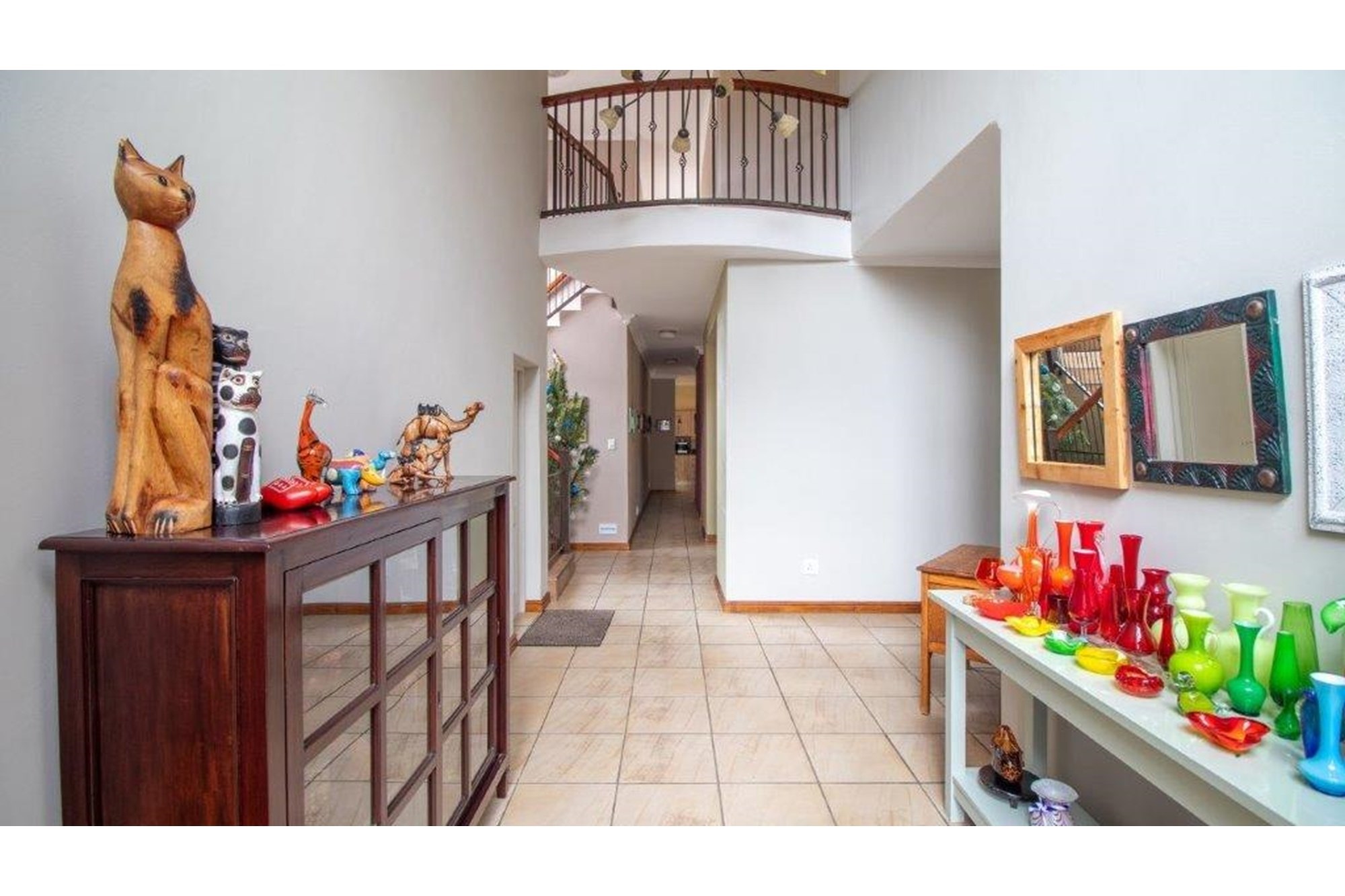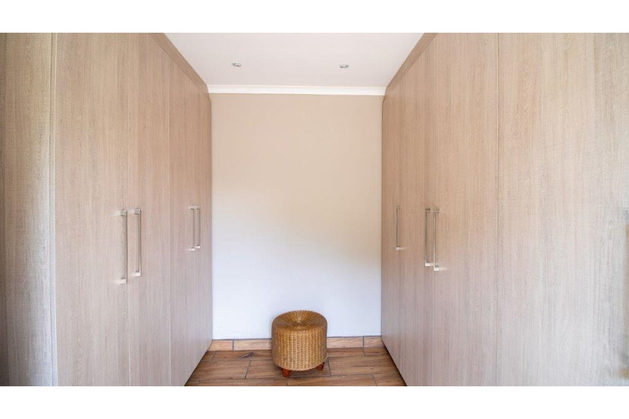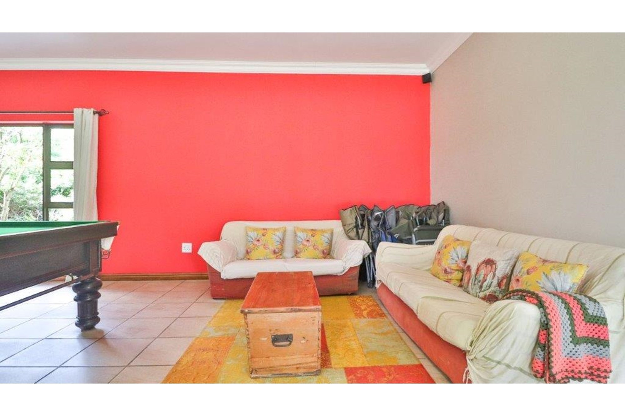Just outside the snooker room, you’ll find an enclosed braai area complete with a built-in braai and pizza oven, overlooking a stunning koi pond—the heart of the property. A wooden walkway meanders around the pond, with peaceful spots to sit and reflect under the trees