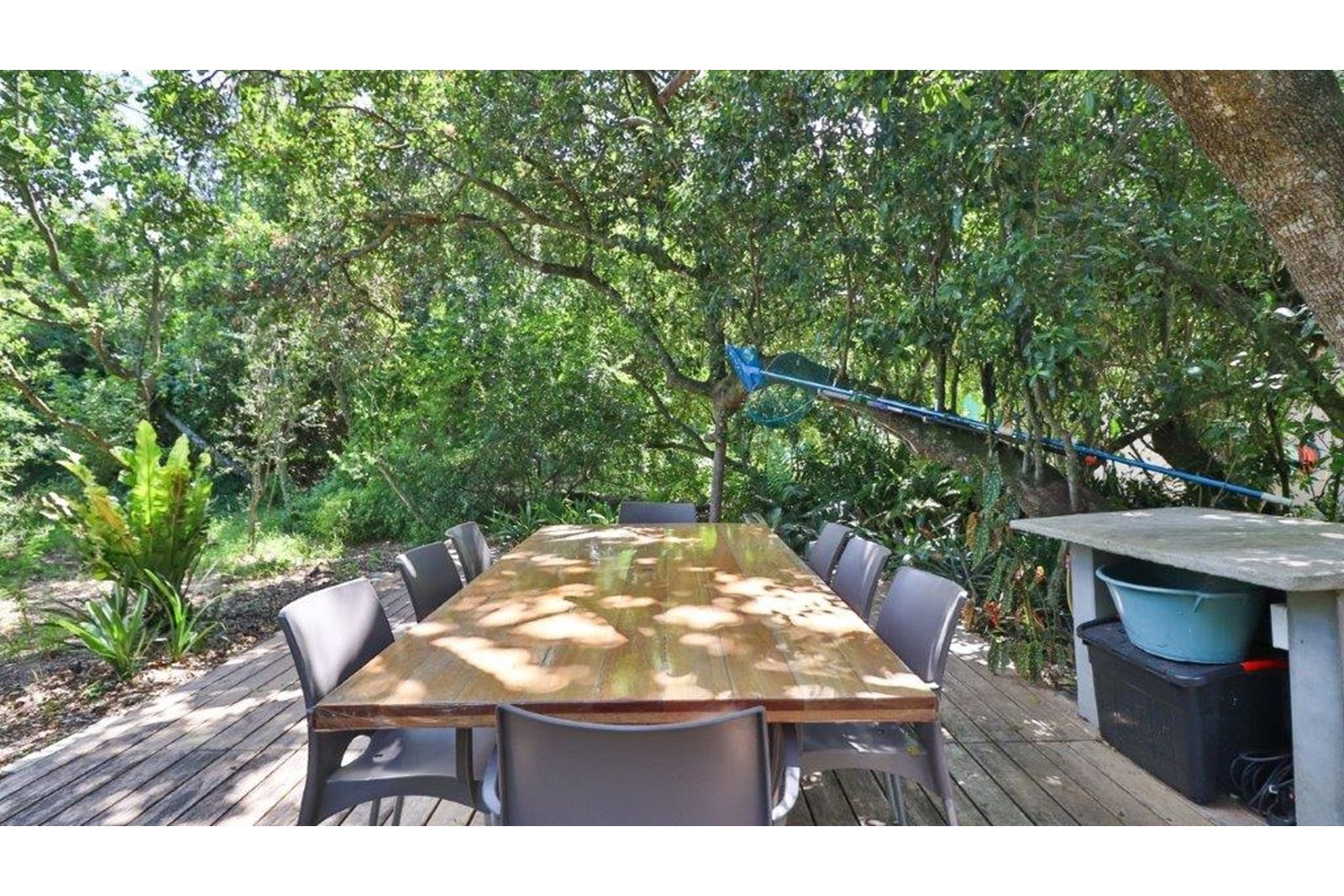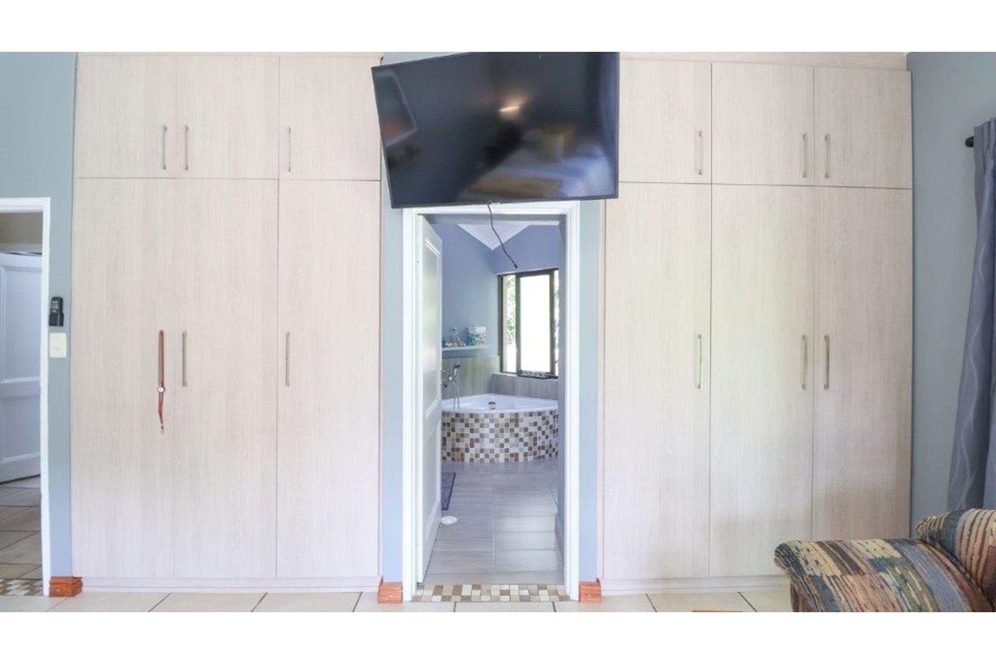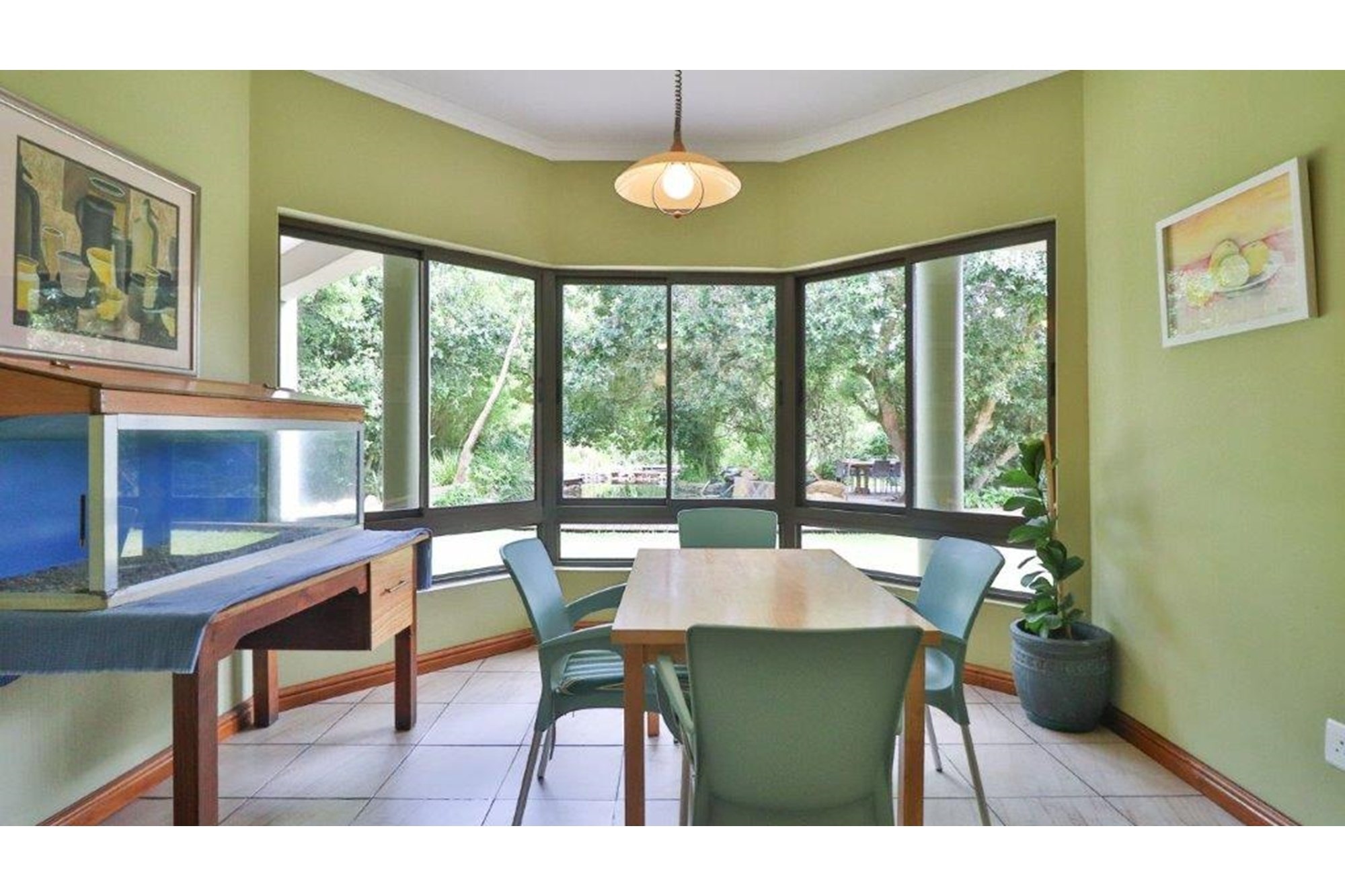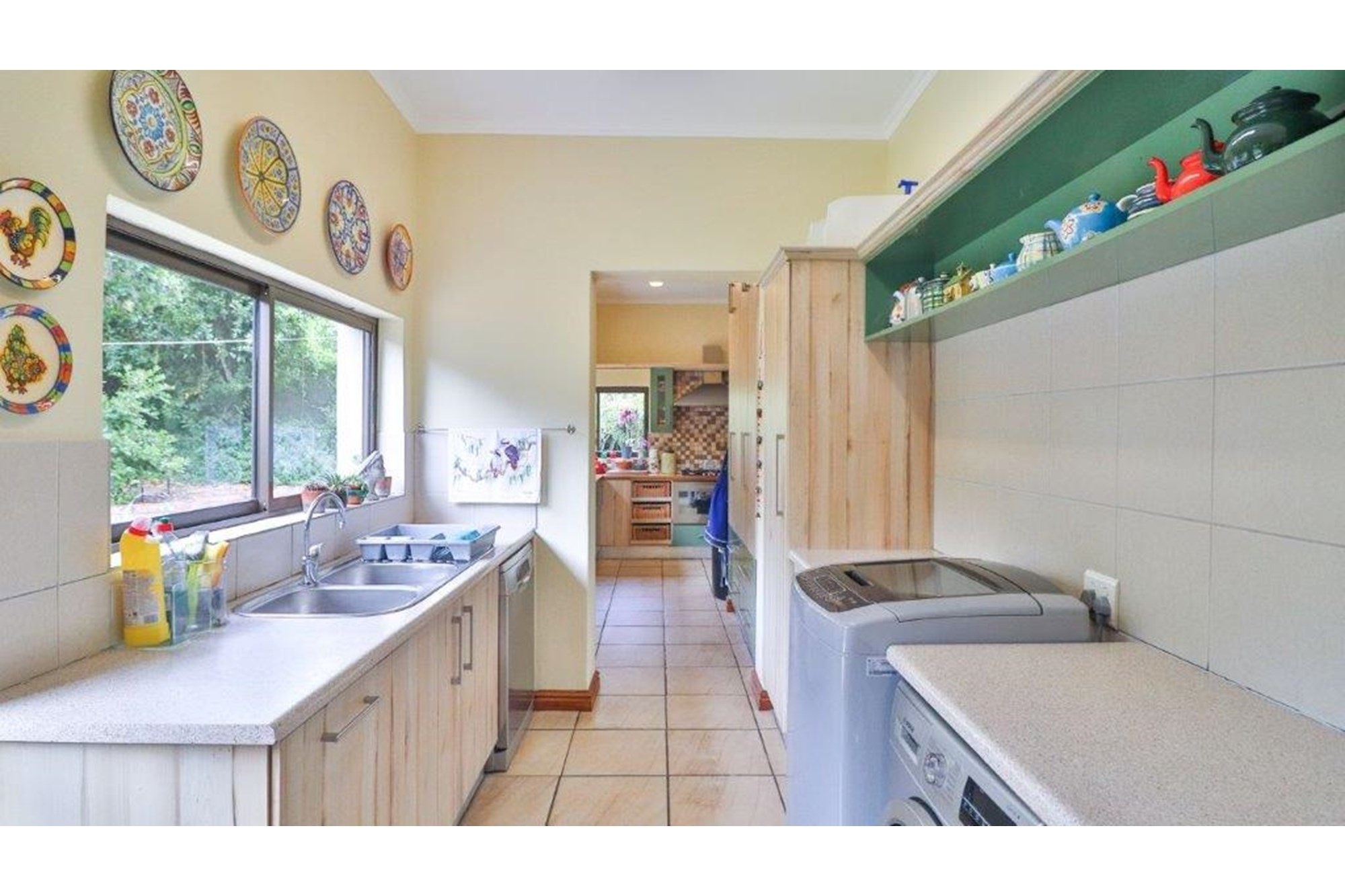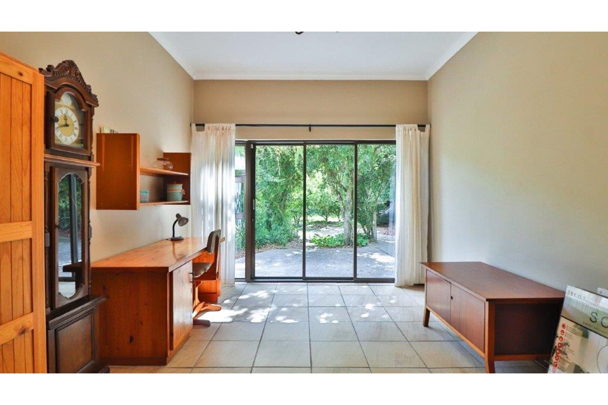 Just outside the snooker room, you’ll find an enclosed braai area complete with a built-in braai and pizza oven, overlooking a stunning koi pond—the heart of the property. A wooden walkway meanders around the pond, with peaceful spots to sit and reflect under the trees
