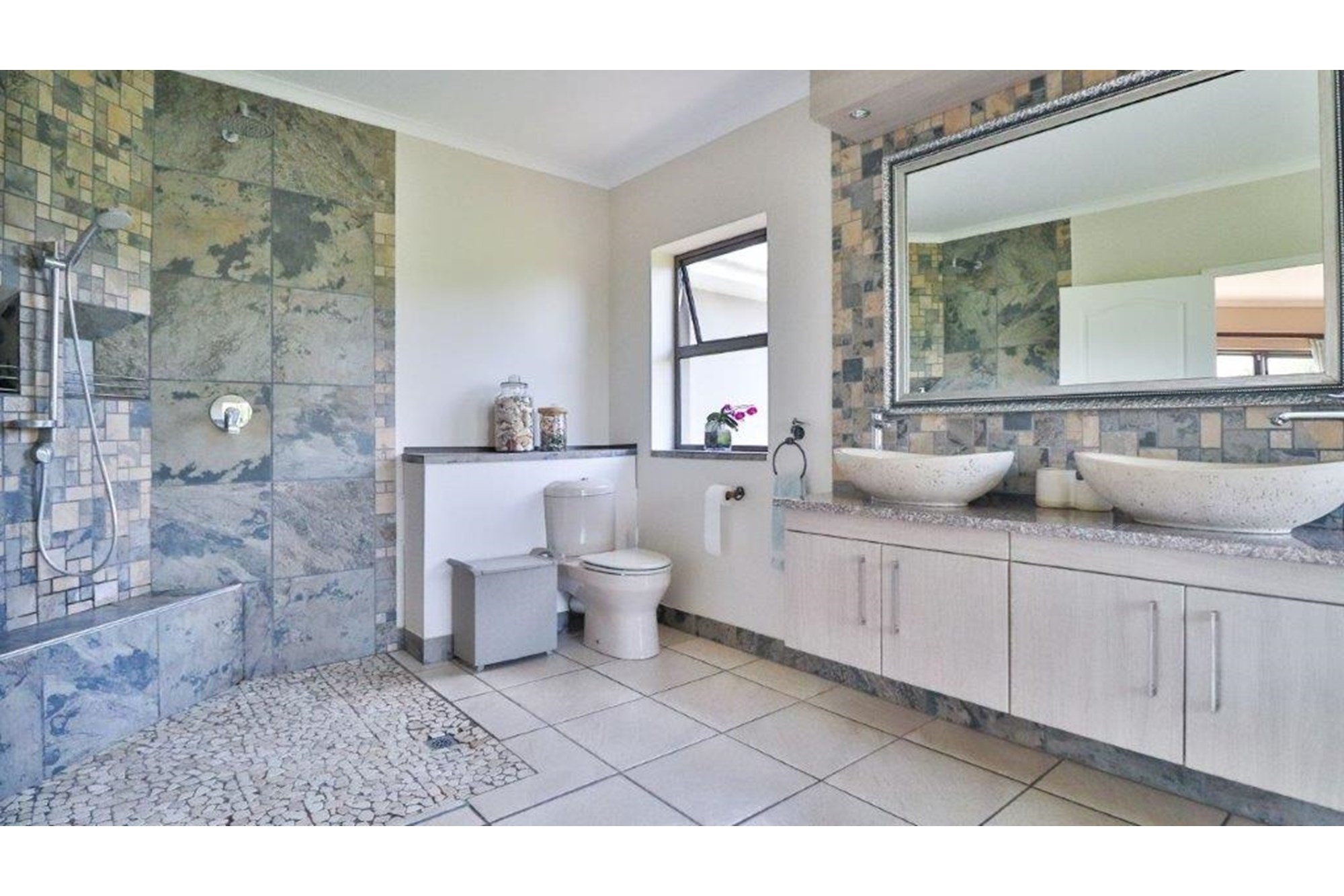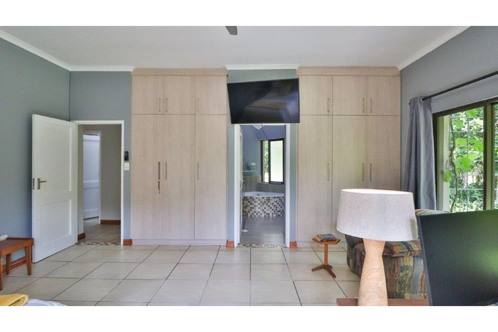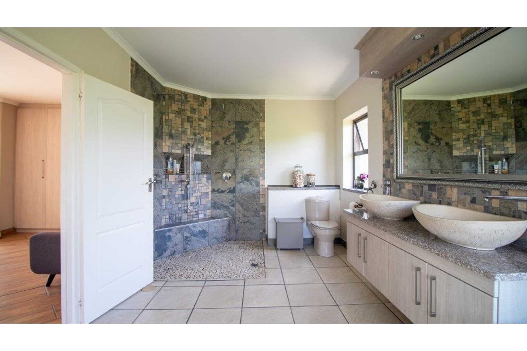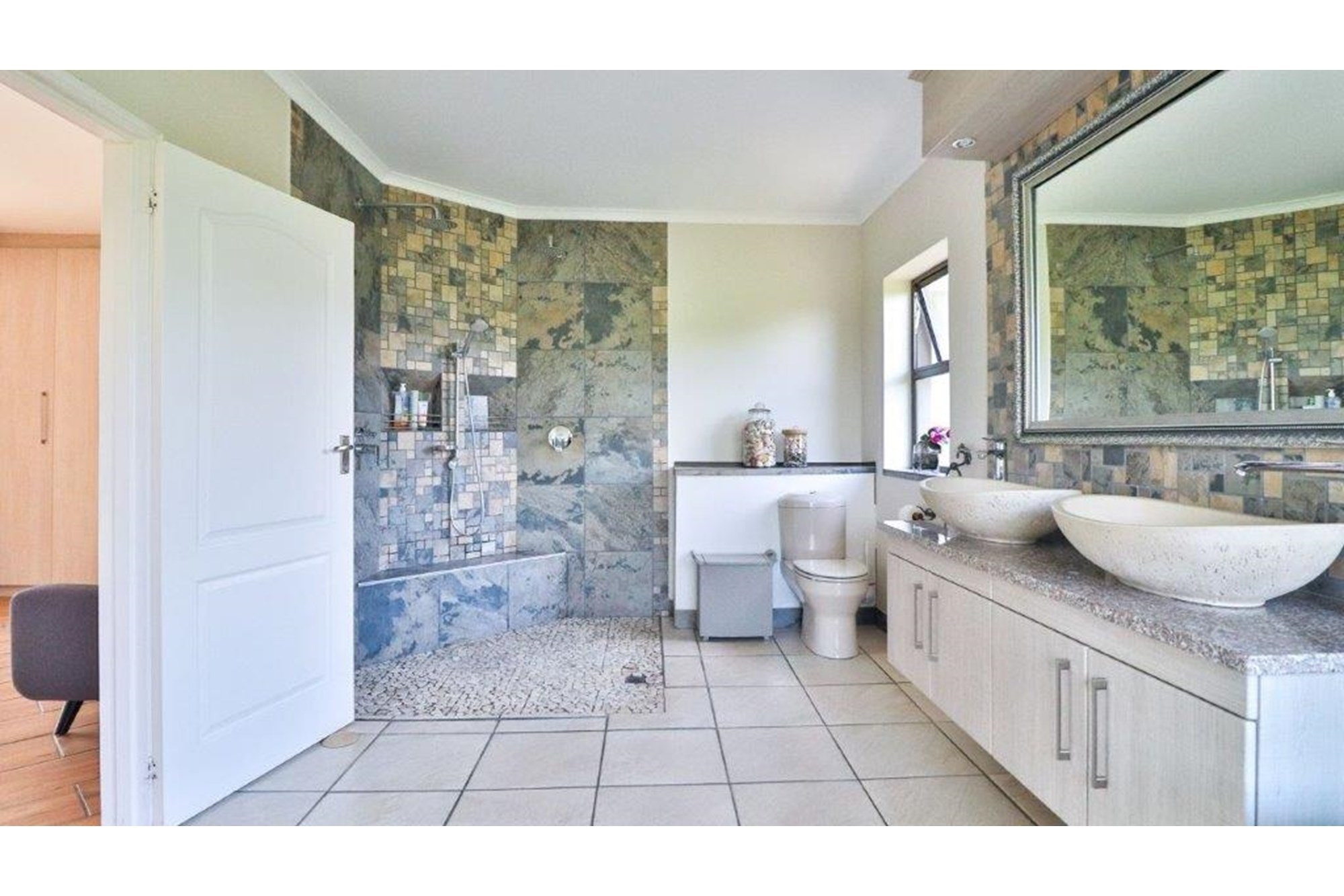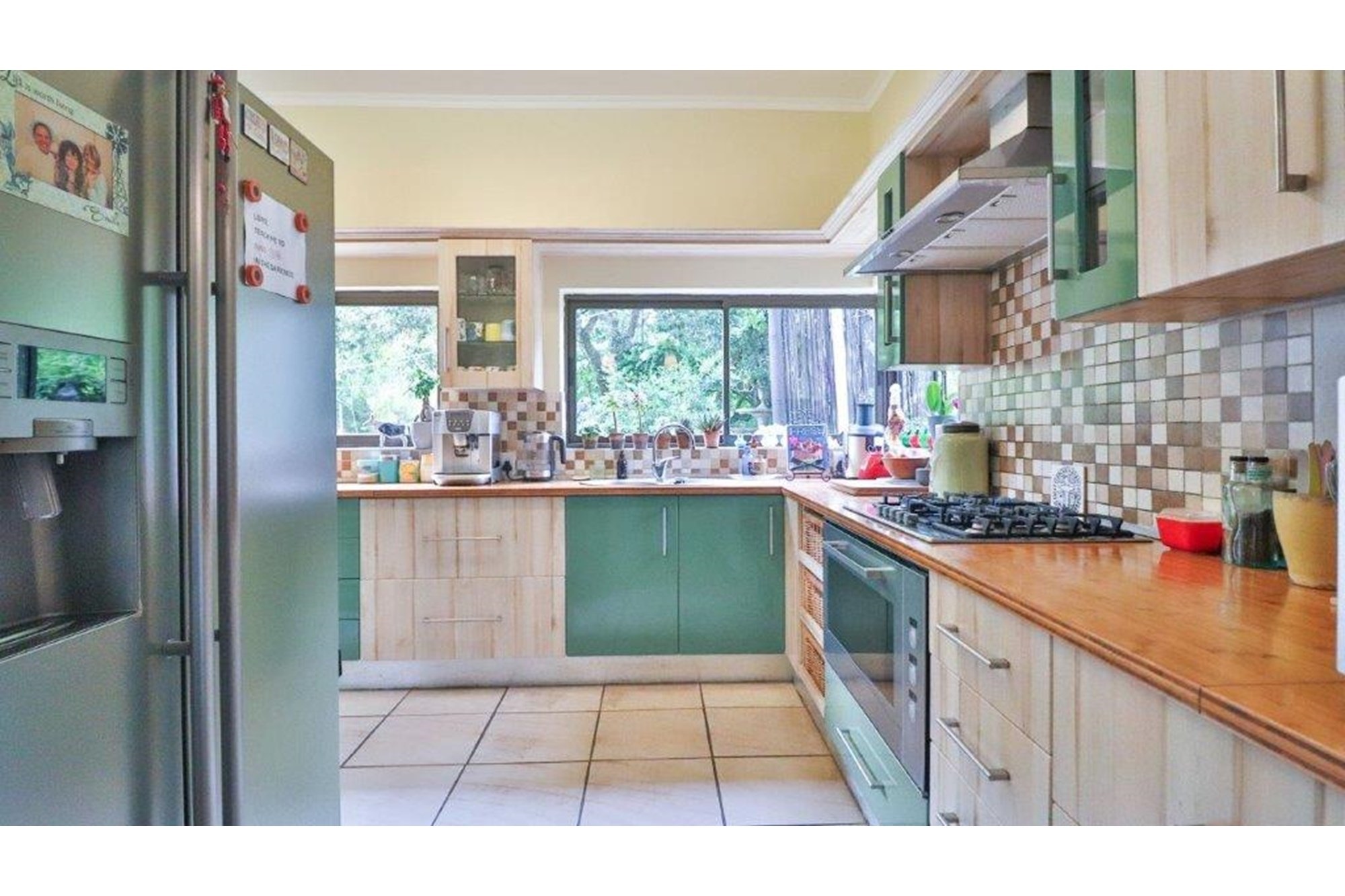 Just outside the snooker room, you’ll find an enclosed braai area complete with a built-in braai and pizza oven, overlooking a stunning koi pond—the heart of the property. A wooden walkway meanders around the pond, with peaceful spots to sit and reflect under the trees