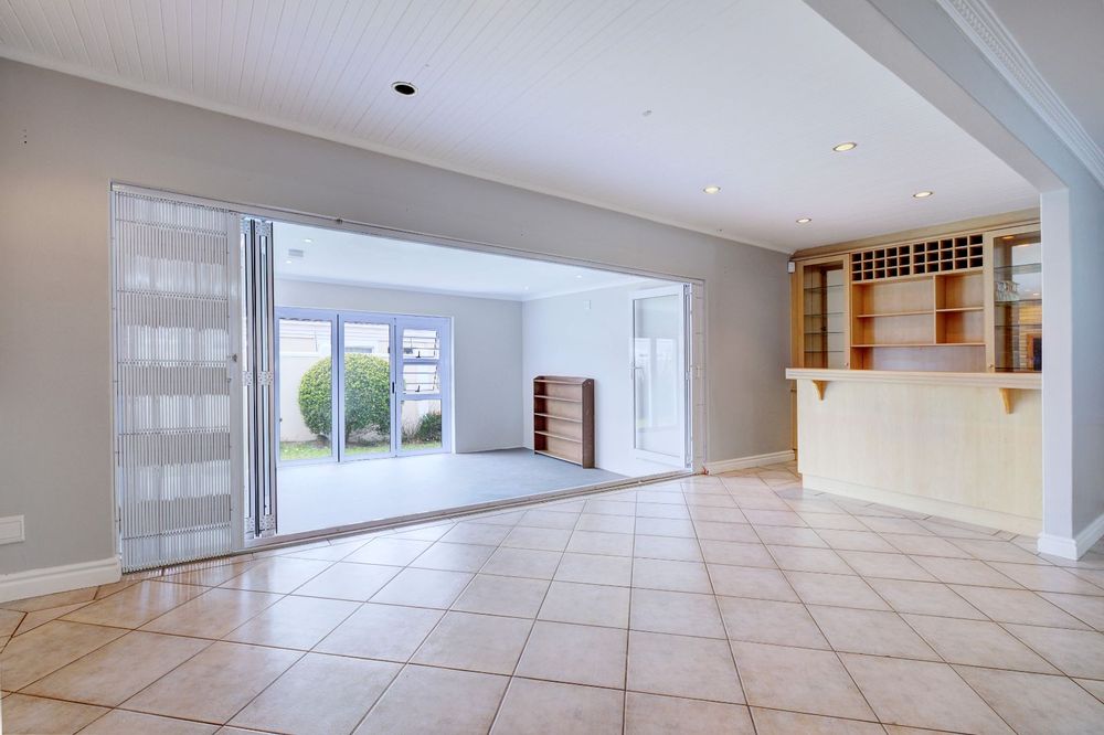 The heart of the home is the TV room/dining room/entertaiment area, complete with a built-in braai and bar, perfect for family gatherings and entertainment. This room's stacking doors lead out to a multifunctional undercover stoep, enclosed with stacking doors, providing a versatile space that can be used as a playroom, office or extended entertainment area.