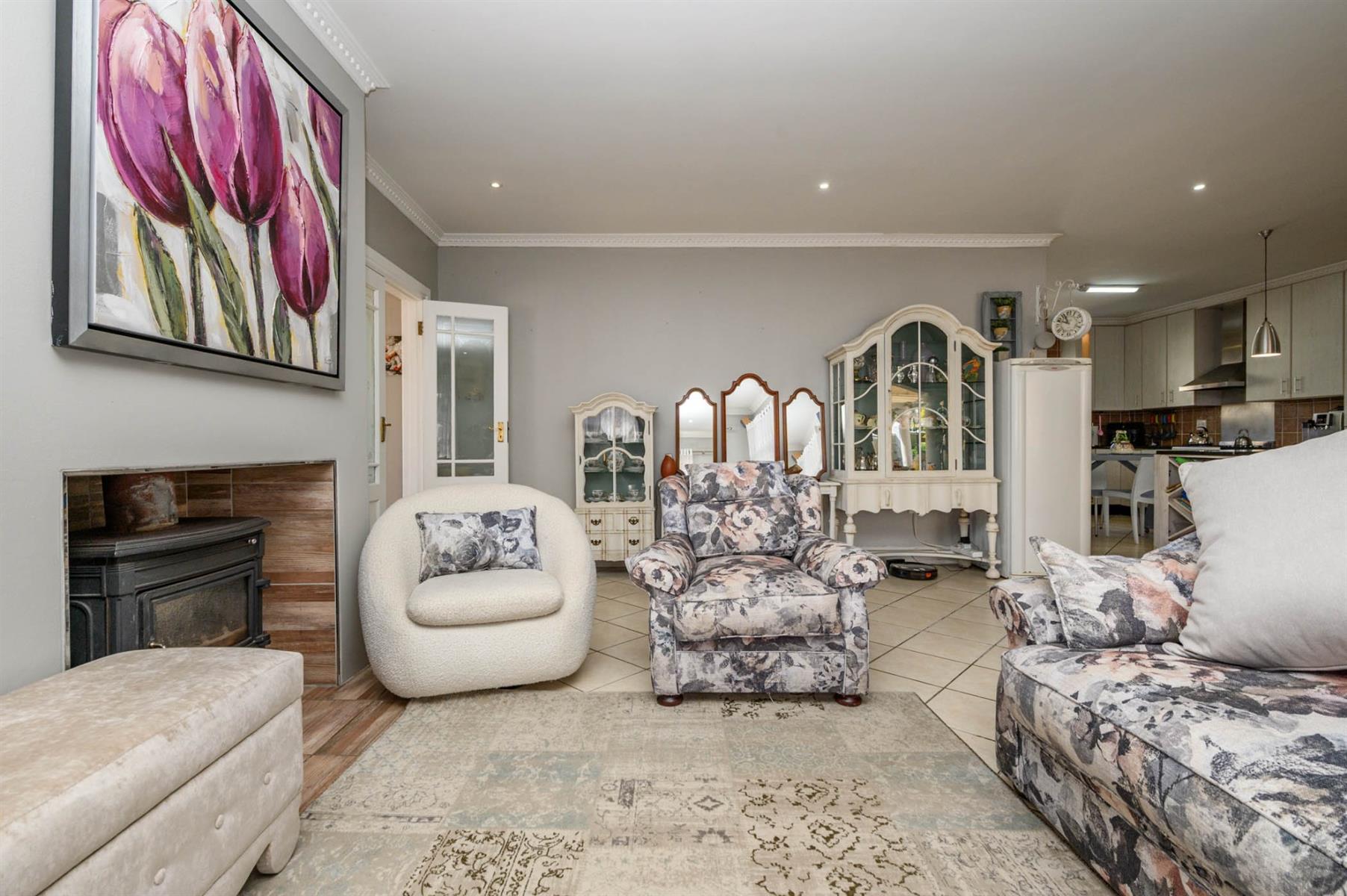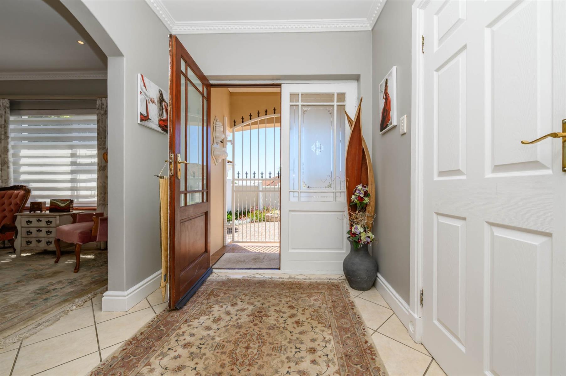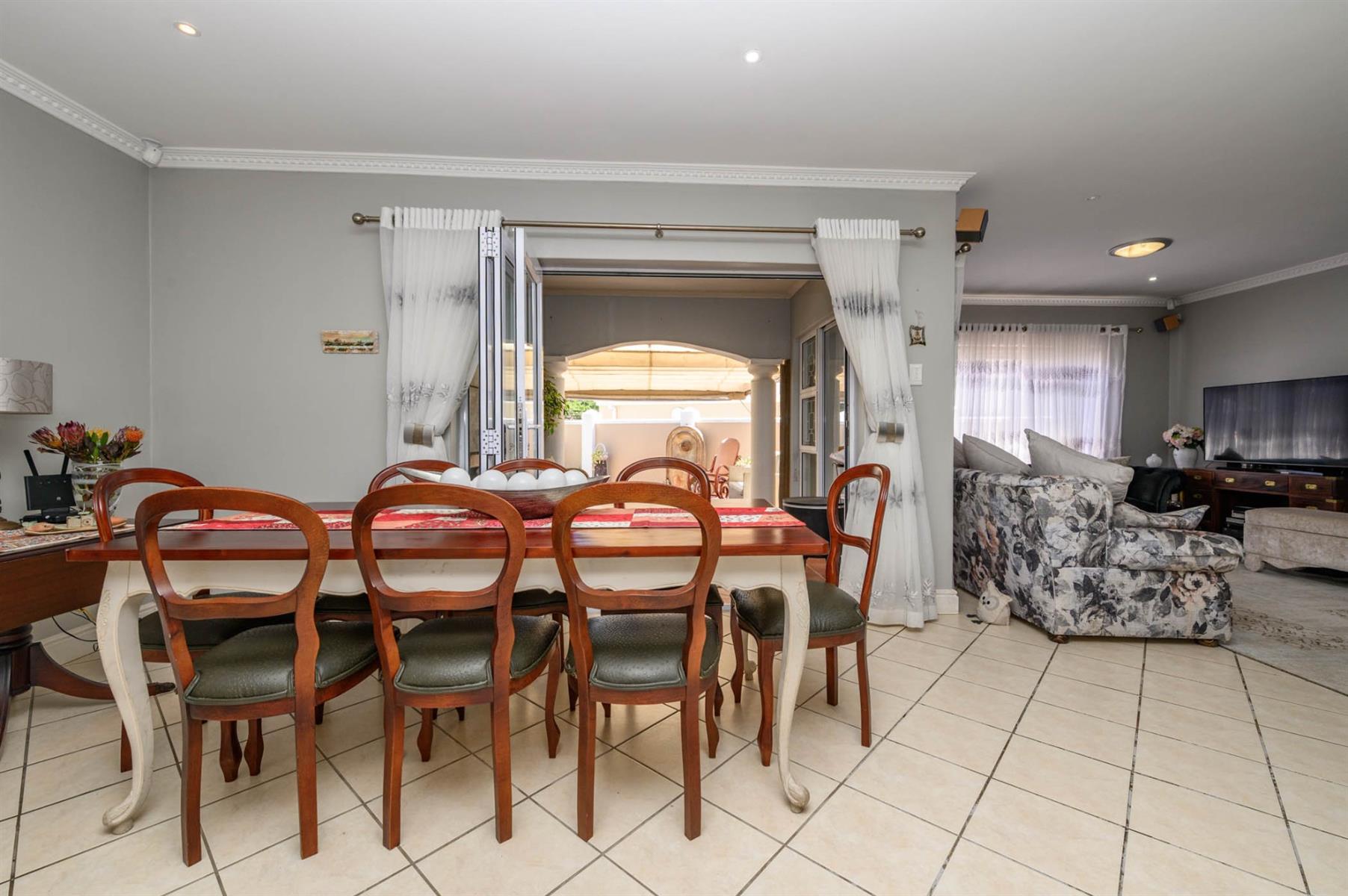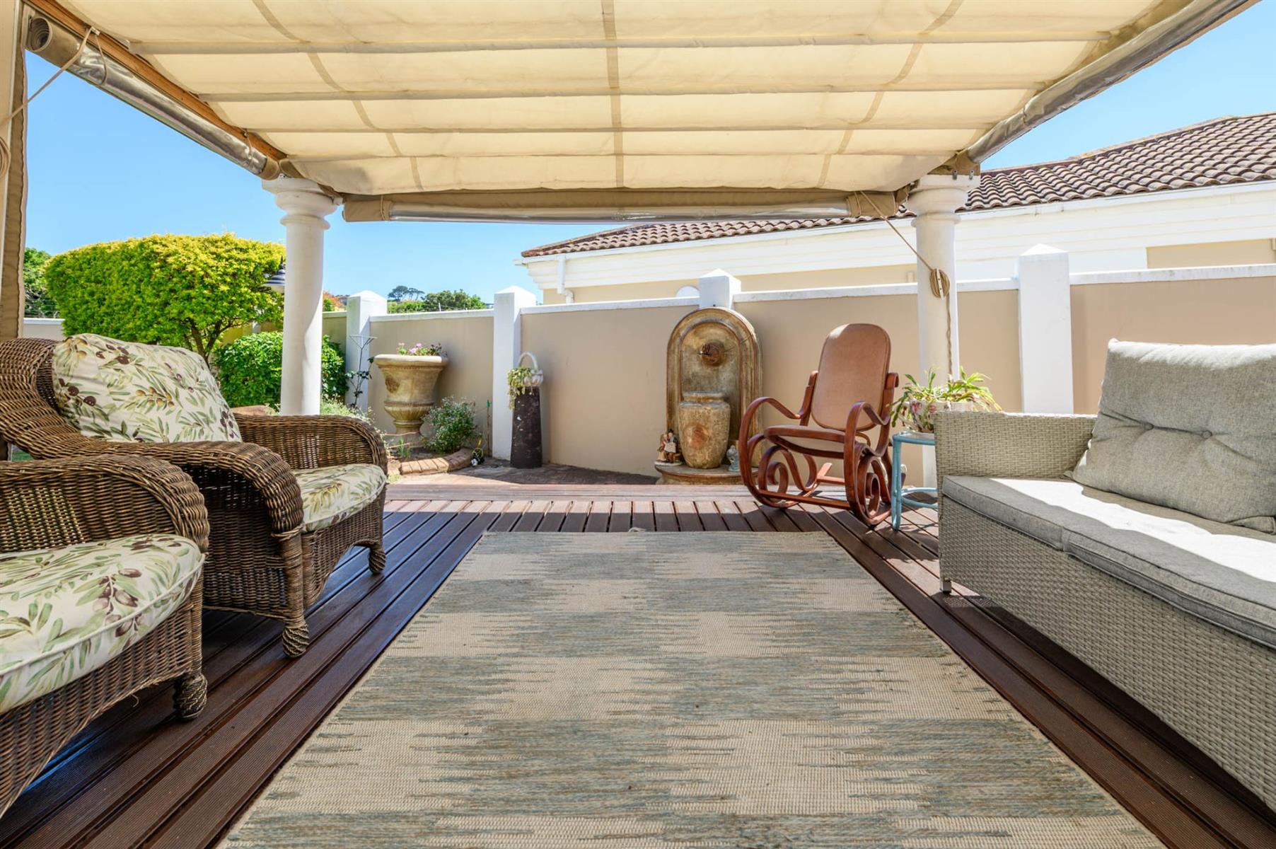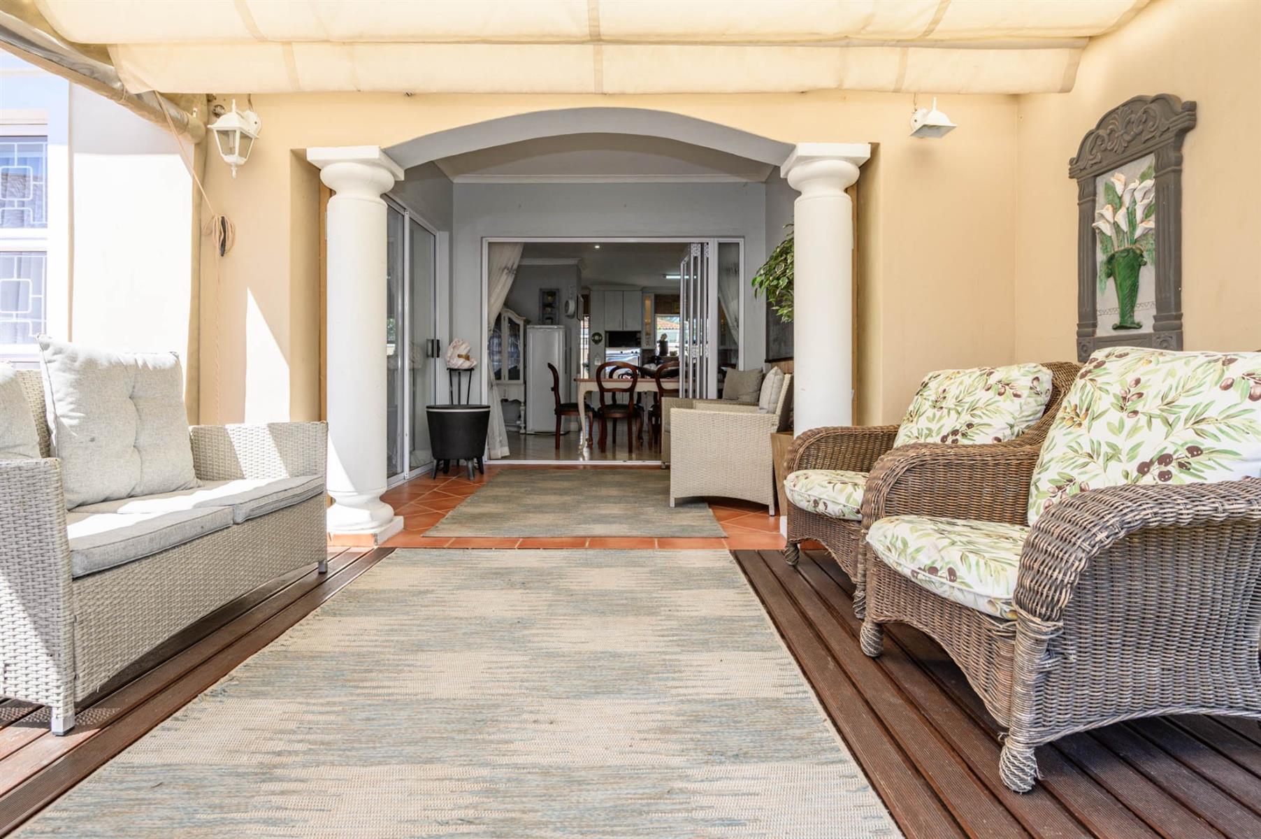 Security is well taken care of with an alarm, burglar bars, and Trellidoors on all bedrooms. Outside, there’s an undercover braai area and a deck with roll-up awnings, perfect for weekend get-togethers. The double garage with remote access interlinks to the backyard, and there’s also a carport.