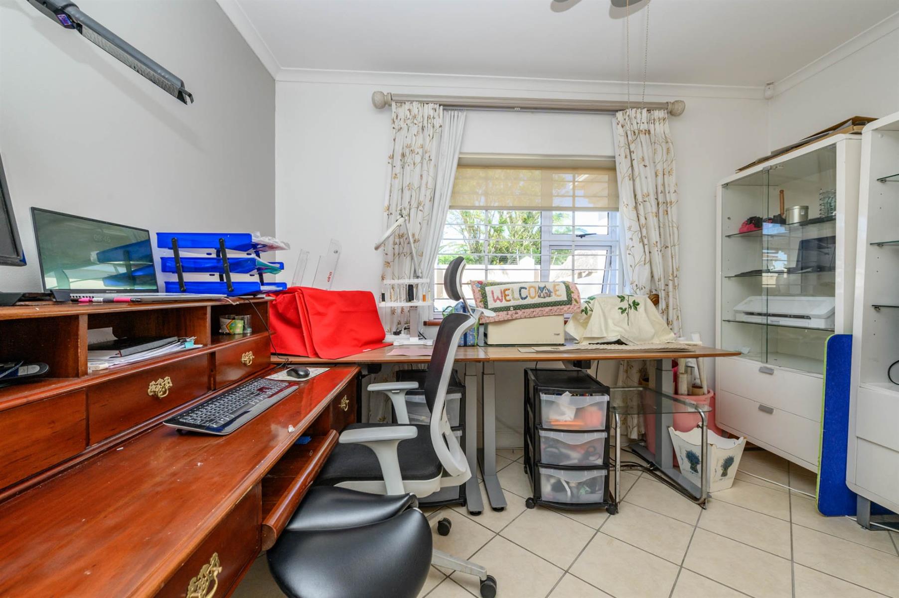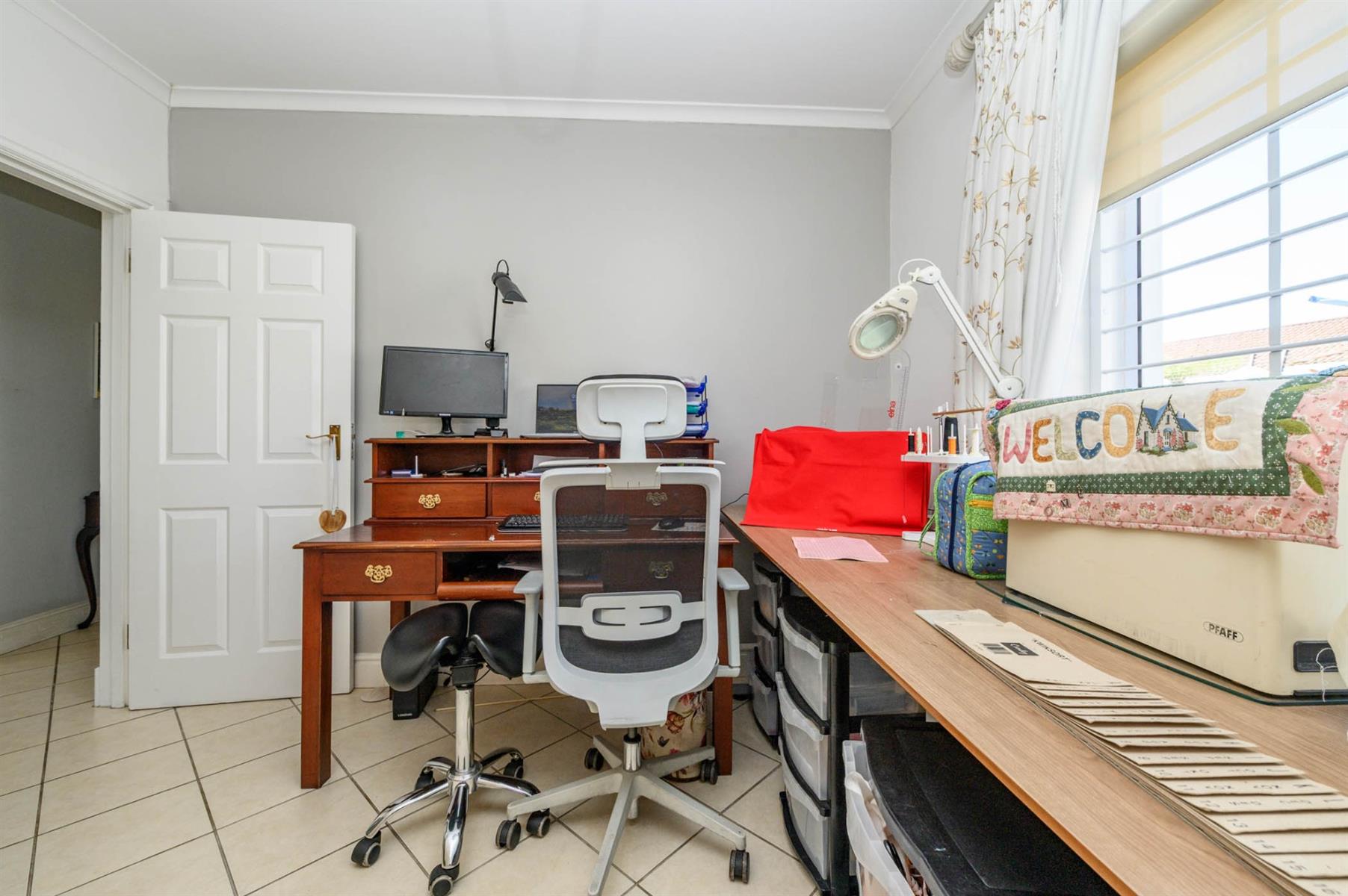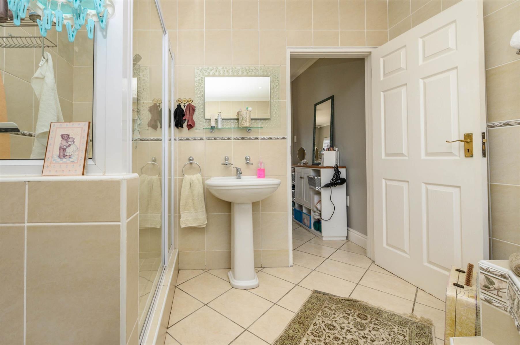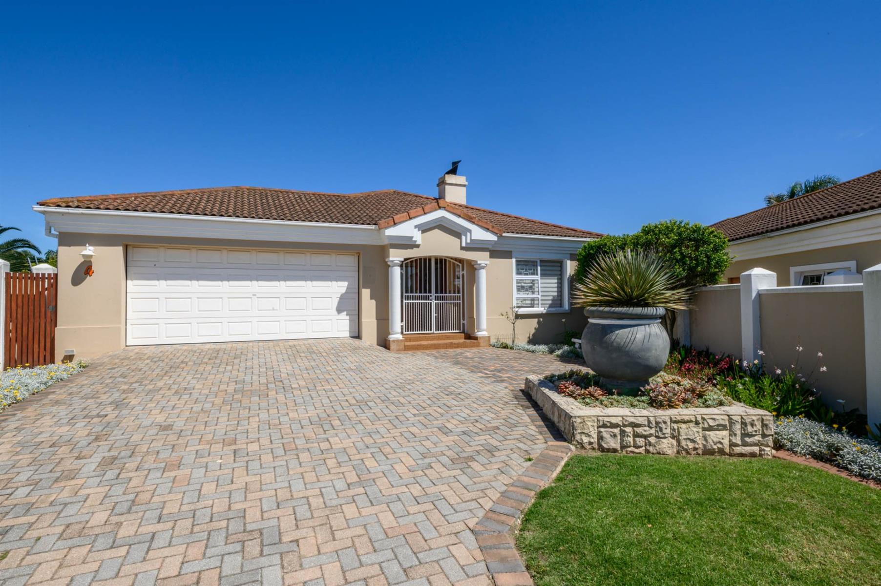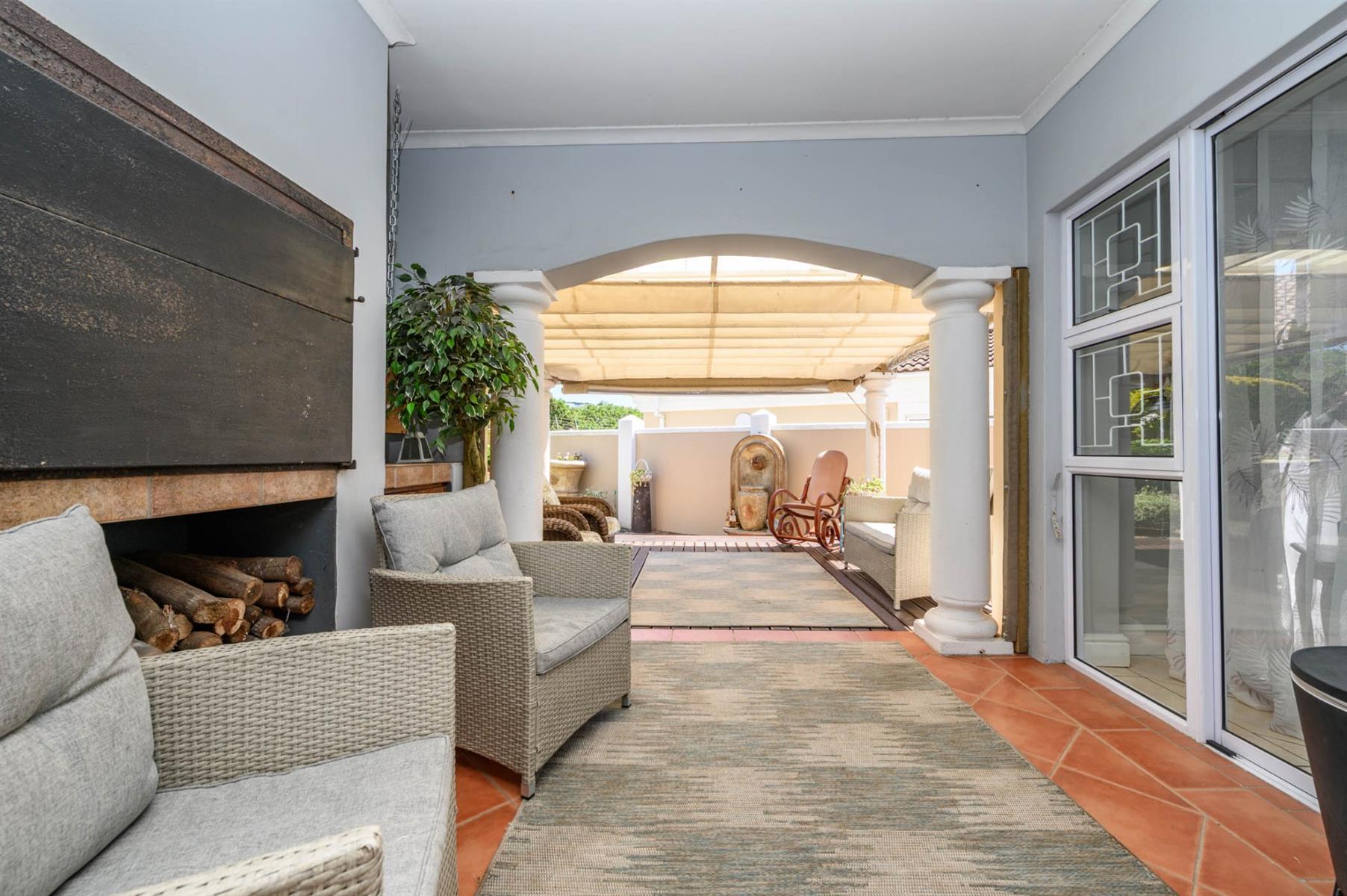 Security is well taken care of with an alarm, burglar bars, and Trellidoors on all bedrooms. Outside, there’s an undercover braai area and a deck with roll-up awnings, perfect for weekend get-togethers. The double garage with remote access interlinks to the backyard, and there’s also a carport.